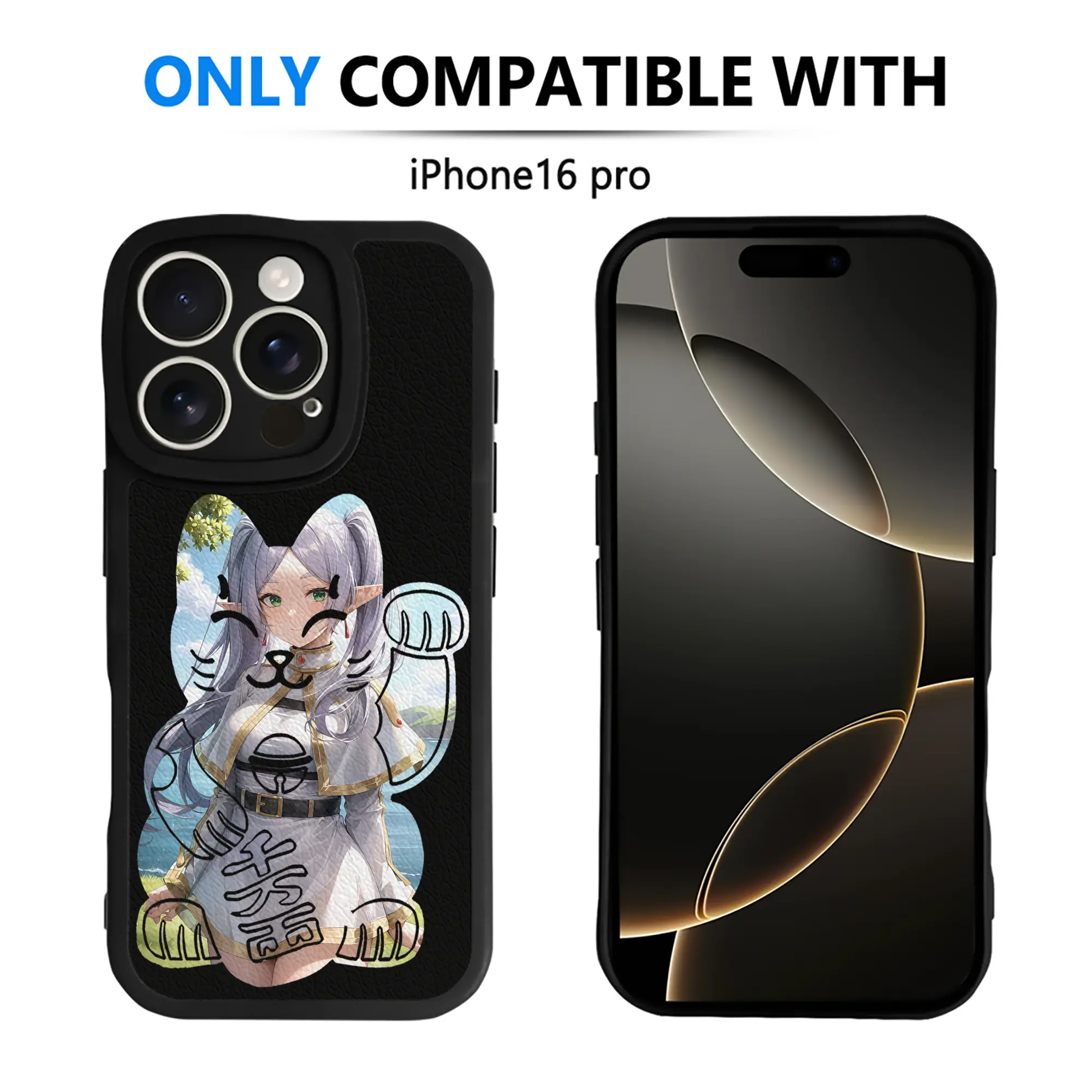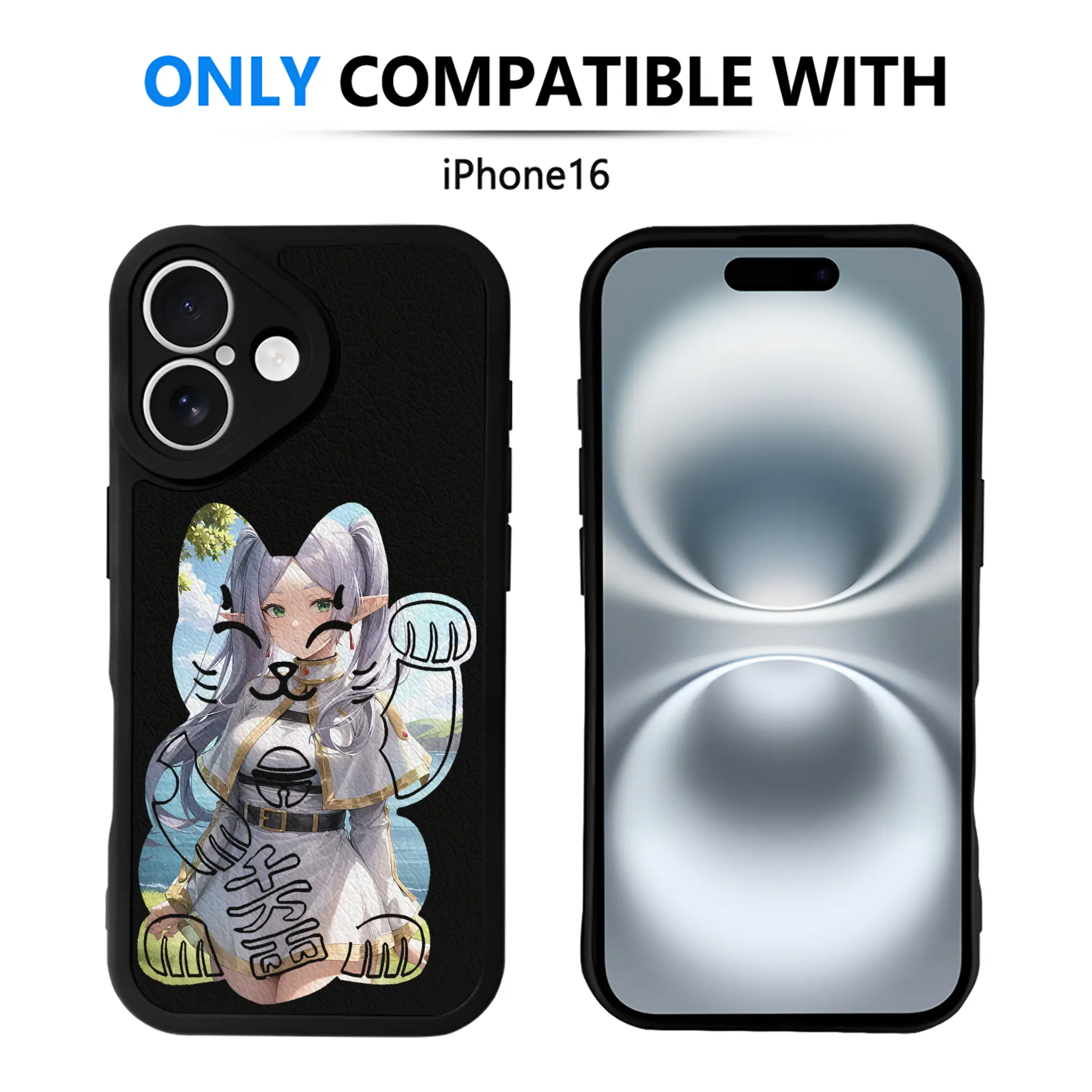 葬送のフリーレン(Frieren) グッズ,フリーレン(Frieren) - IPhone 16シリーズ対応 ・ シリコンスマホケース ・ レザー調 ・ 高精度フィット ・ 耐衝撃 ・ ワイヤレス充電対応 ・ 精密カット