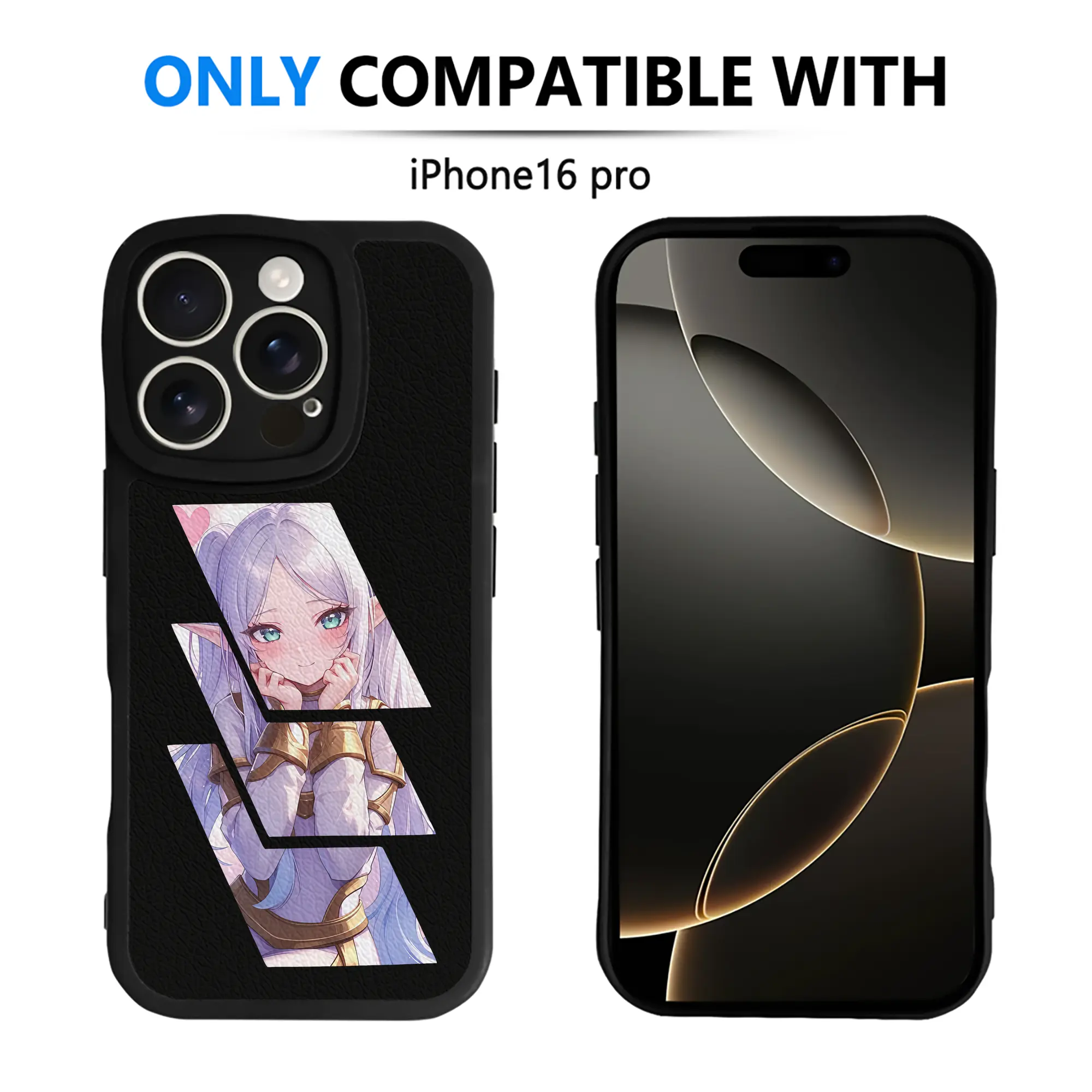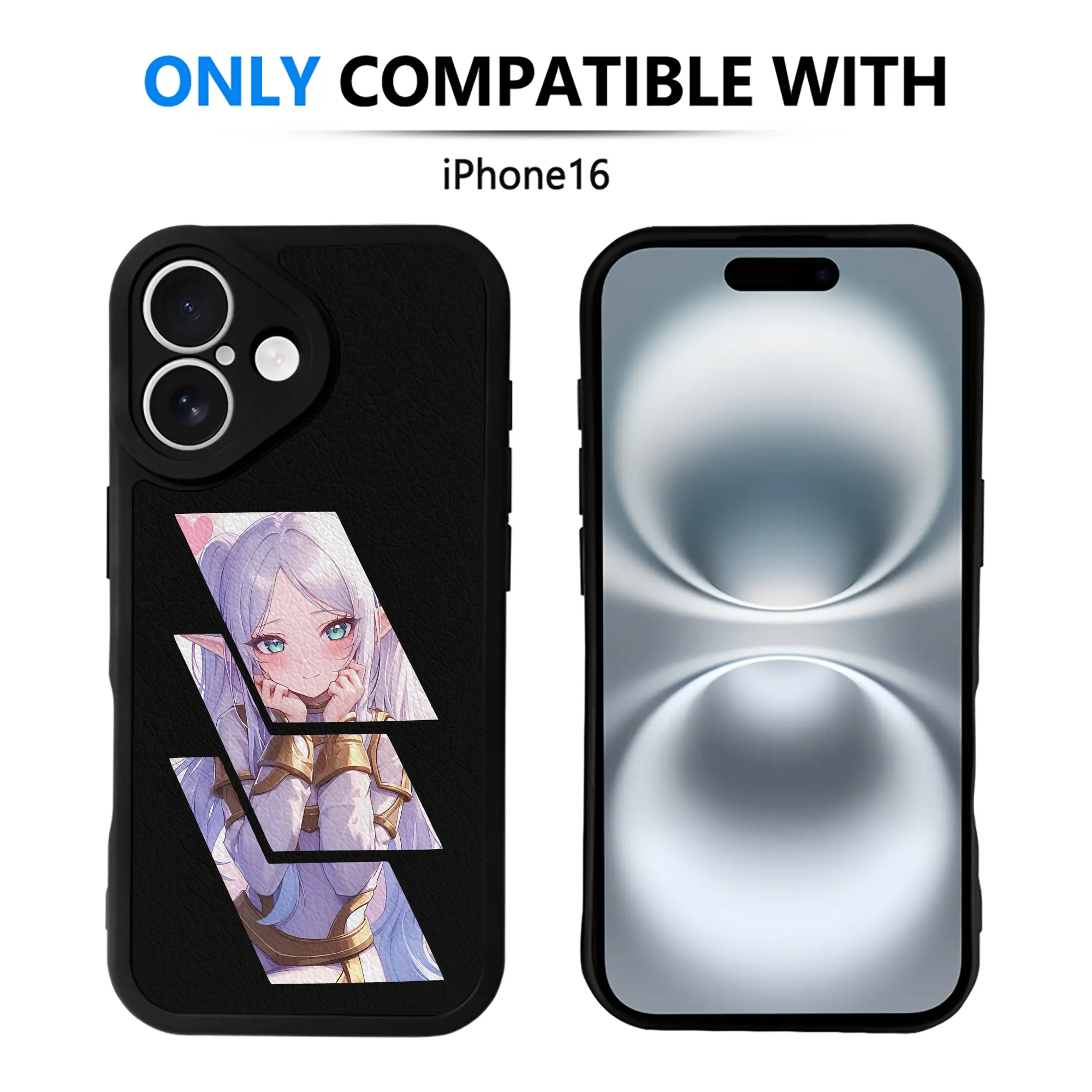 葬送のフリーレン(Frieren) グッズ,フリーレン(Frieren) - IPhone 16シリーズ対応 ・ シリコンスマホケース ・ レザー調 ・ 高精度フィット ・ 耐衝撃 ・ ワイヤレス充電対応 ・ 精密カット
