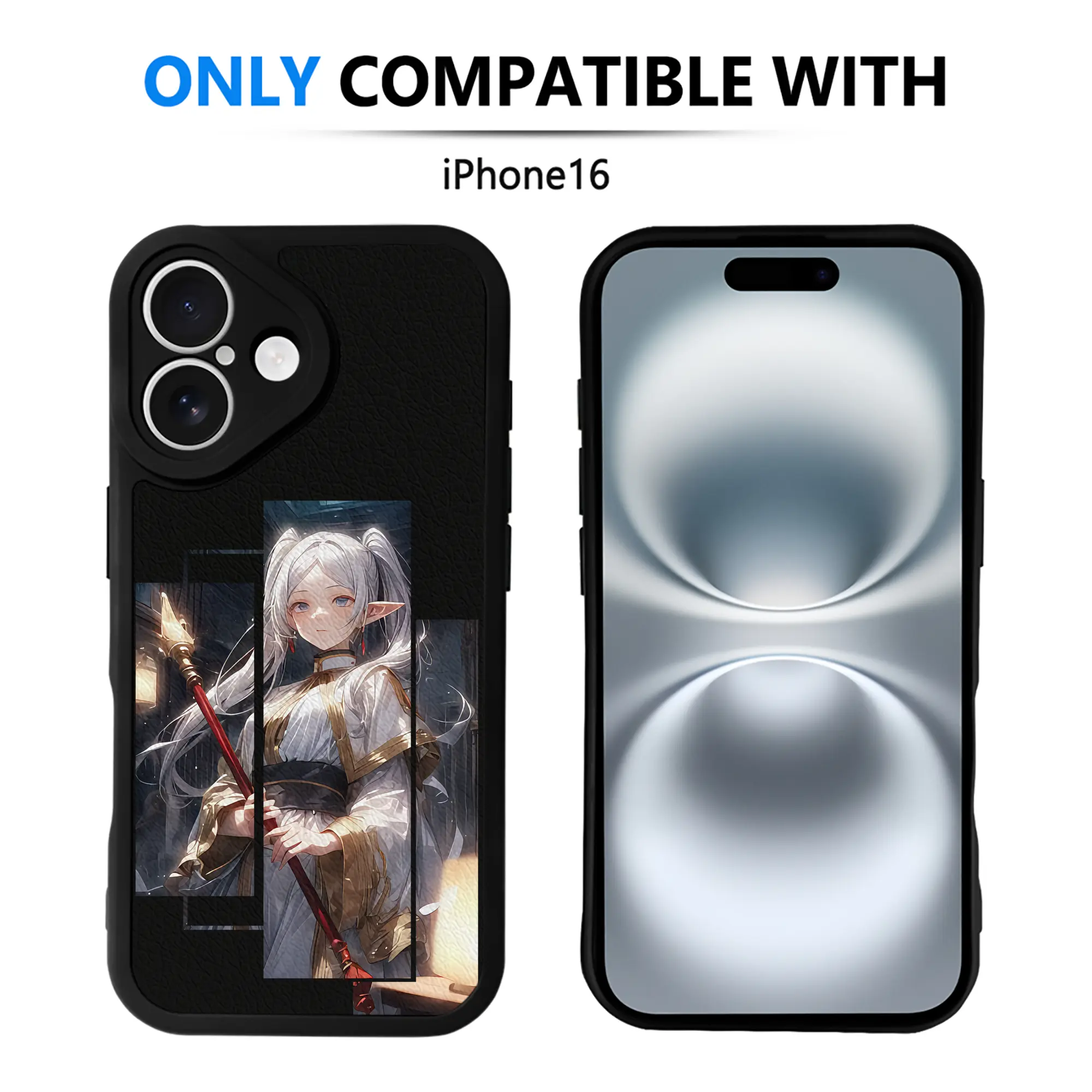 葬送のフリーレン(Frieren) グッズ,フリーレン(Frieren) - IPhone 16シリーズ対応 ・ シリコンスマホケース ・ レザー調 ・ 高精度フィット ・ 耐衝撃 ・ ワイヤレス充電対応 ・ 精密カット
