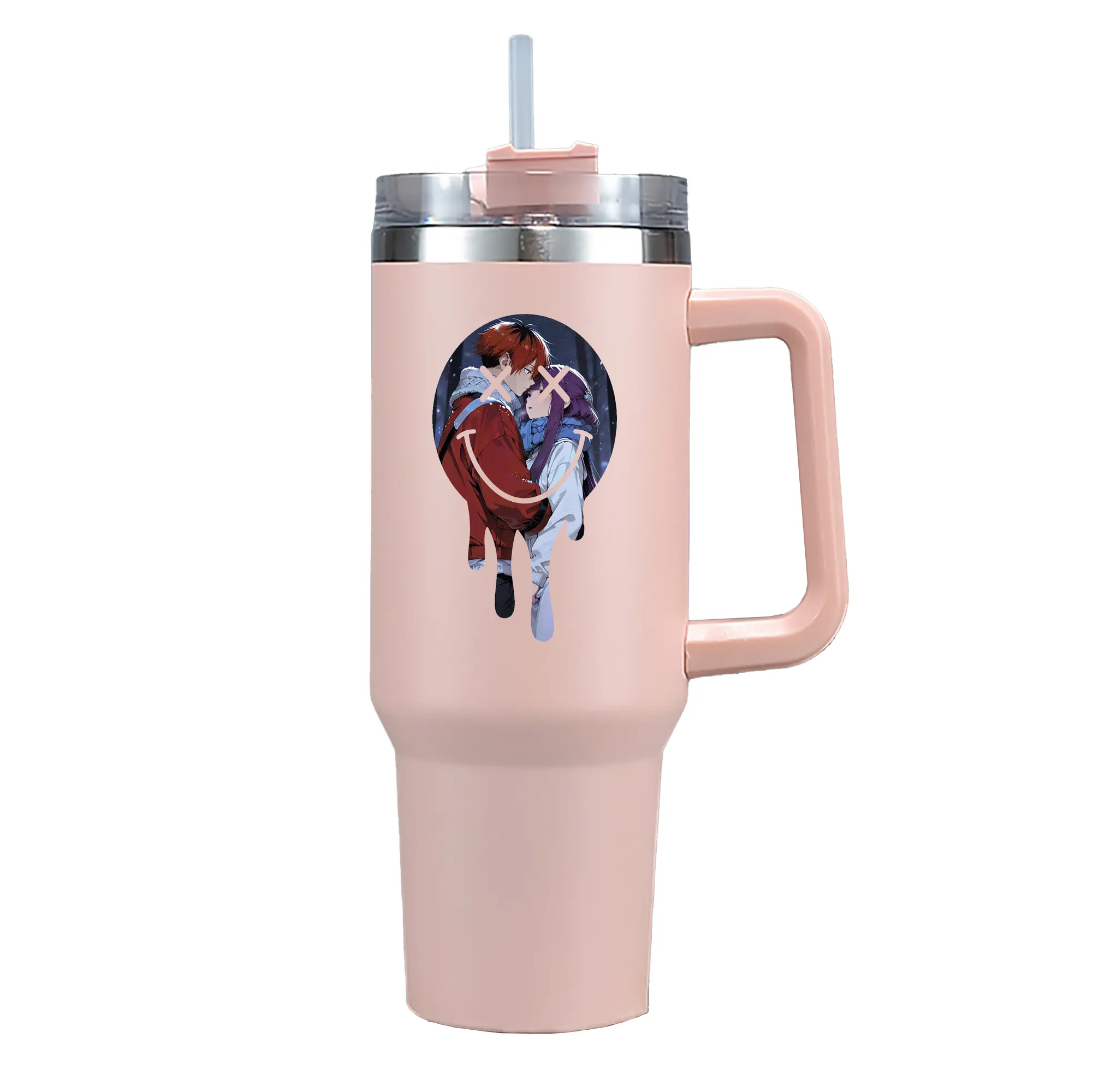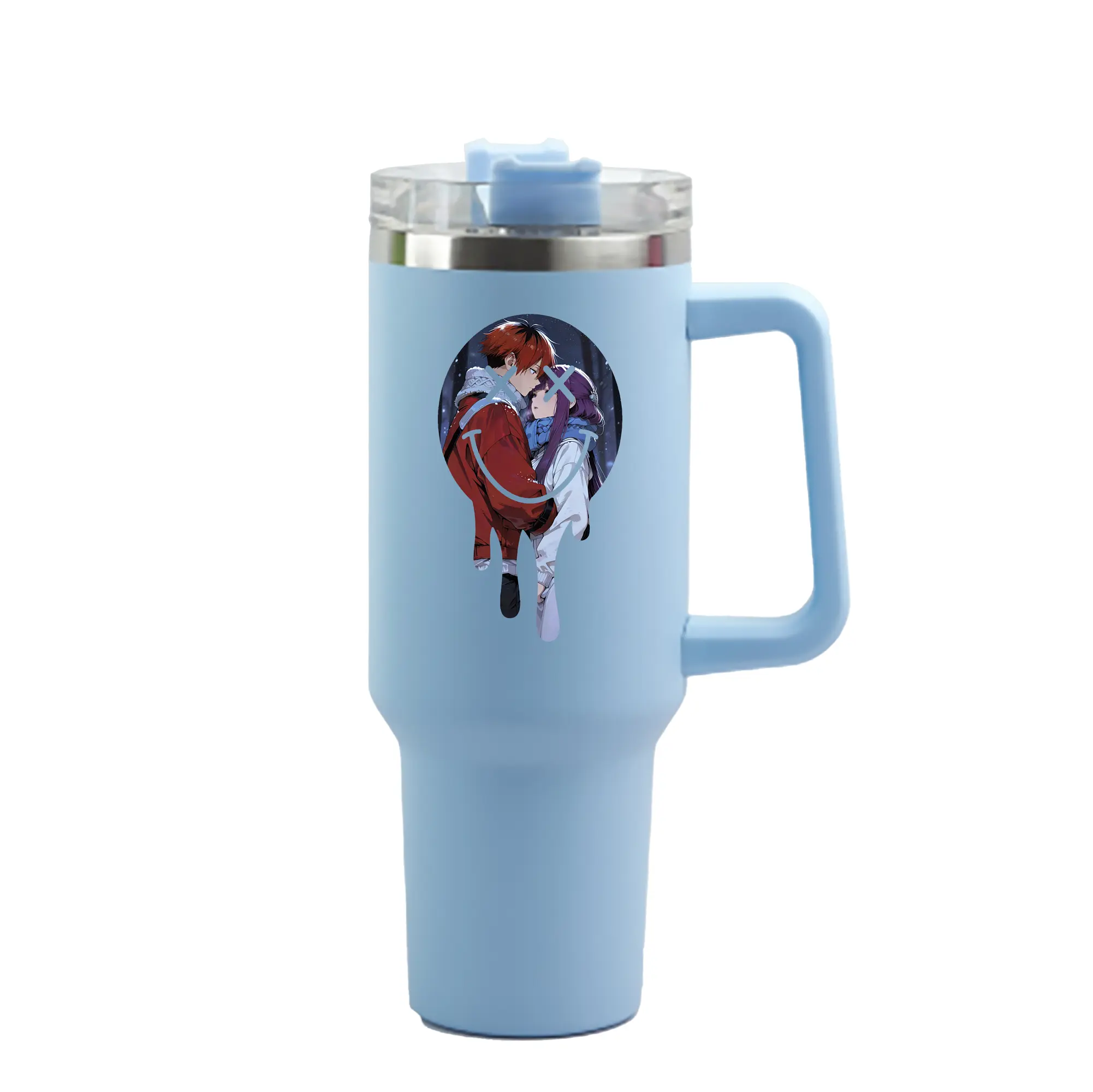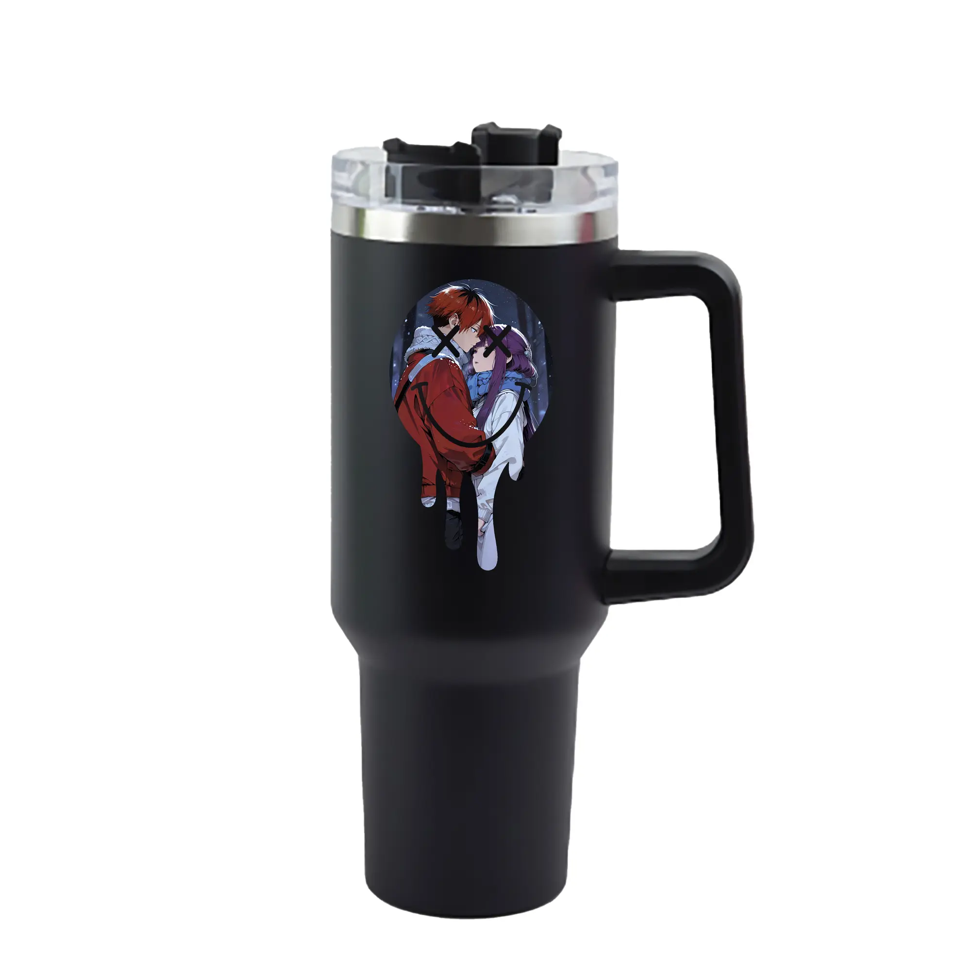 1200mL(40オンス)の大容量ハンドル付きカータンブラー。キラキラと輝くクリスタルステッカーデザインが、毎日の使用に華やかさをプラスします。食品グレード304ステンレスの内側と頑丈な201ステンレスの外側を採用し、耐久性・耐腐食性・安全性を兼ね備えています。