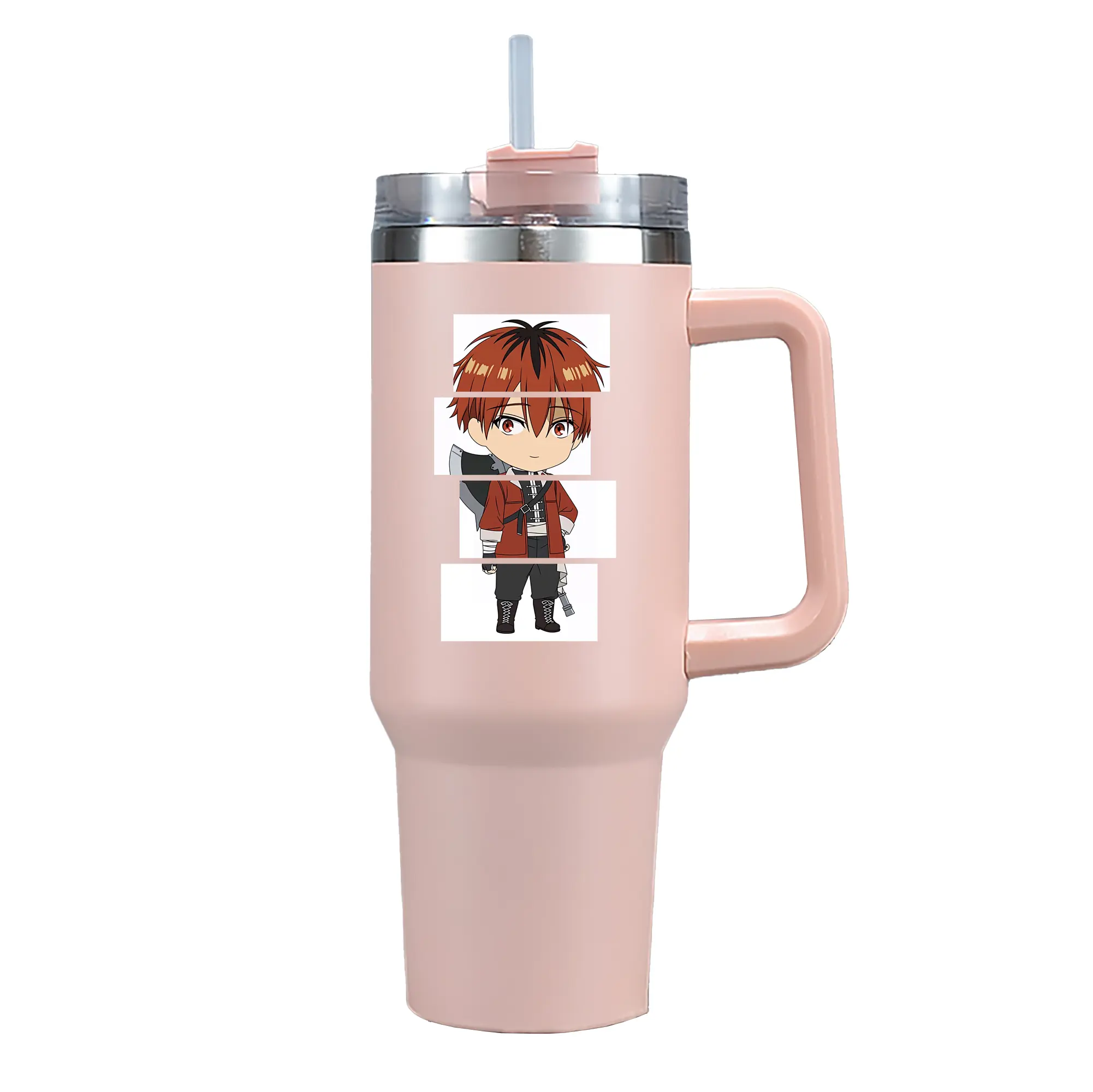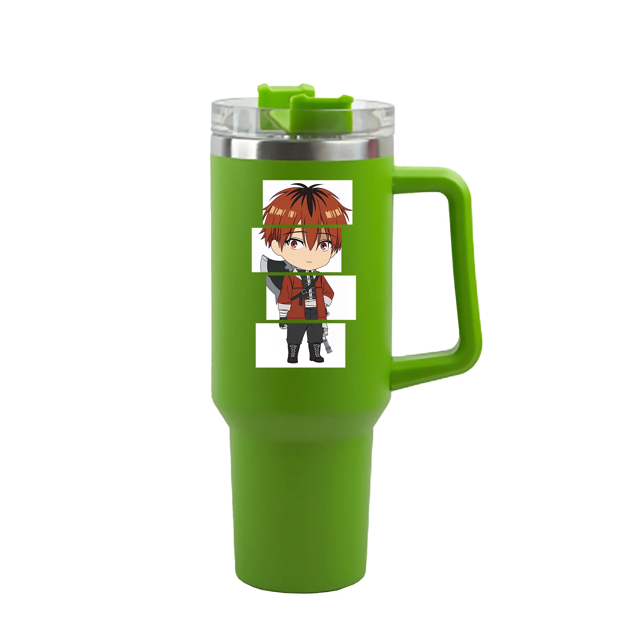 葬送のフリーレン(Frieren) グッズ,シュタルク(Stark) - 1200mL 車用タンブラー ・ クリスタルステッカー ・ 304ステンレス 内側 ・ 201ステンレス 外側 ・ 保温 保冷 ・ ハンドル&ストロー付き ・ 通勤 ドライブ アウトドア用