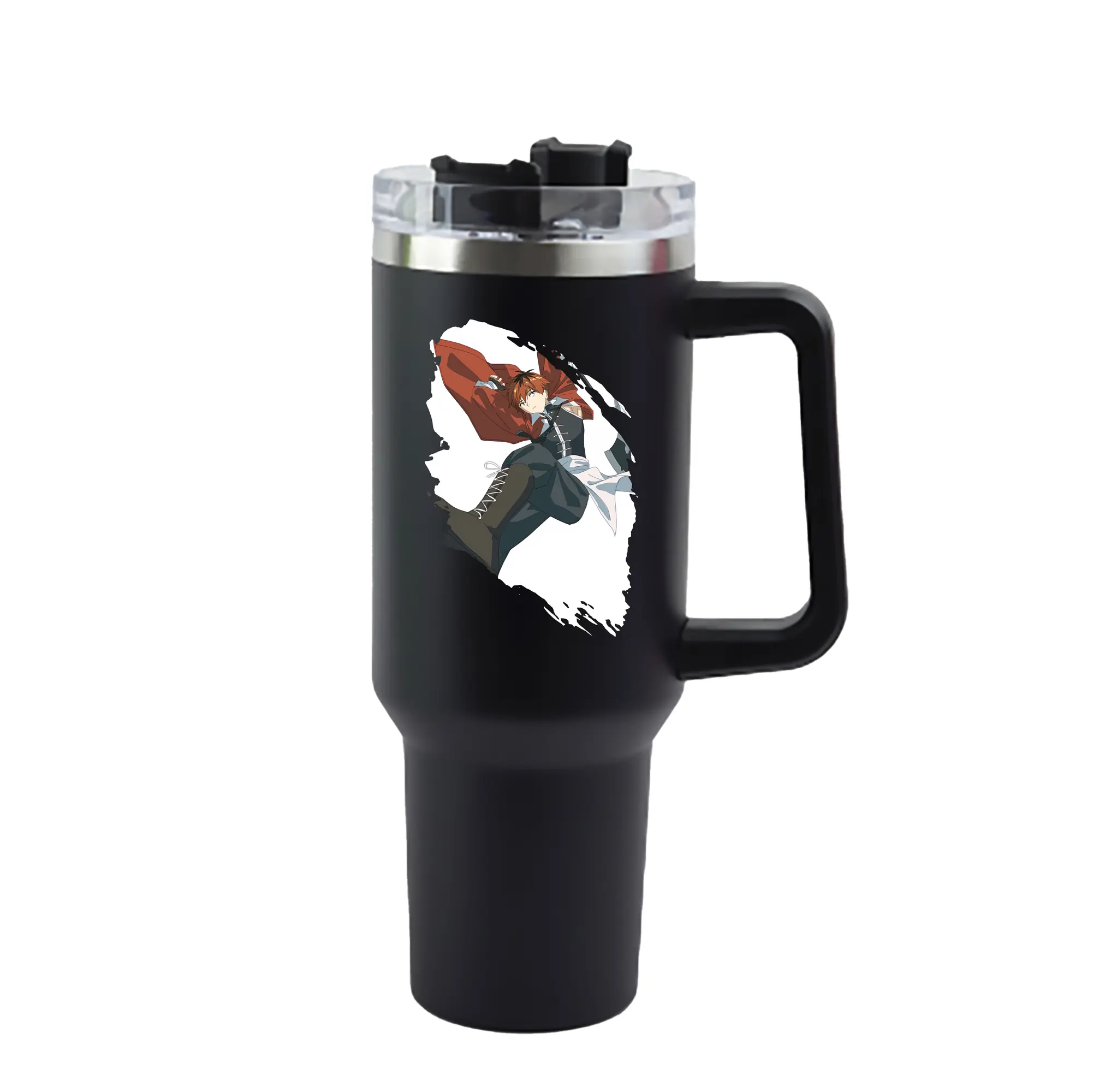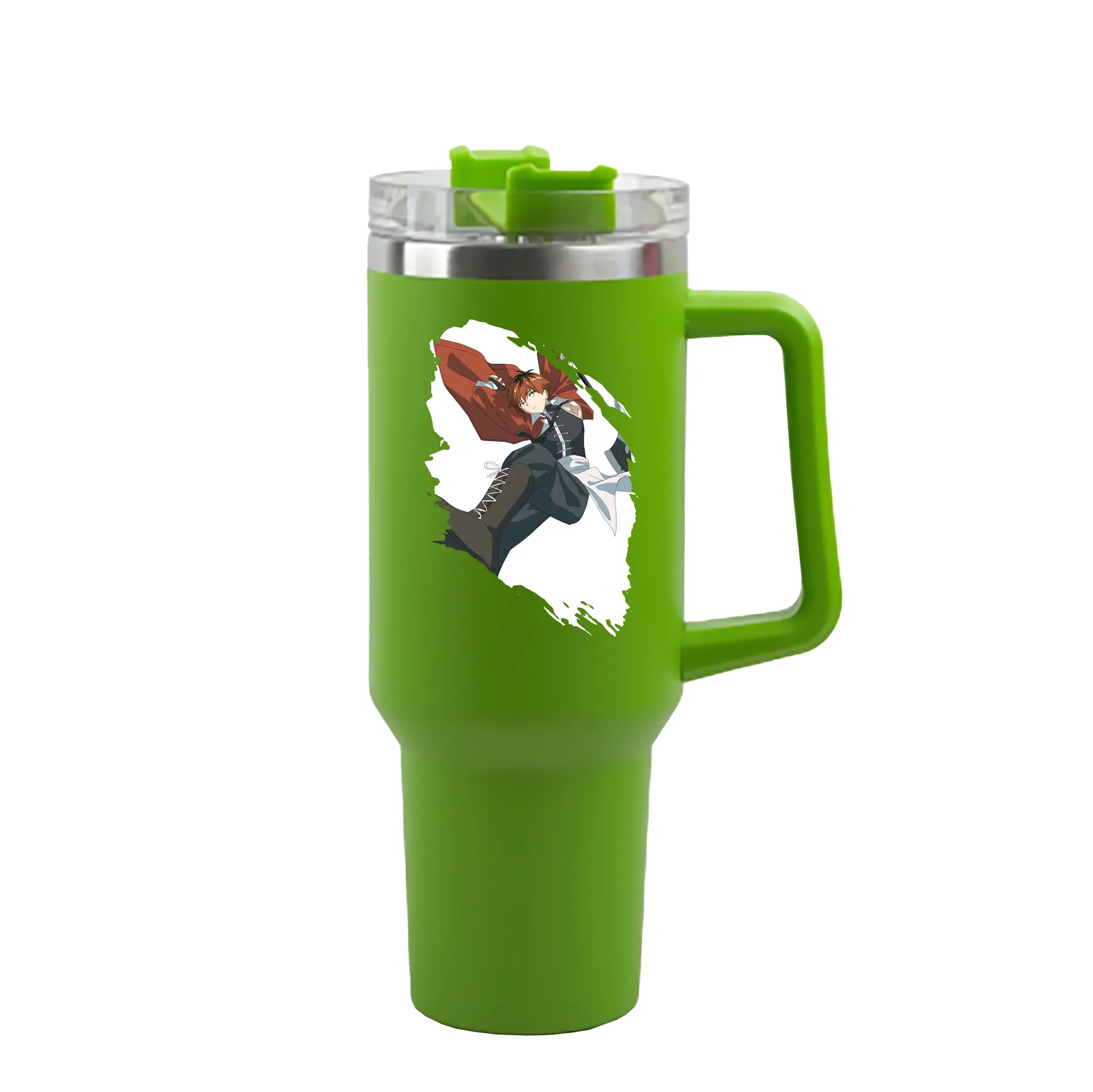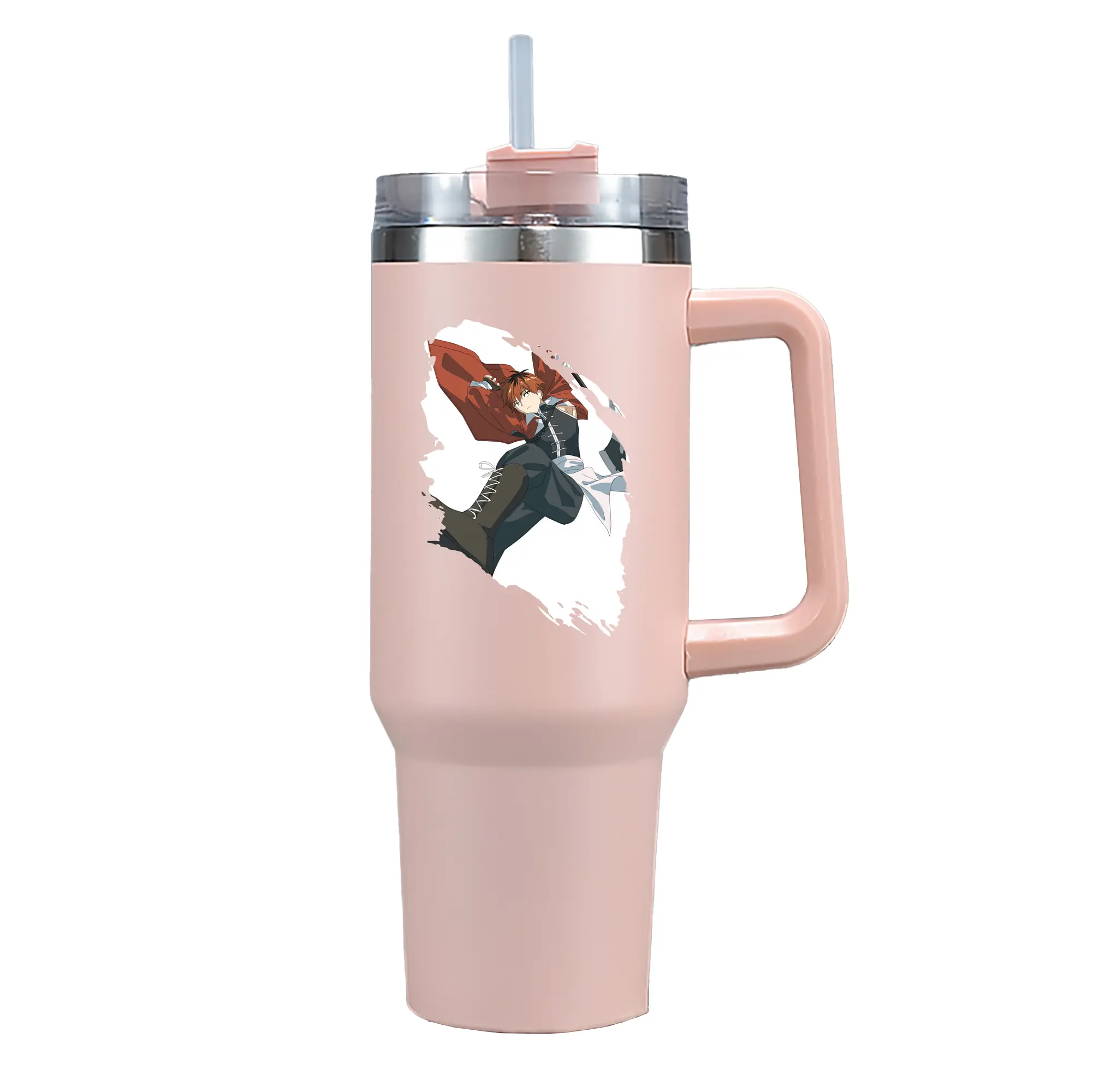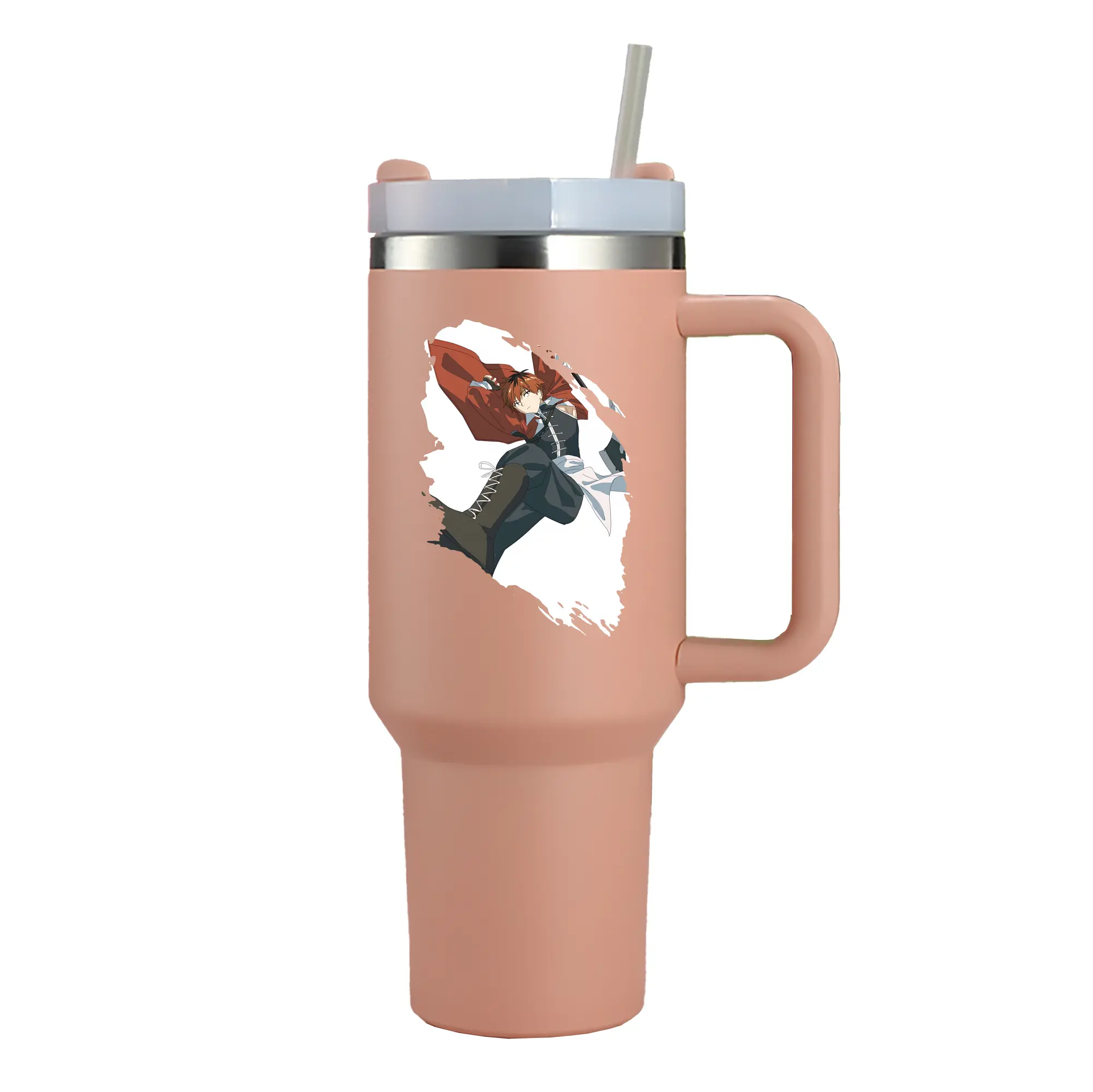 葬送のフリーレン(Frieren) グッズ,シュタルク(Stark) - 1200mL 車用タンブラー ・ クリスタルステッカー ・ 304ステンレス 内側 ・ 201ステンレス 外側 ・ 保温 保冷 ・ ハンドル&ストロー付き ・ 通勤 ドライブ アウトドア用