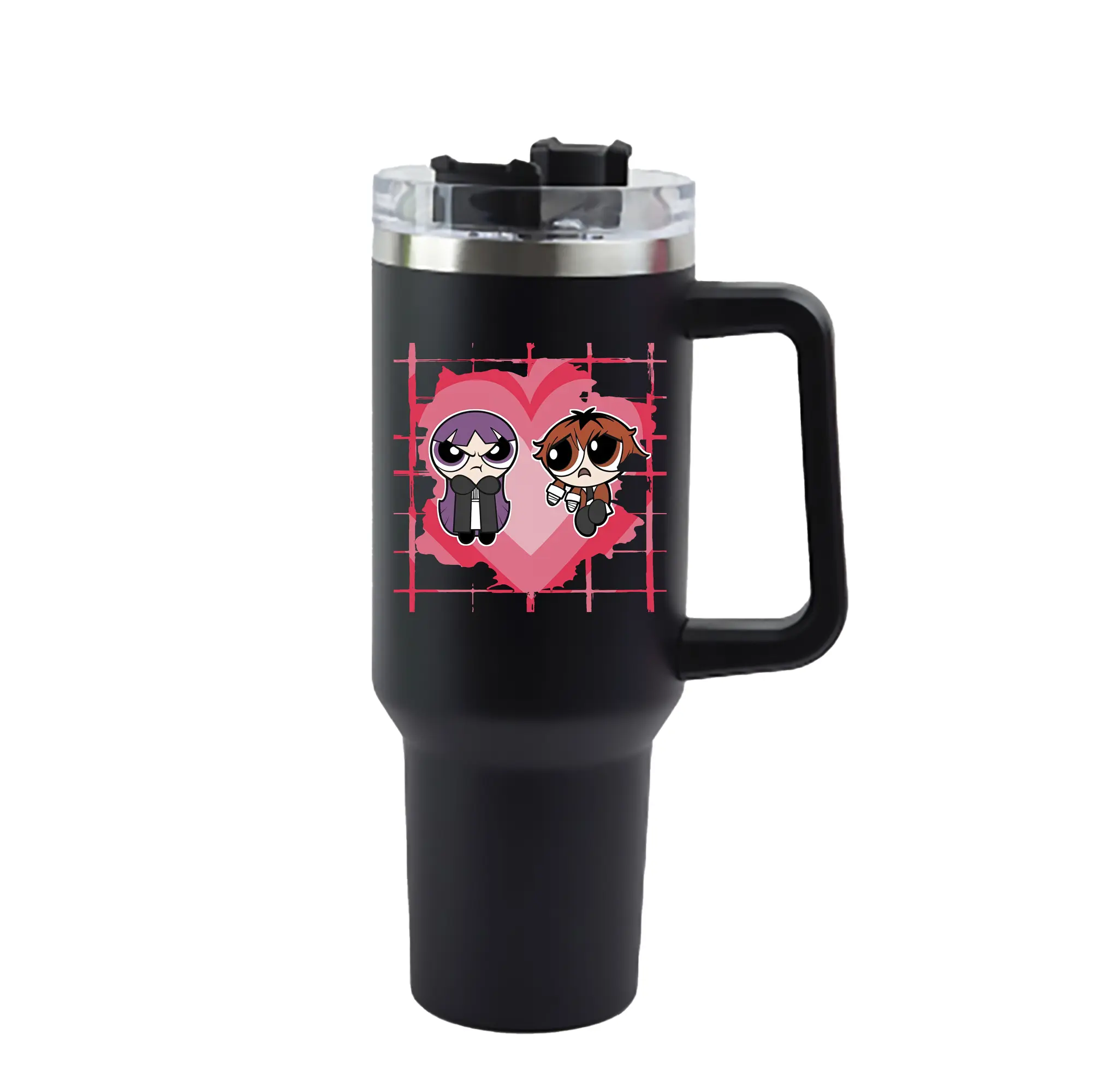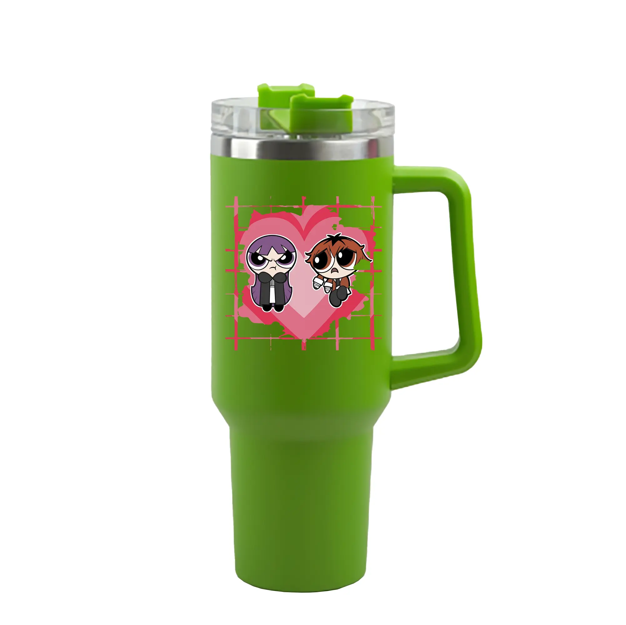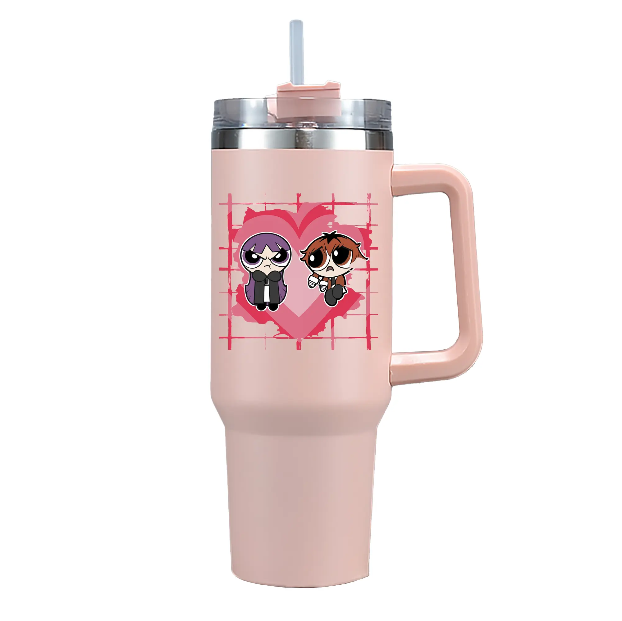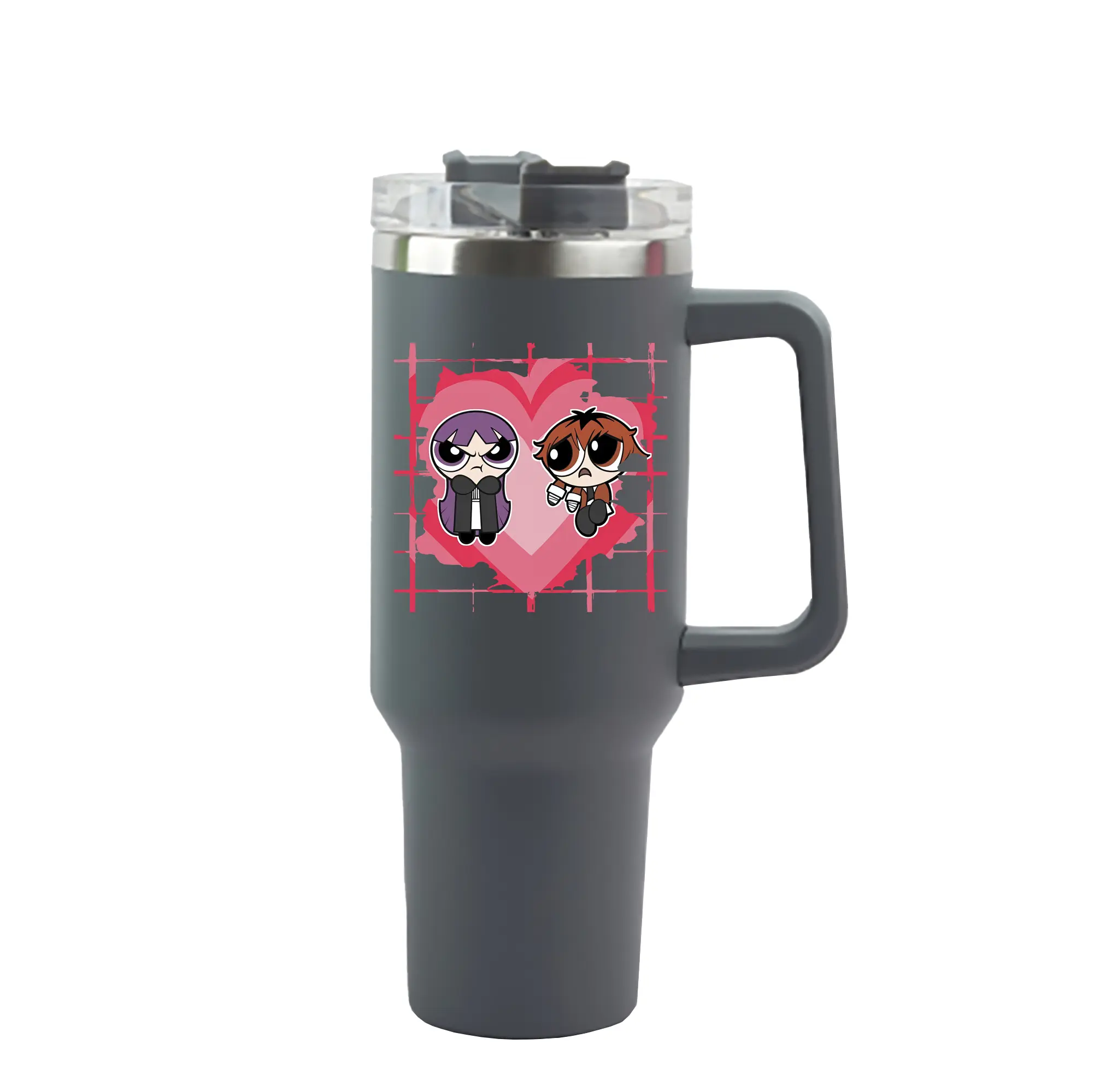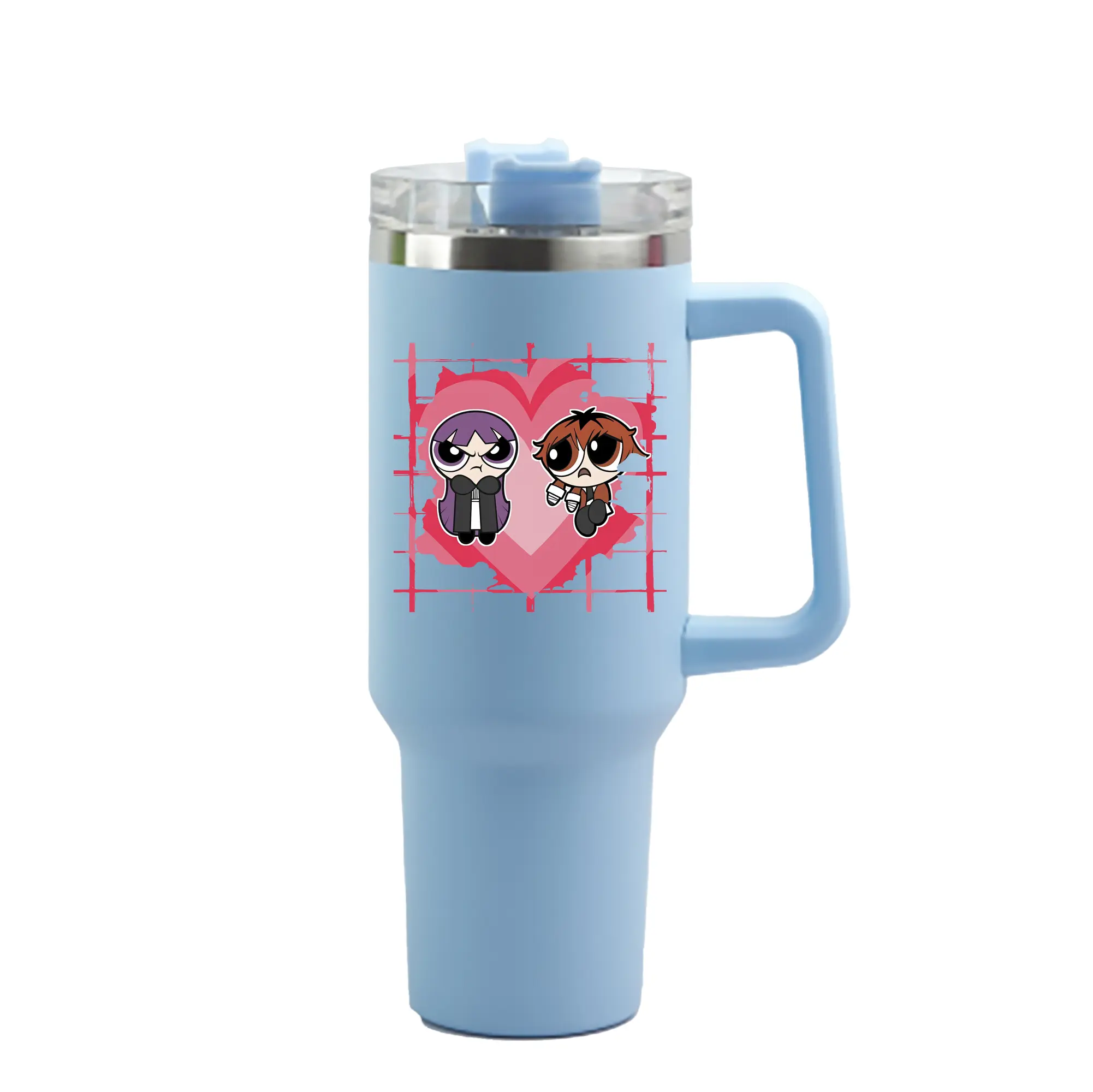 1200mL(40オンス)の大容量ハンドル付きカータンブラー。キラキラと輝くクリスタルステッカーデザインが、毎日の使用に華やかさをプラスします。食品グレード304ステンレスの内側と頑丈な201ステンレスの外側を採用し、耐久性・耐腐食性・安全性を兼ね備えています。
