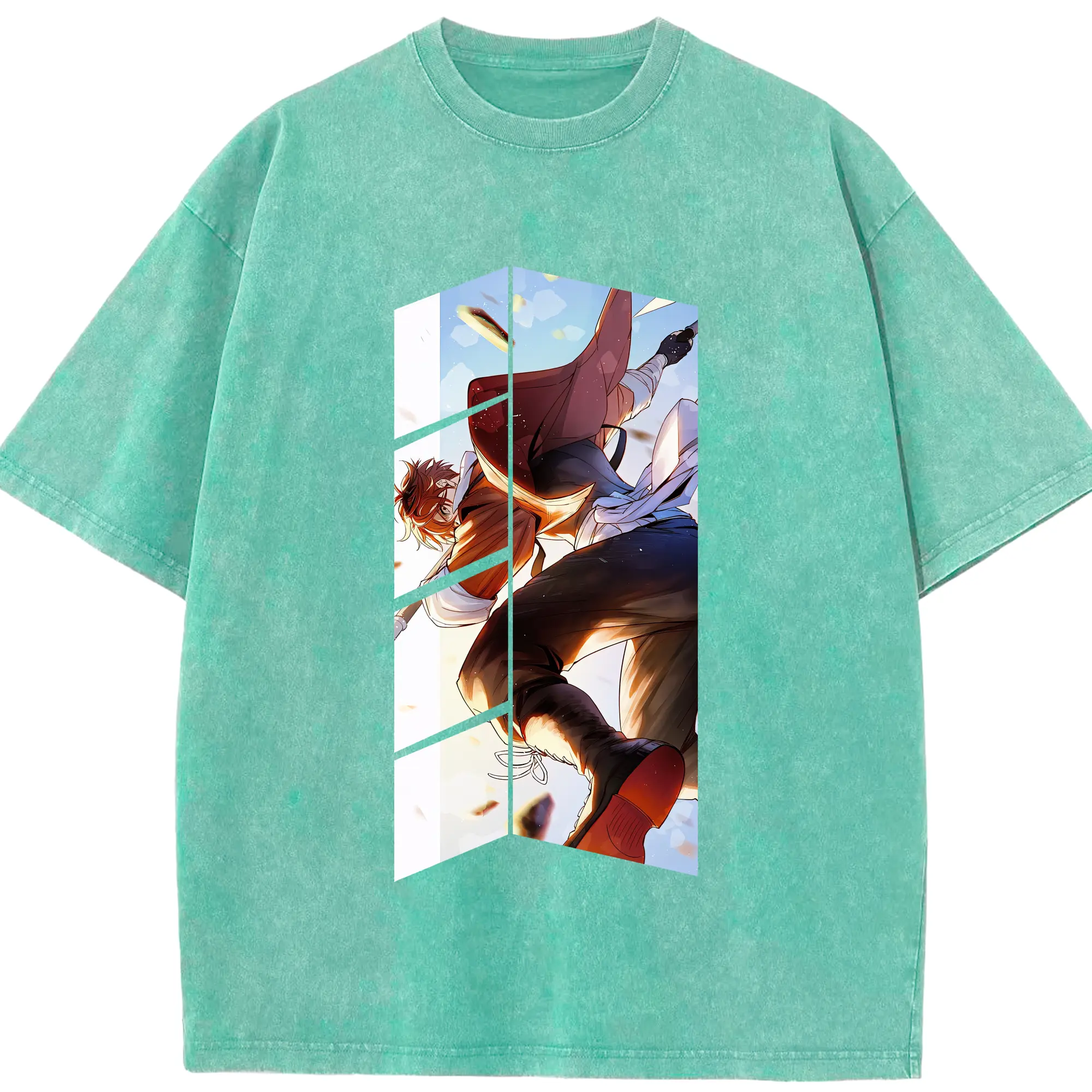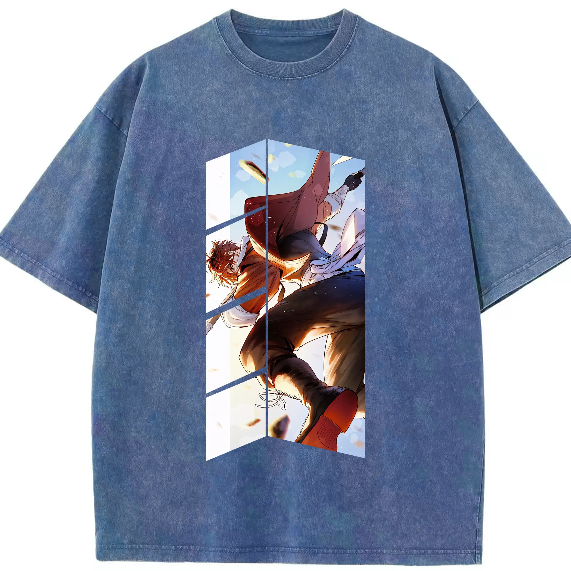 ブルーロック グッズ 千切 豹馬 - 綿100% ヴィンテージ風 半袖Tシャツ ・ フロントプリント ・ 柔らか肌触り ・ 通気性 快適 ・ スポーツ カジュアル 外出用