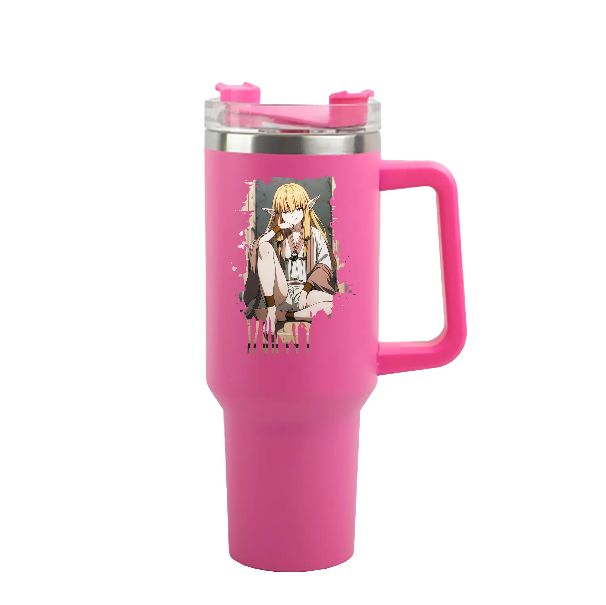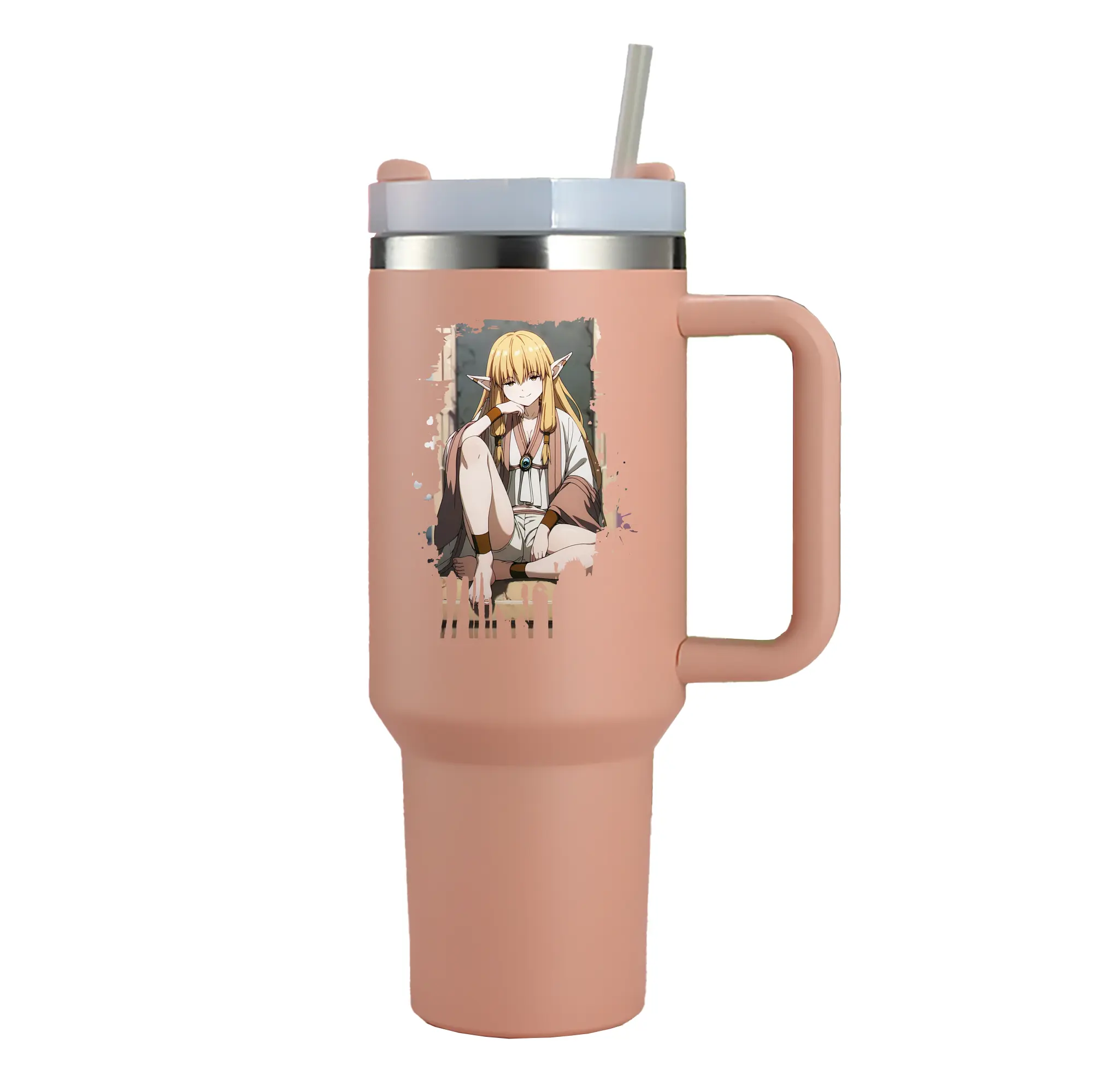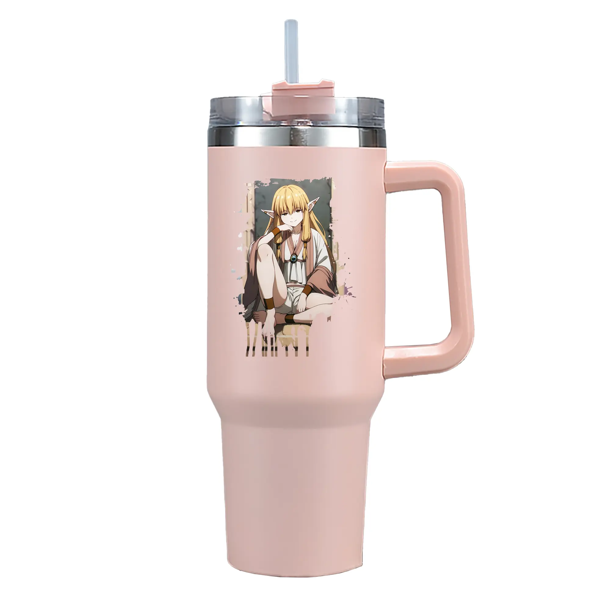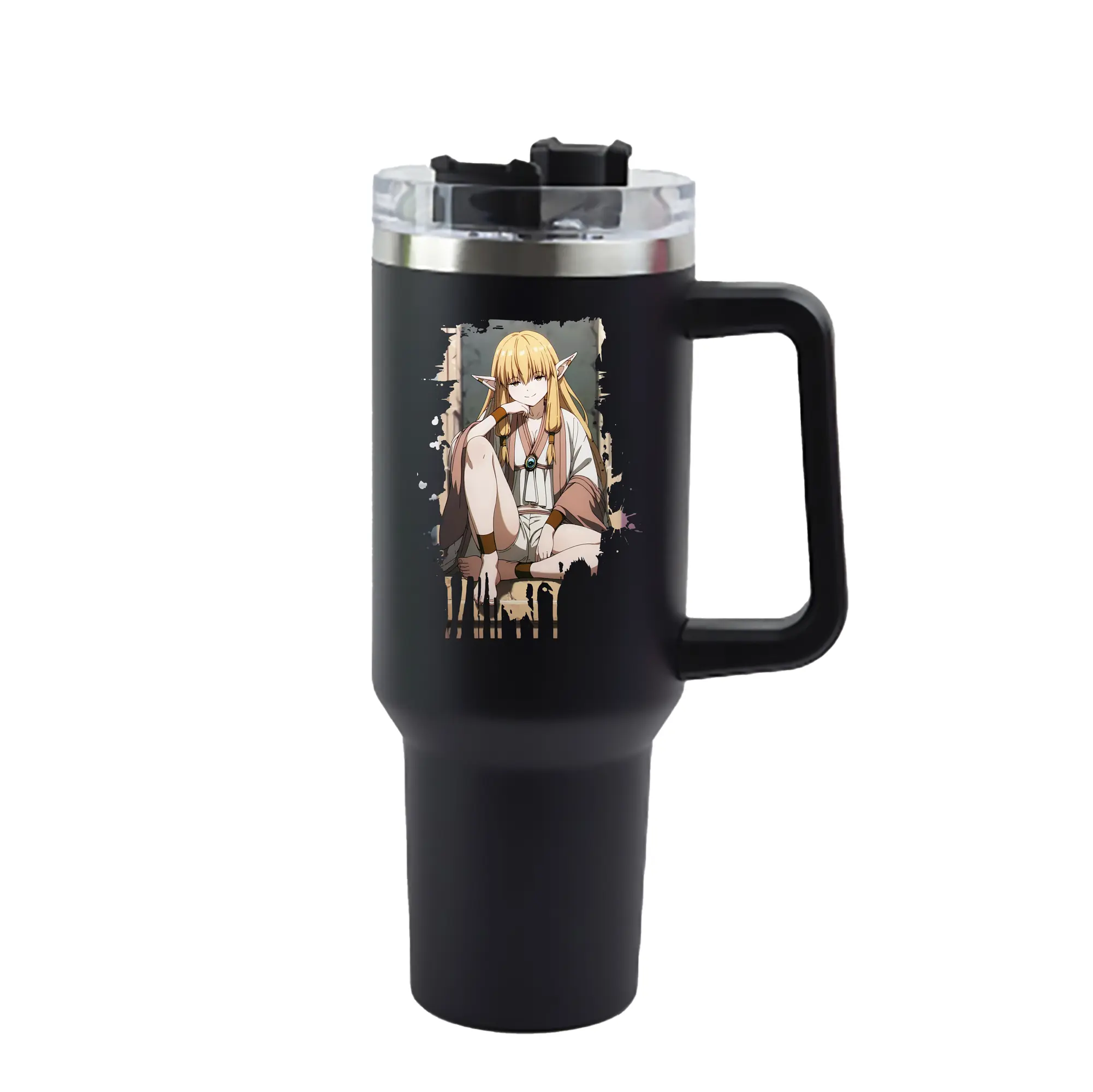 葬送のフリーレン(Frieren) グッズ,ゼーリエ(Serie) - 1200mL 車用タンブラー ・ クリスタルステッカー ・ 304ステンレス 内側 ・ 201ステンレス 外側 ・ 保温 保冷 ・ ハンドル&ストロー付き ・ 通勤 ドライブ アウトドア用