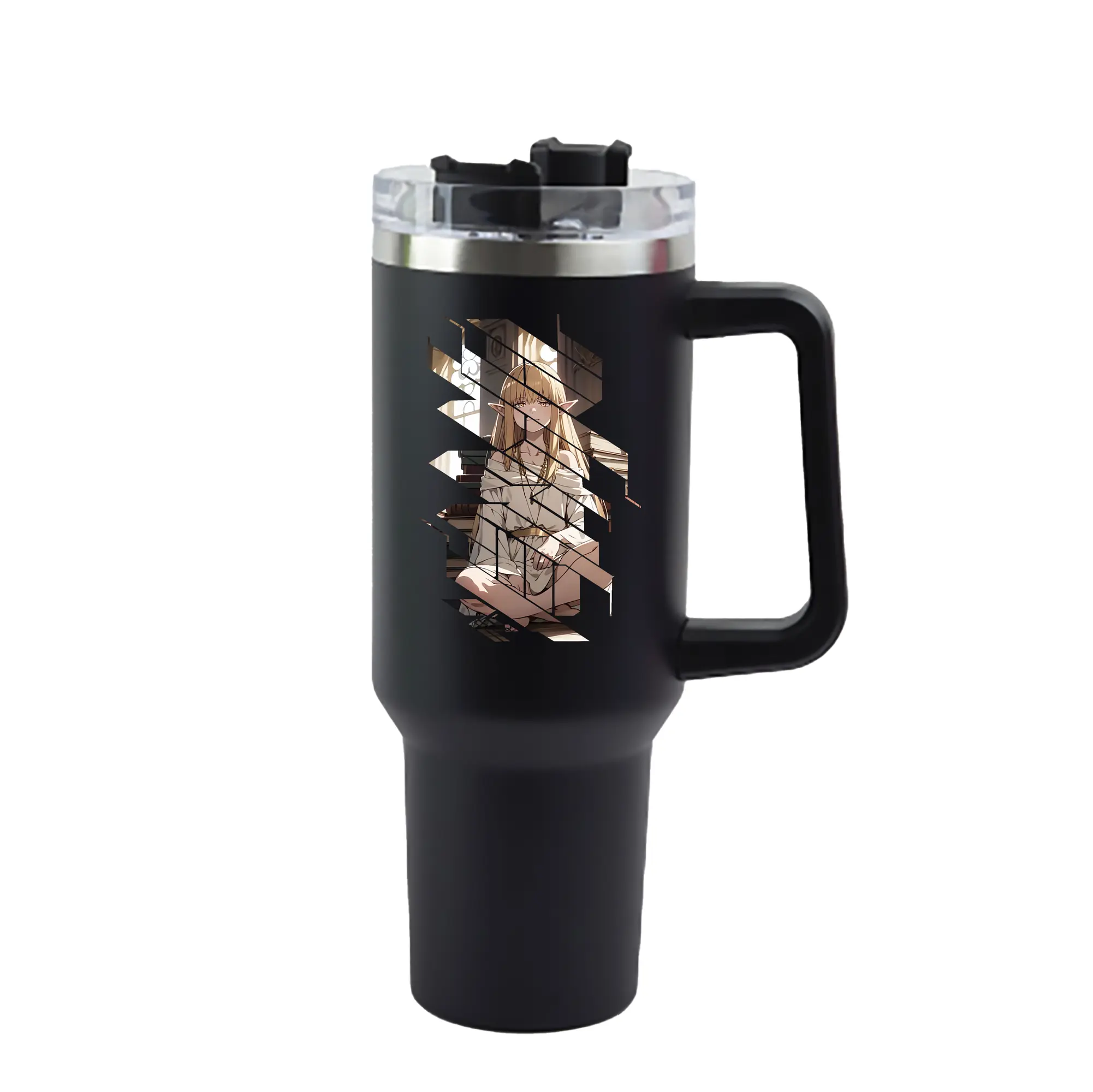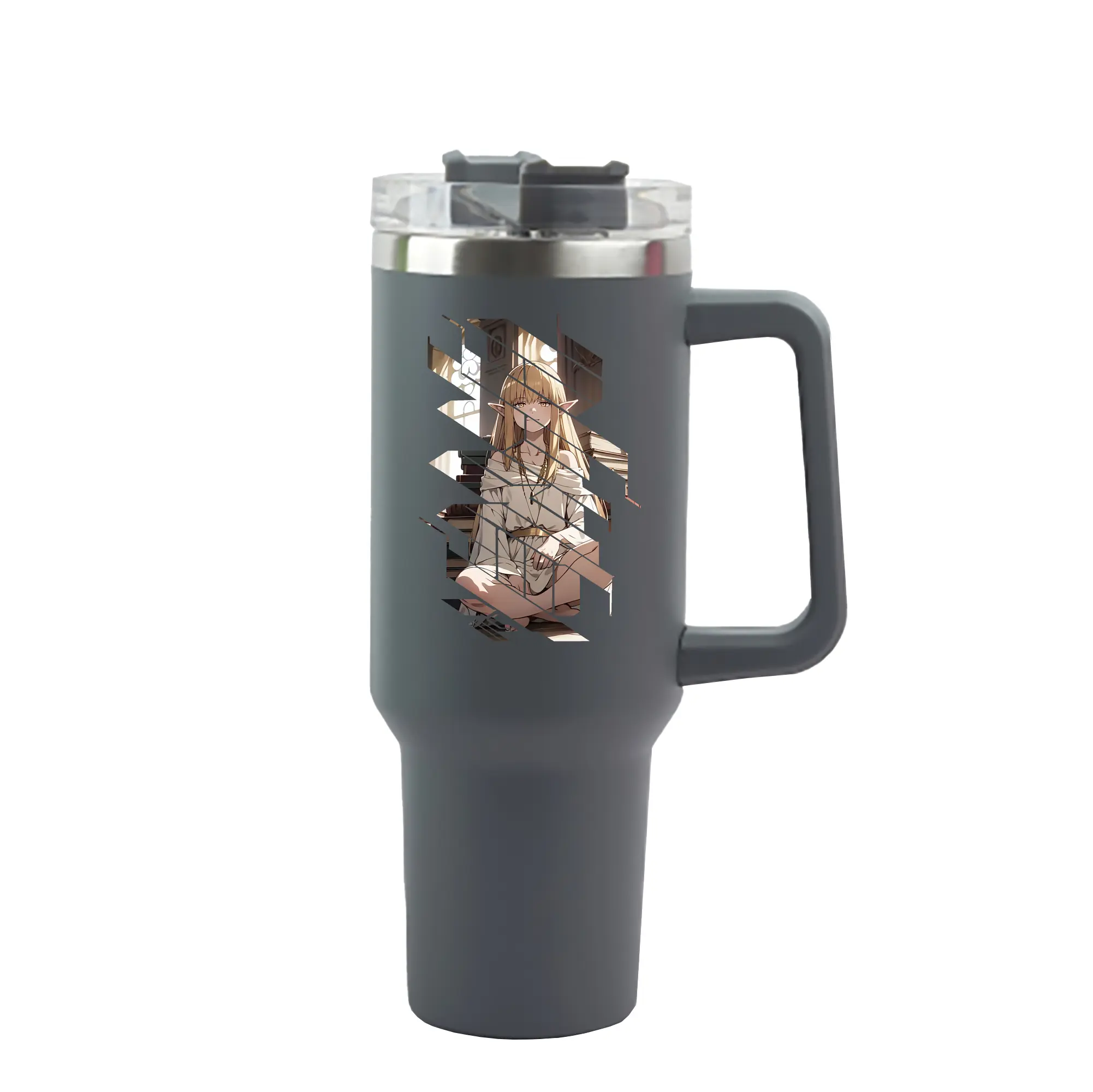 葬送のフリーレン(Frieren) グッズ,ゼーリエ(Serie) - 1200mL 車用タンブラー ・ クリスタルステッカー ・ 304ステンレス 内側 ・ 201ステンレス 外側 ・ 保温 保冷 ・ ハンドル&ストロー付き ・ 通勤 ドライブ アウトドア用