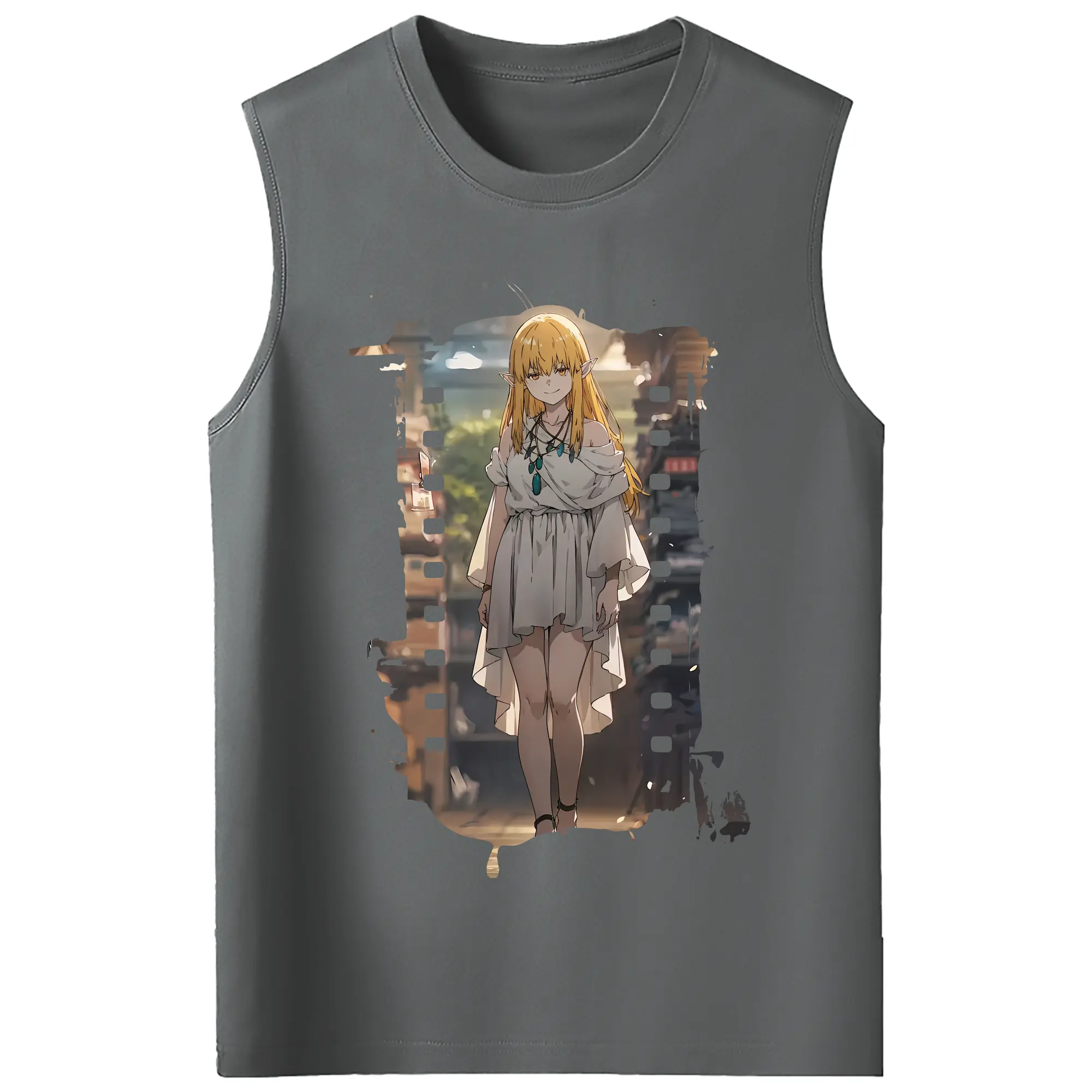 葬送のフリーレン(Frieren) グッズ,ゼーリエ(Serie) - コットン100% タンクトップ ・ フロントプリント ・ タイトフィット ・ 快適 通気性 ・ スポーツ カジュアル 散歩用