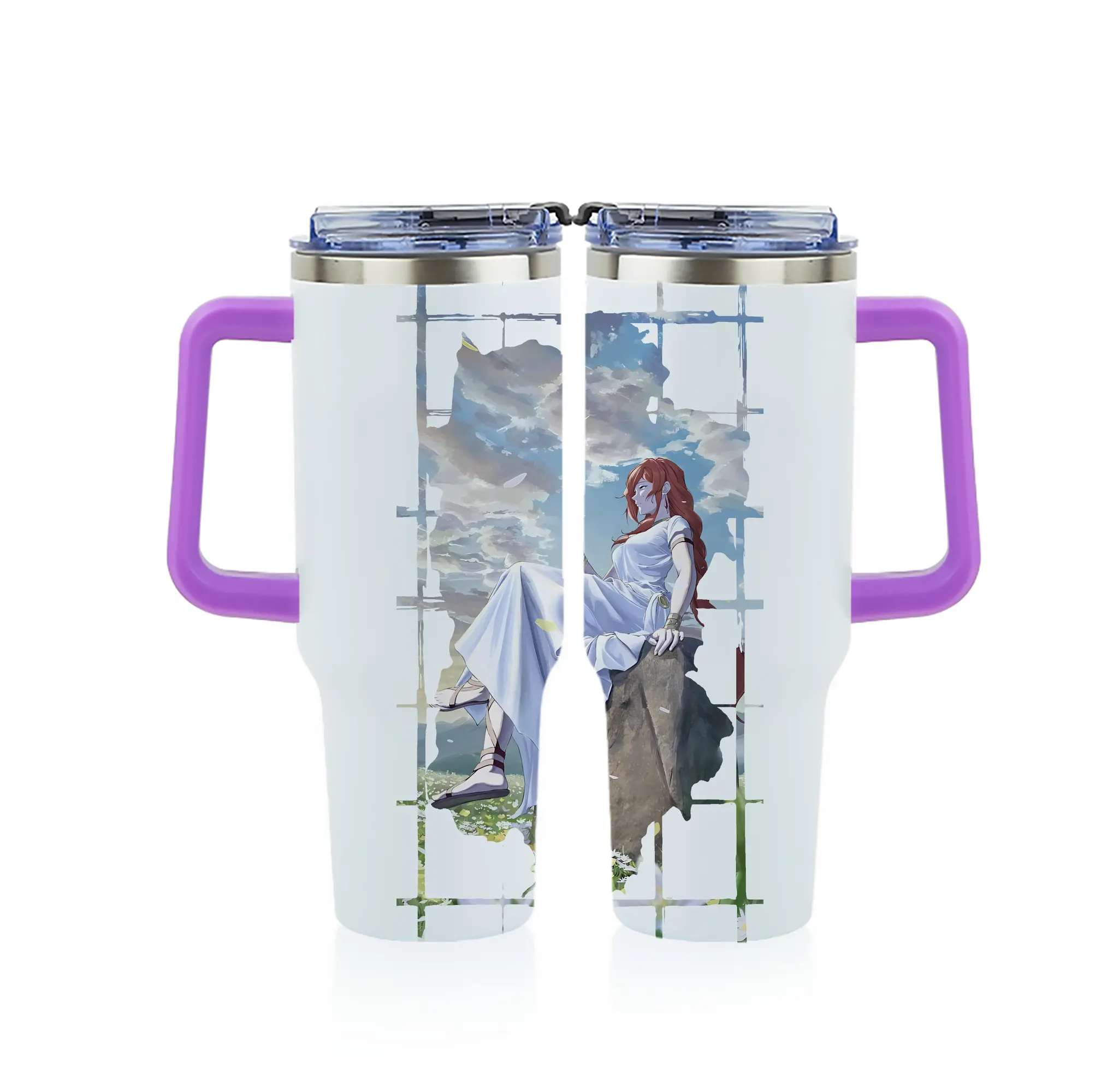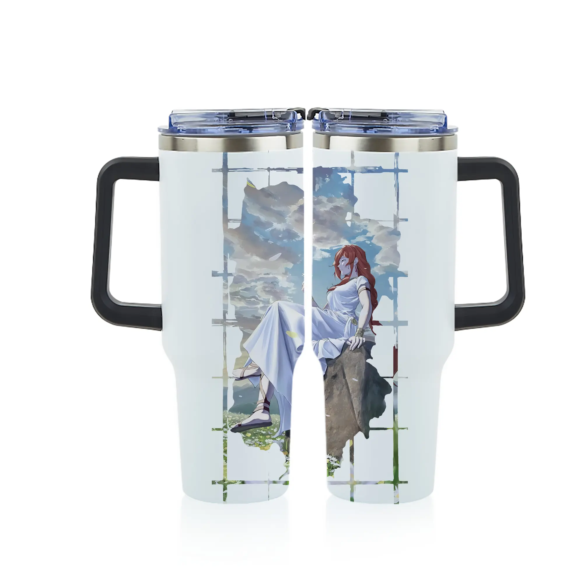 葬送のフリーレン(Frieren) グッズ,フランメ(Flamme) - 1200mL フルプリント車用タンブラー ・ 304ステンレス 内側 ・ 201ステンレス 外側 ・ 保温 保冷 ・ 通勤 ドライブ アウトドア用