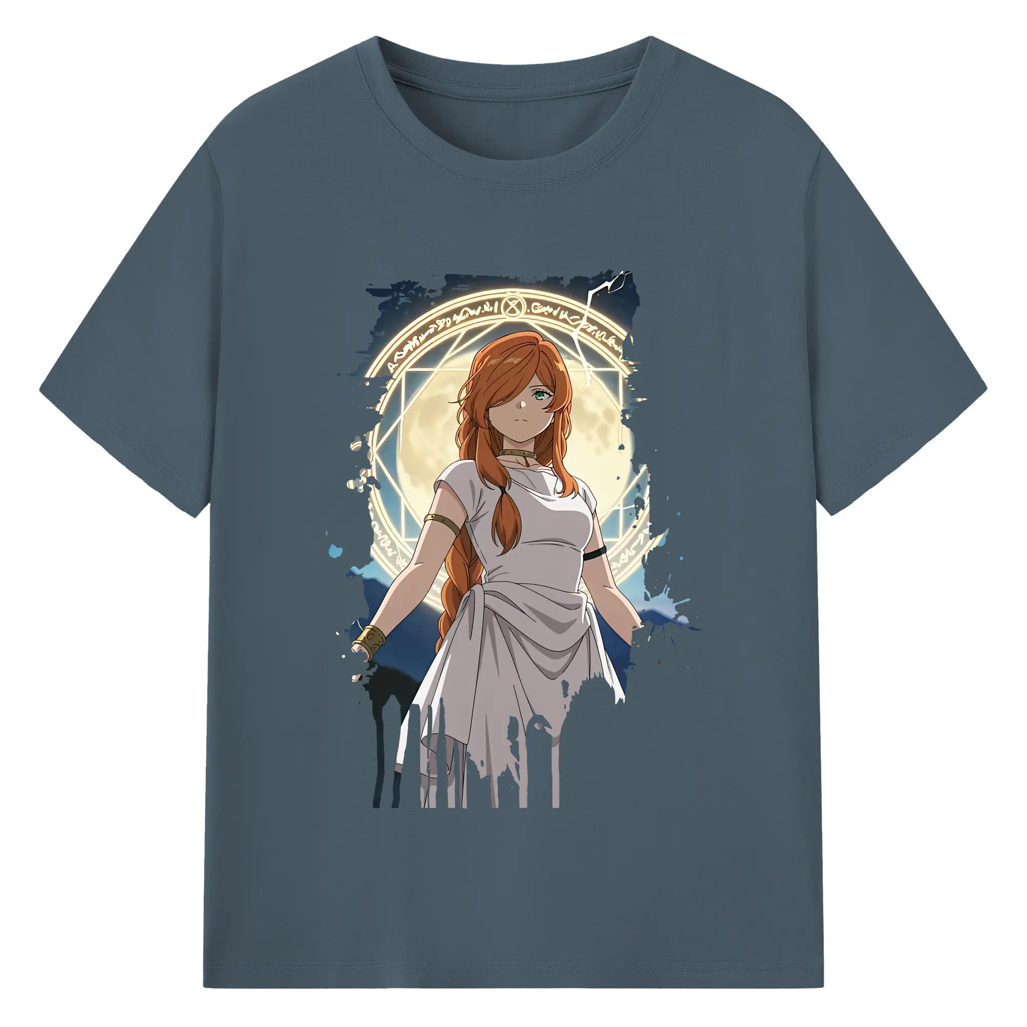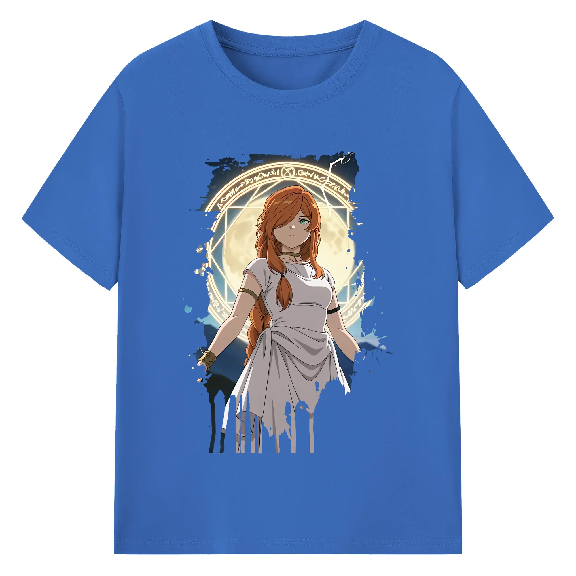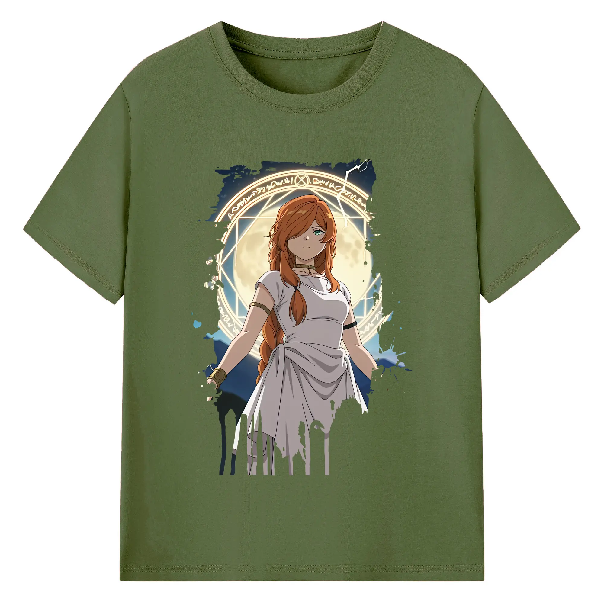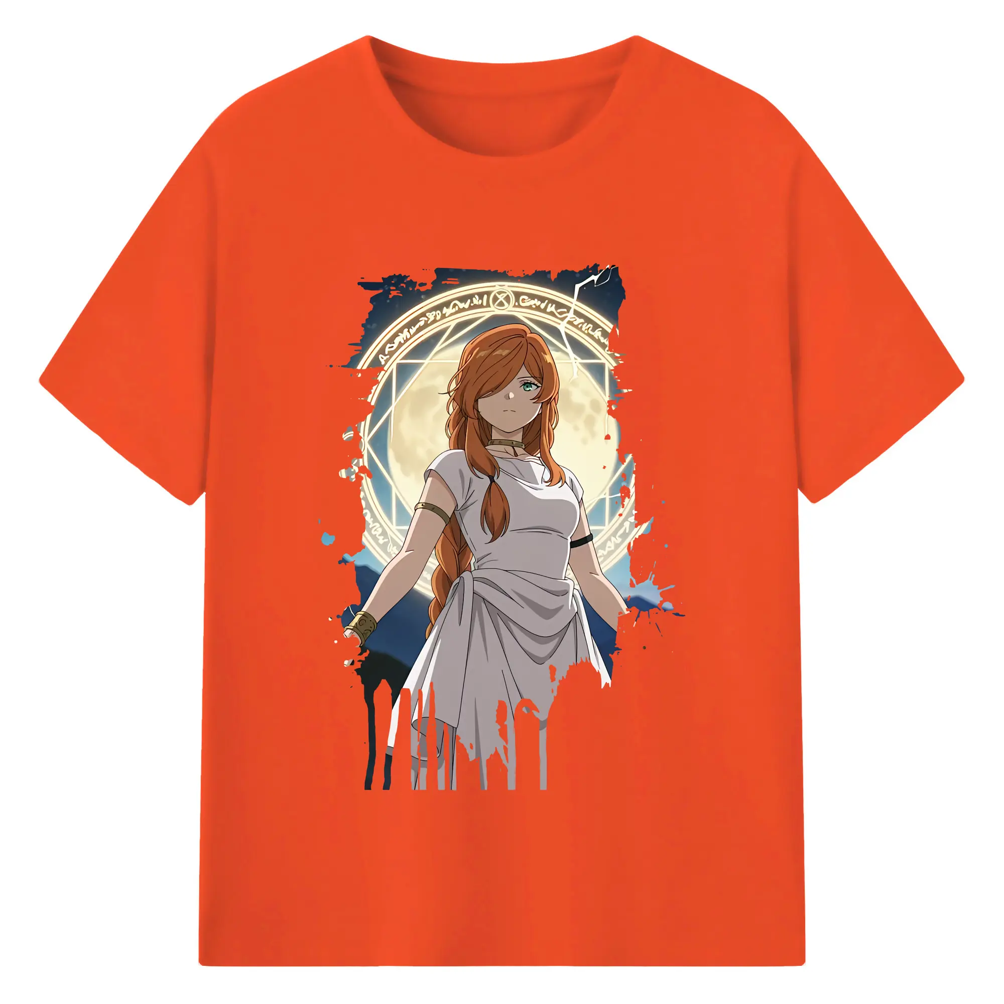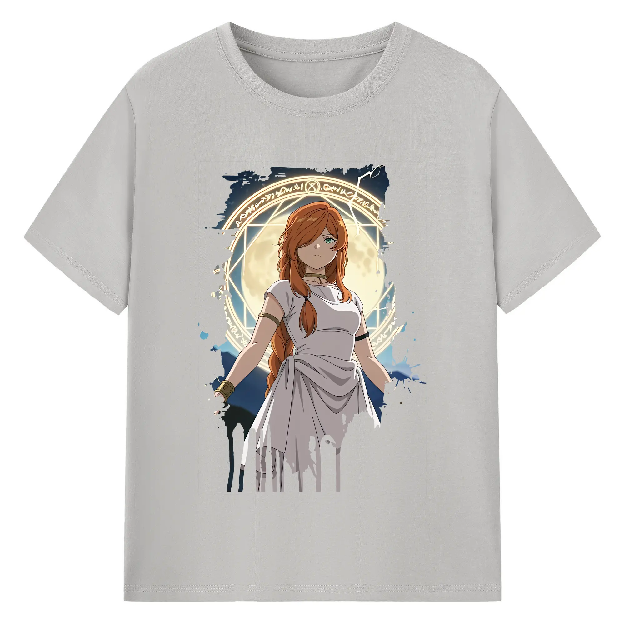 葬送のフリーレン(Frieren) グッズ,フランメ(Flamme) - 綿100% ヴィンテージ風 半袖Tシャツ ・ フロントプリント ・ 柔らか肌触り ・ 通気性 快適 ・ スポーツ カジュアル 外出用