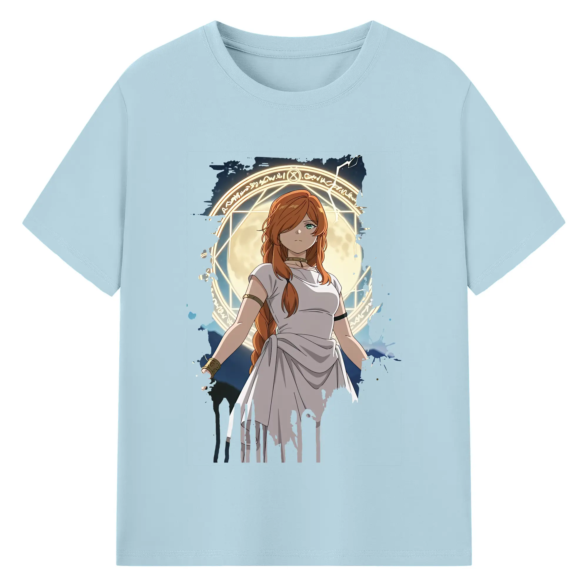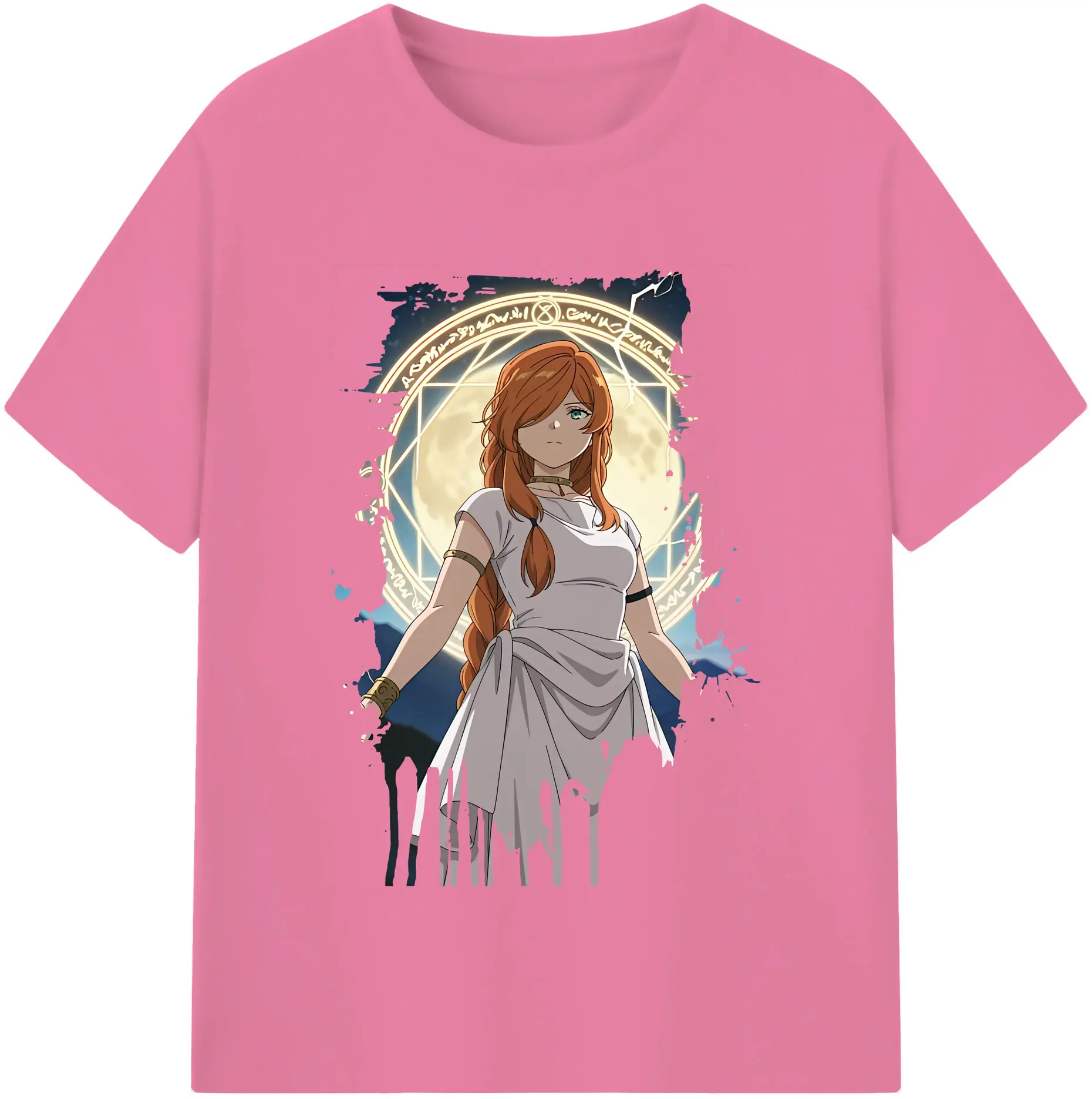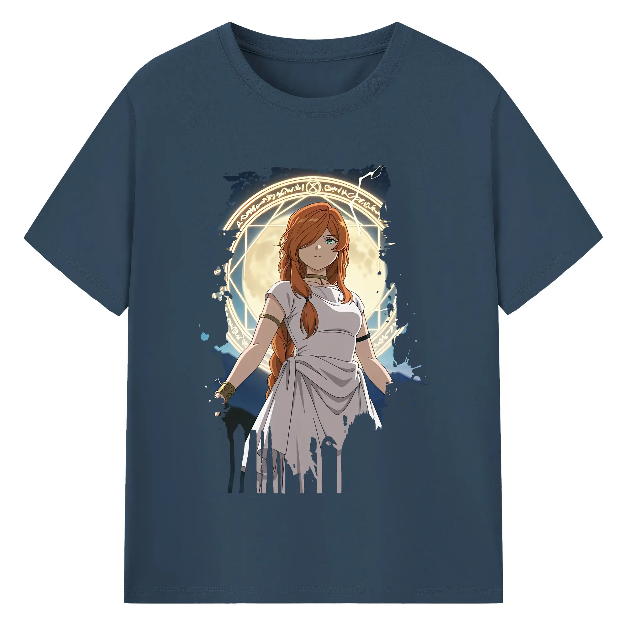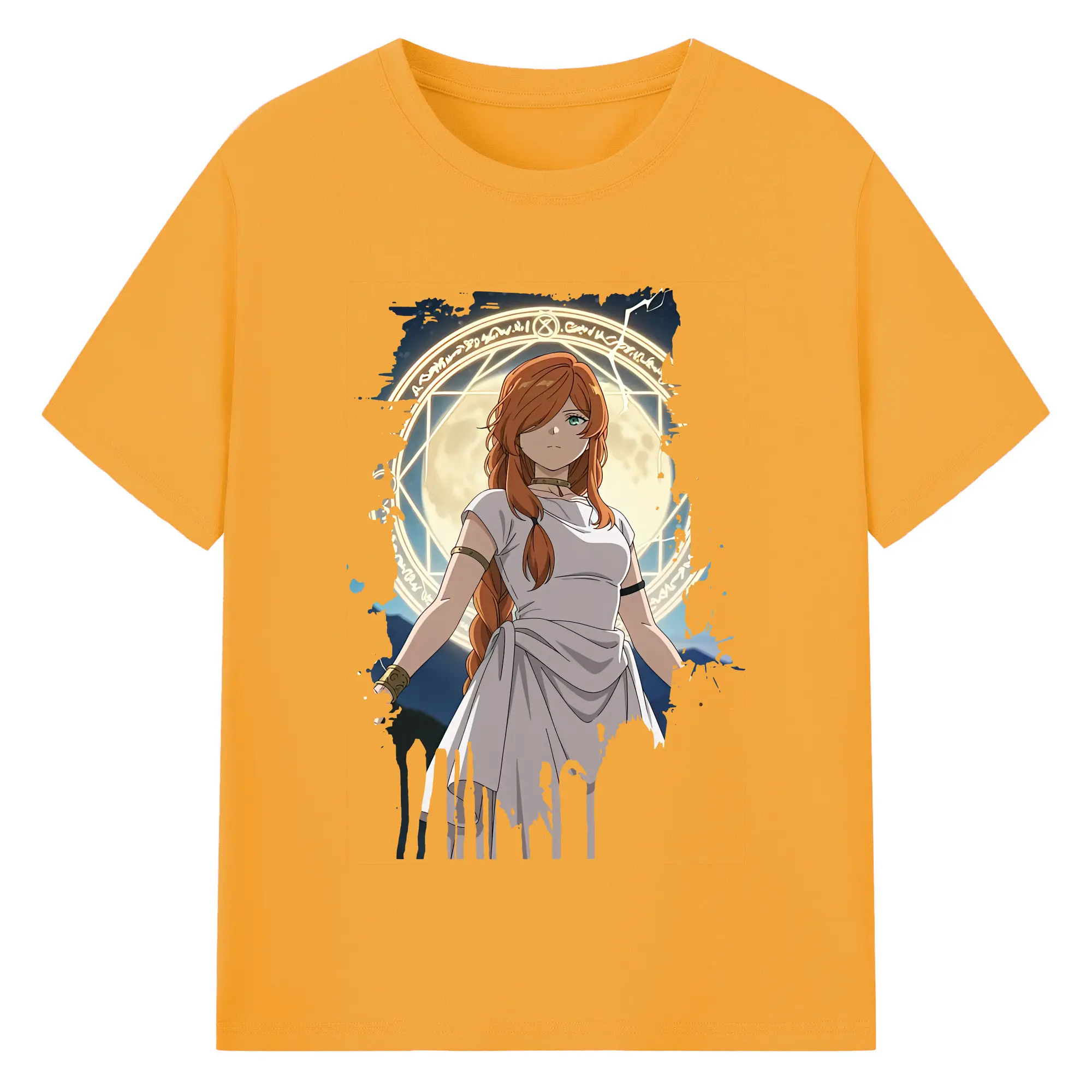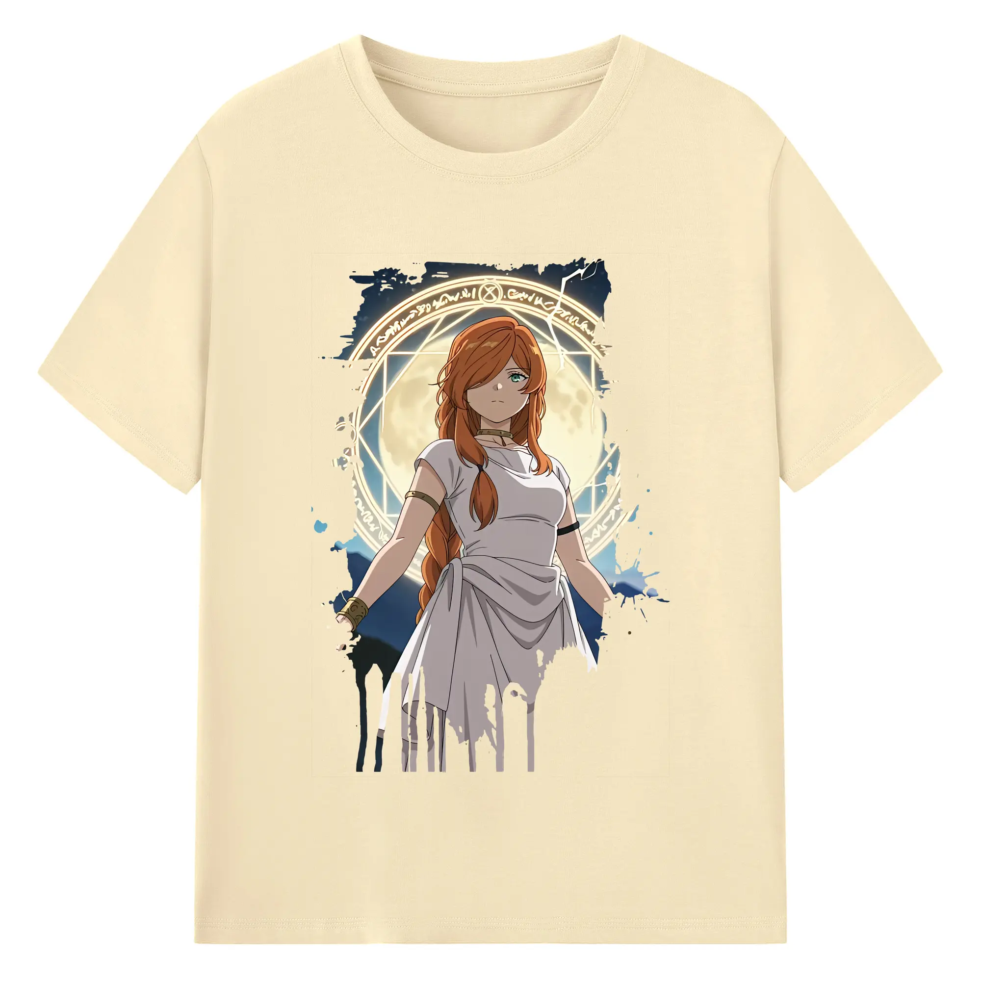 葬送のフリーレン(Frieren) グッズ,フランメ(Flamme) - 綿100% ヴィンテージ風 半袖Tシャツ ・ フロントプリント ・ 柔らか肌触り ・ 通気性 快適 ・ スポーツ カジュアル 外出用