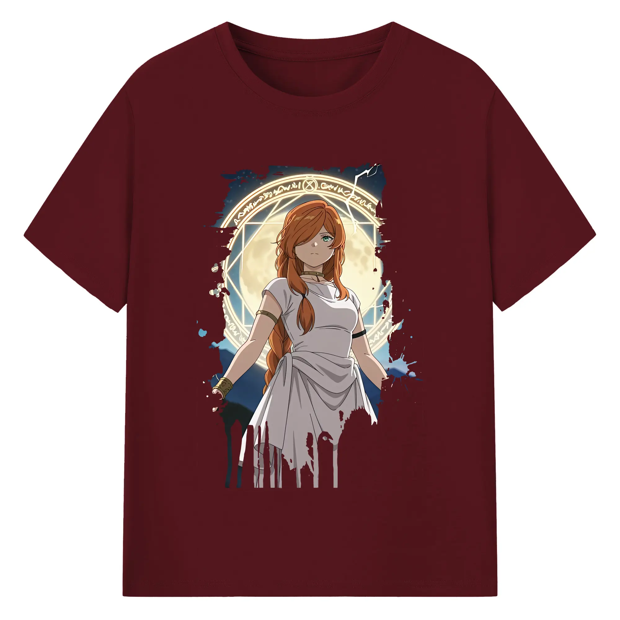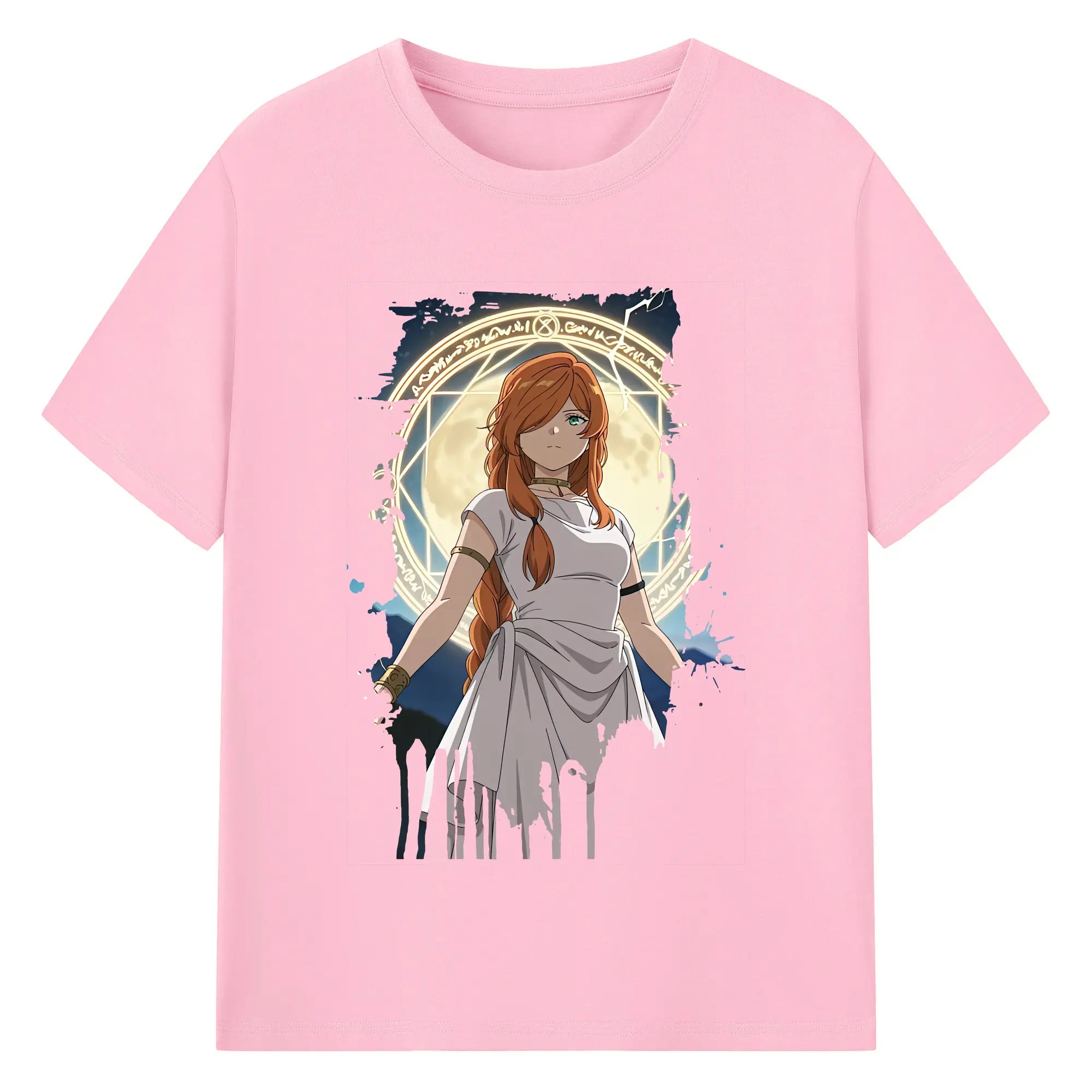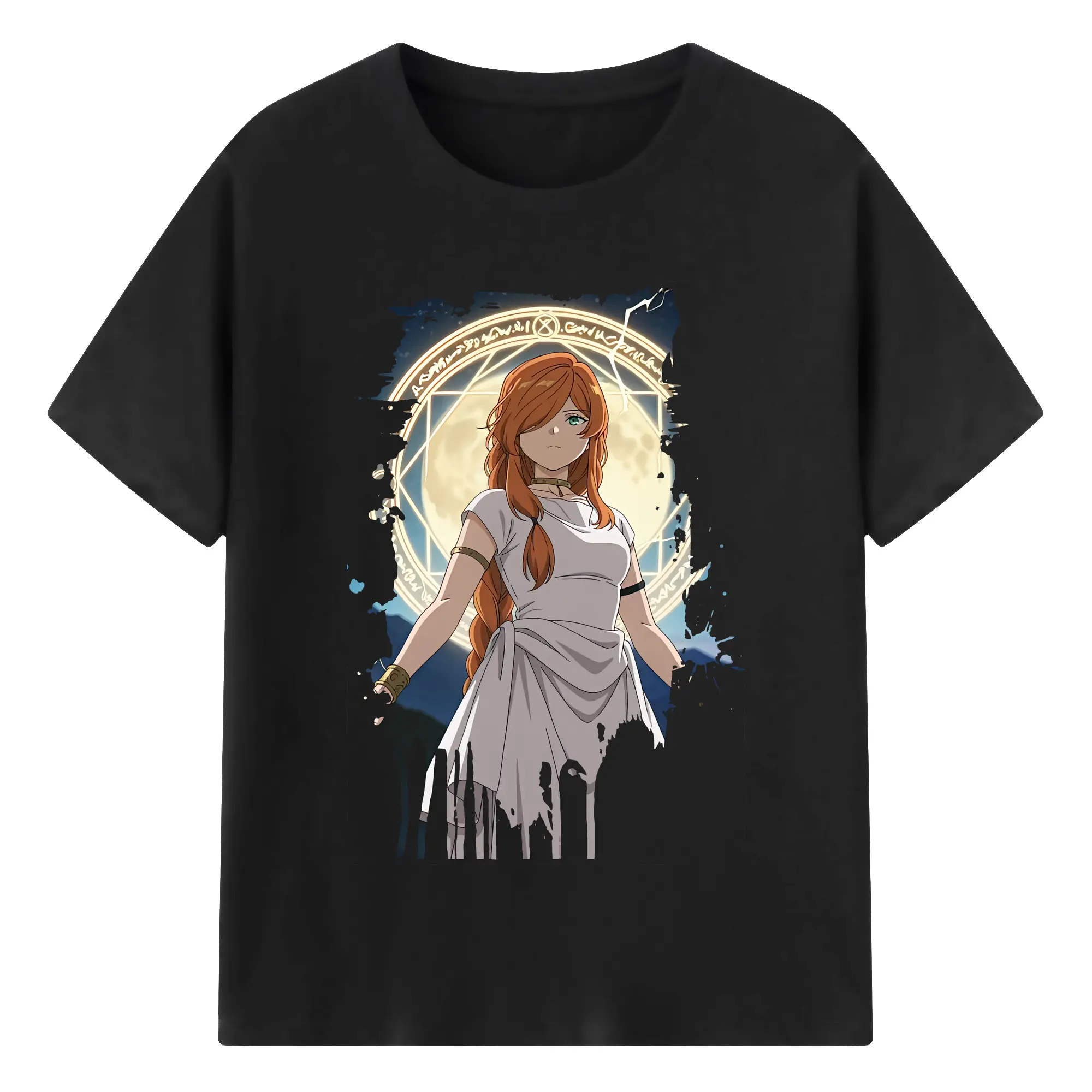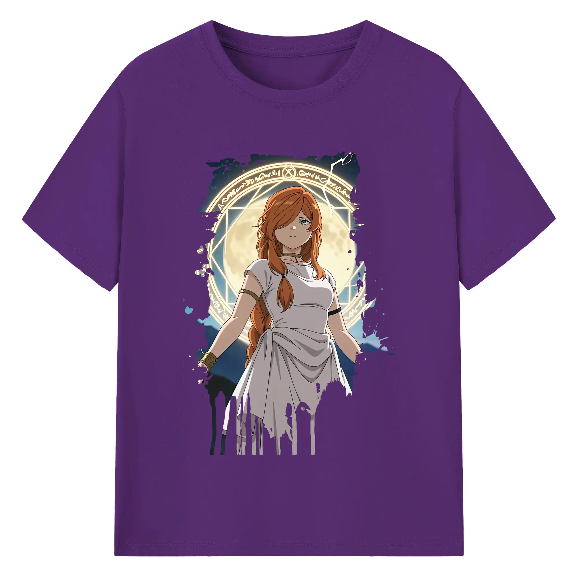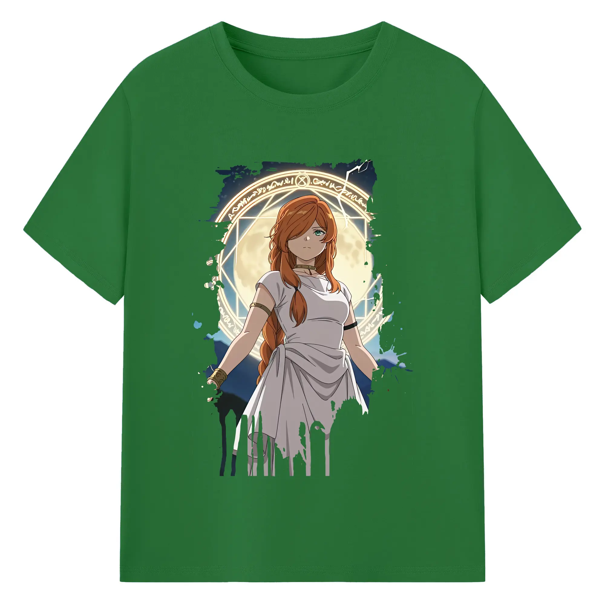 葬送のフリーレン(Frieren) グッズ,フランメ(Flamme) - 綿100% ヴィンテージ風 半袖Tシャツ ・ フロントプリント ・ 柔らか肌触り ・ 通気性 快適 ・ スポーツ カジュアル 外出用