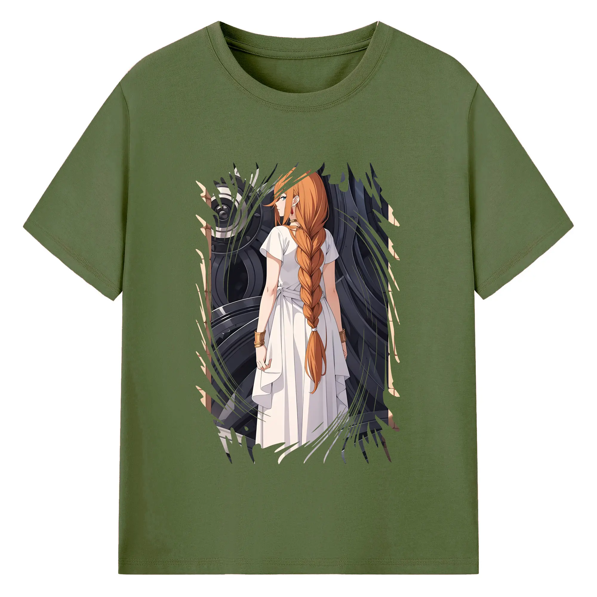 葬送のフリーレン(Frieren) グッズ,フランメ(Flamme) - 綿100% ヴィンテージ風 半袖Tシャツ ・ フロントプリント ・ 柔らか肌触り ・ 通気性 快適 ・ スポーツ カジュアル 外出用
