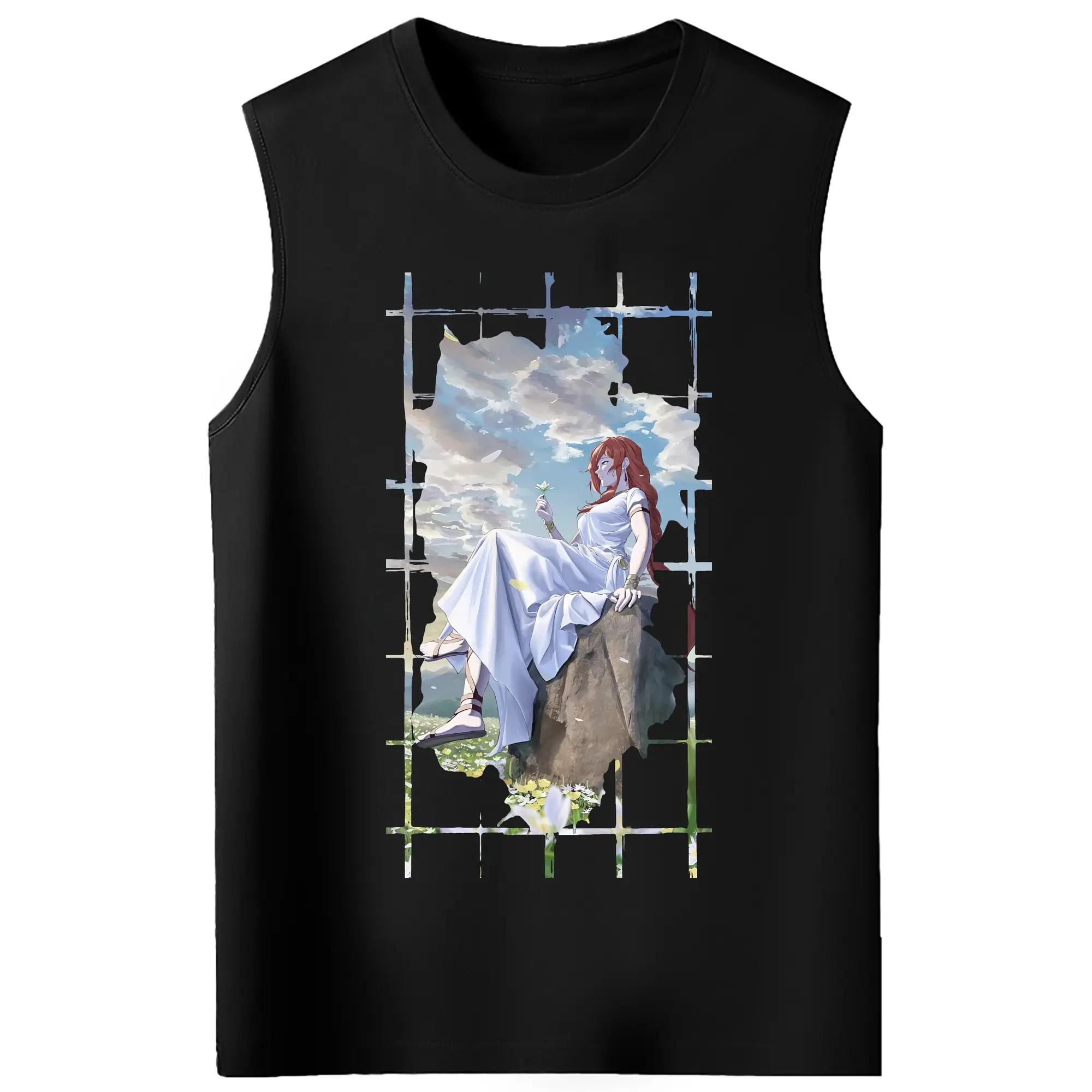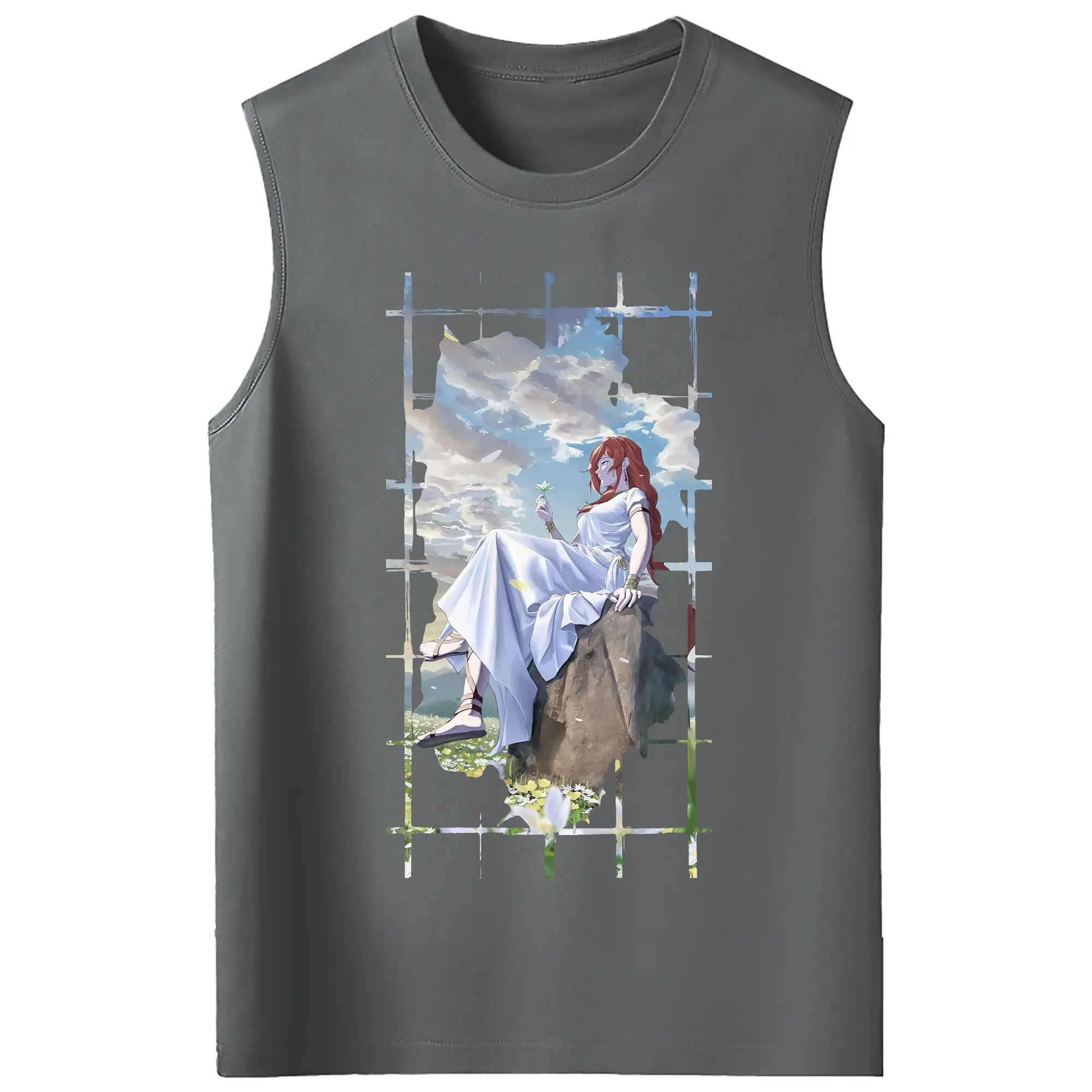 葬送のフリーレン(Frieren) グッズ,フランメ(Flamme) - コットン100% タンクトップ ・ フロントプリント ・ タイトフィット ・ 快適 通気性 ・ スポーツ カジュアル 散歩用