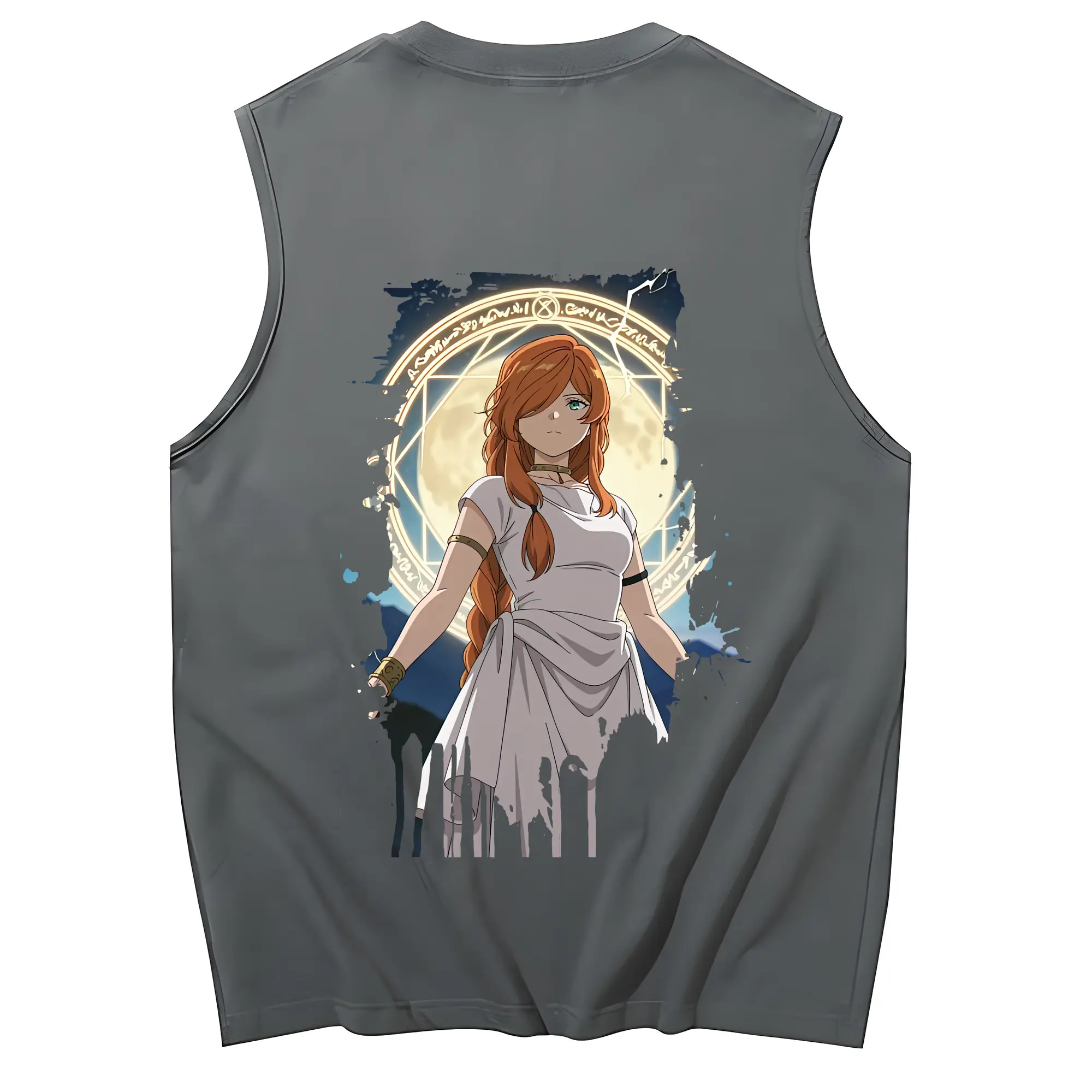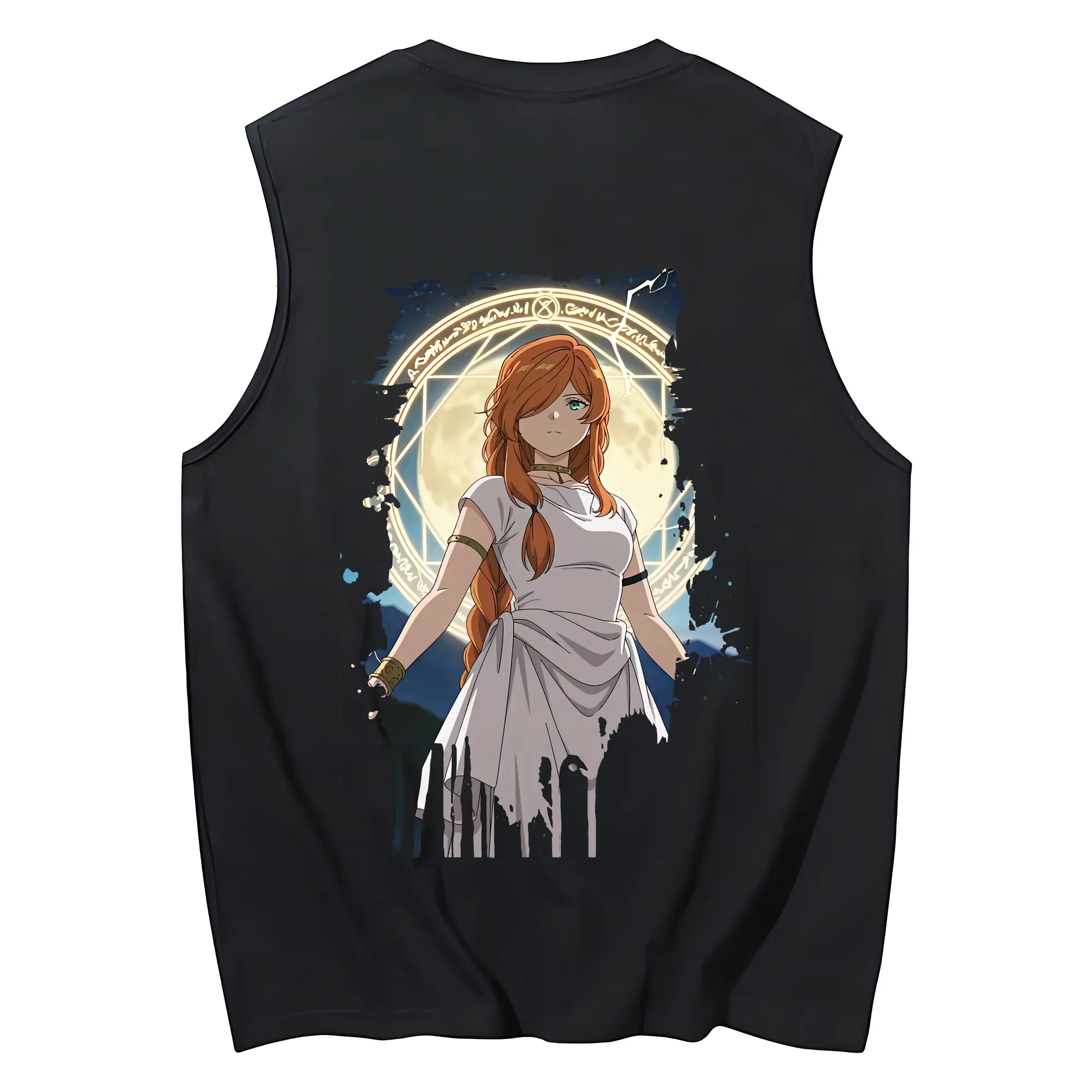 葬送のフリーレン(Frieren) グッズ,フランメ(Flamme) - コットン100% タンクトップ ・ 背面プリント ・ タイトシルエット ・ 快適 通気性 ・ スポーツ カジュアル 散歩用
