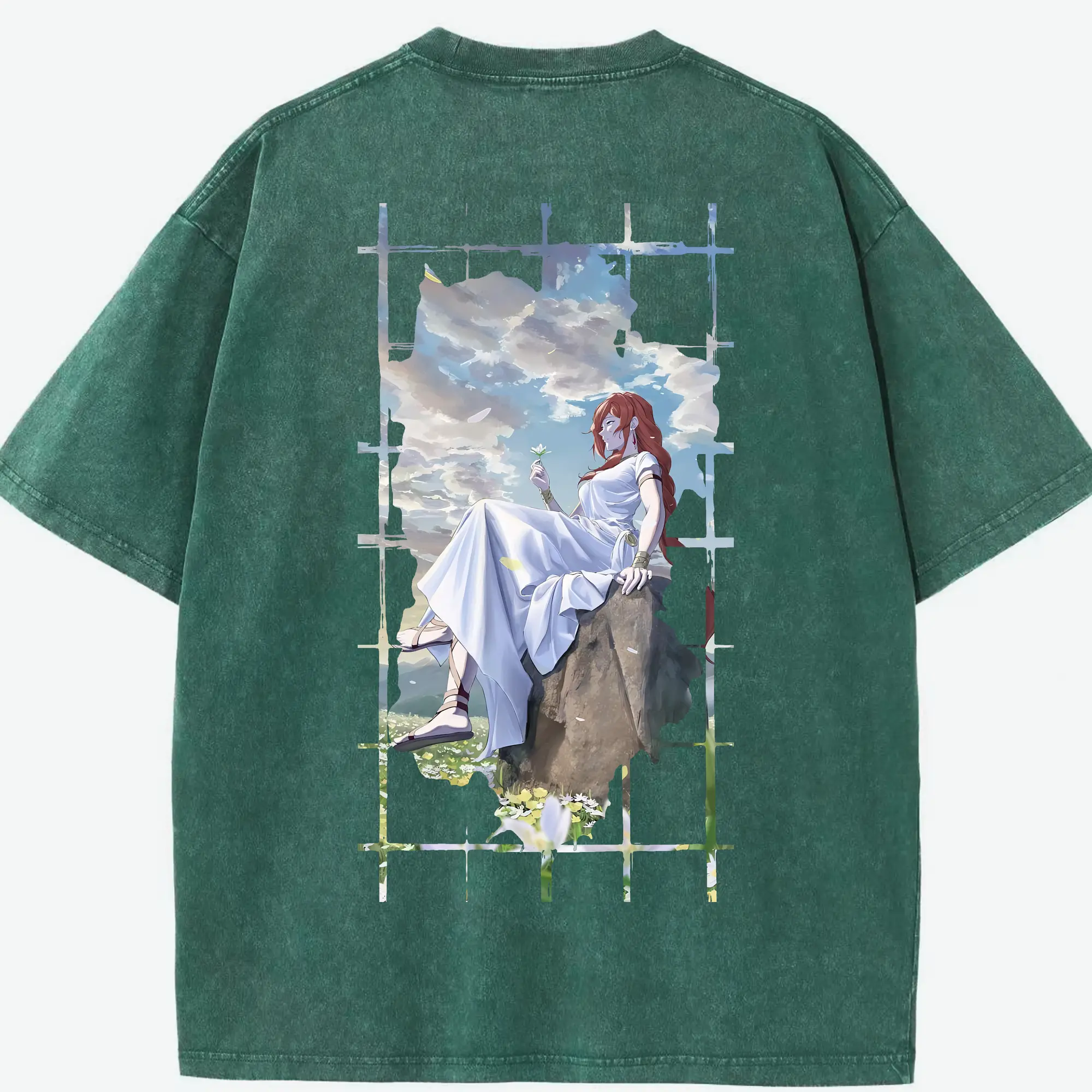 怪獣8号 グッズ,亜白ミナ - 綿100% ヴィンテージ風 半袖Tシャツ ・ 背面プリント ・ 柔らか肌触り ・ 通気性 快適 ・ スポーツ カジュアル 外出用