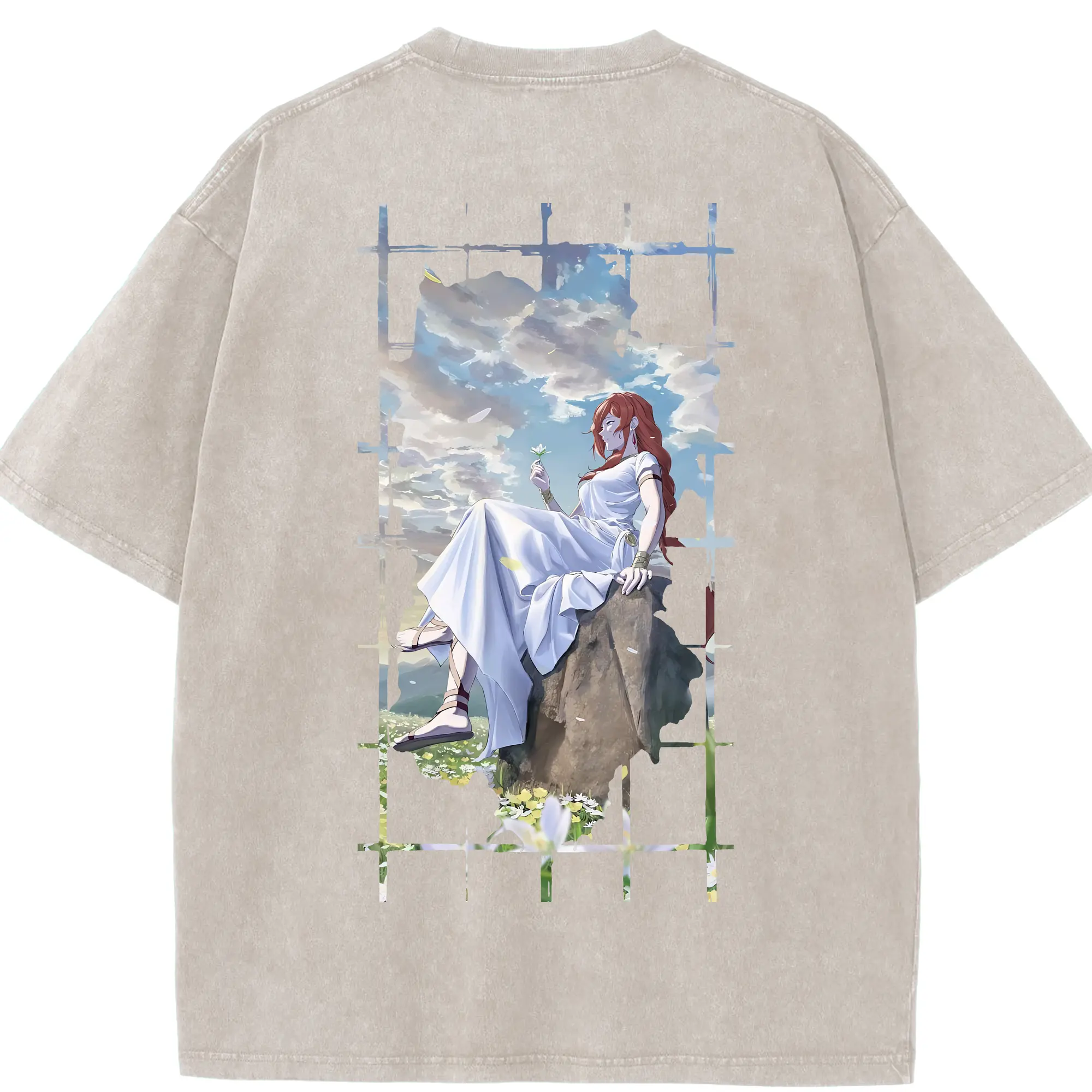 オーバーロード グッズ アルベド - 綿100% ヴィンテージ風 半袖Tシャツ ・ 背面プリント ・ 柔らか肌触り ・ 通気性 快適 ・ スポーツ カジュアル 外出用