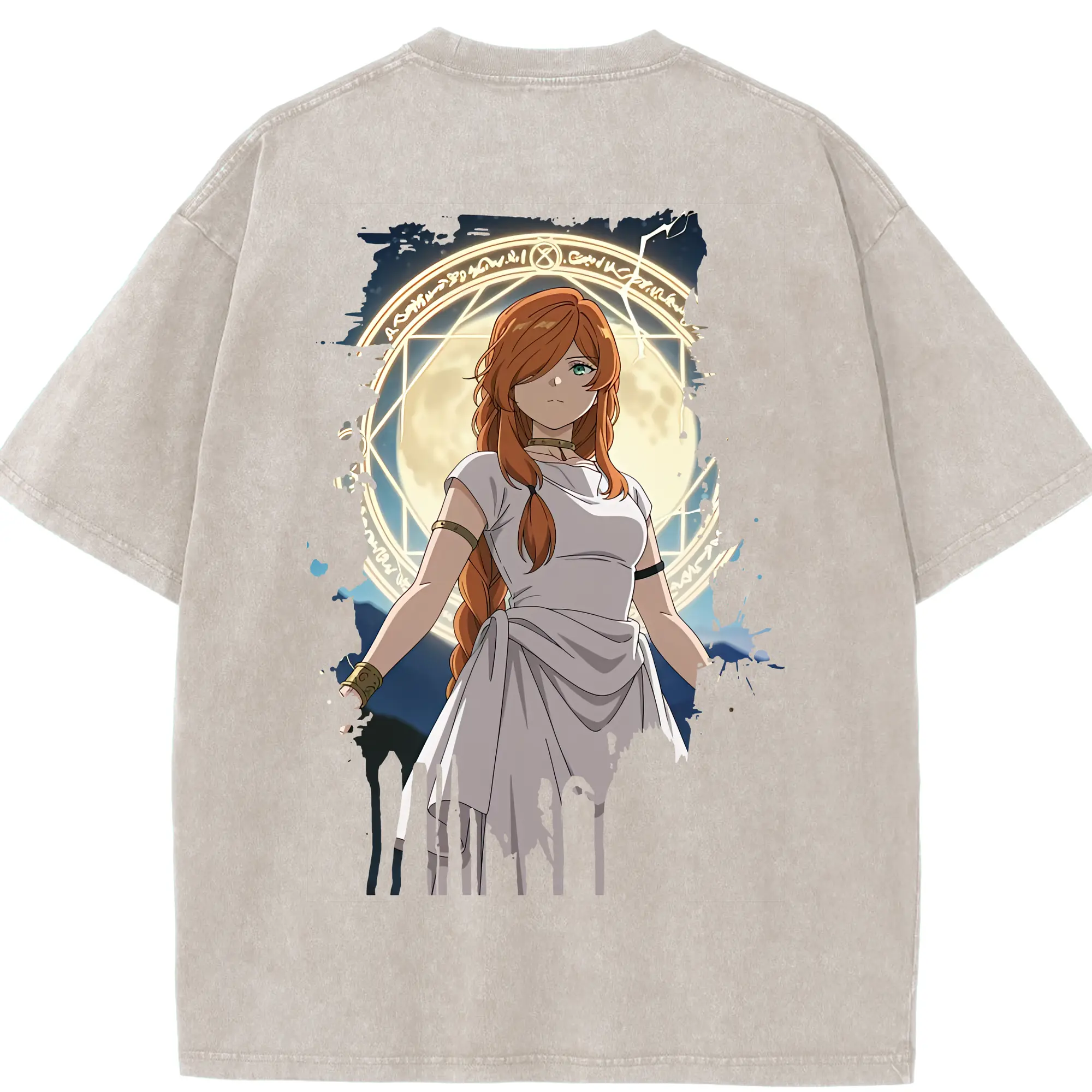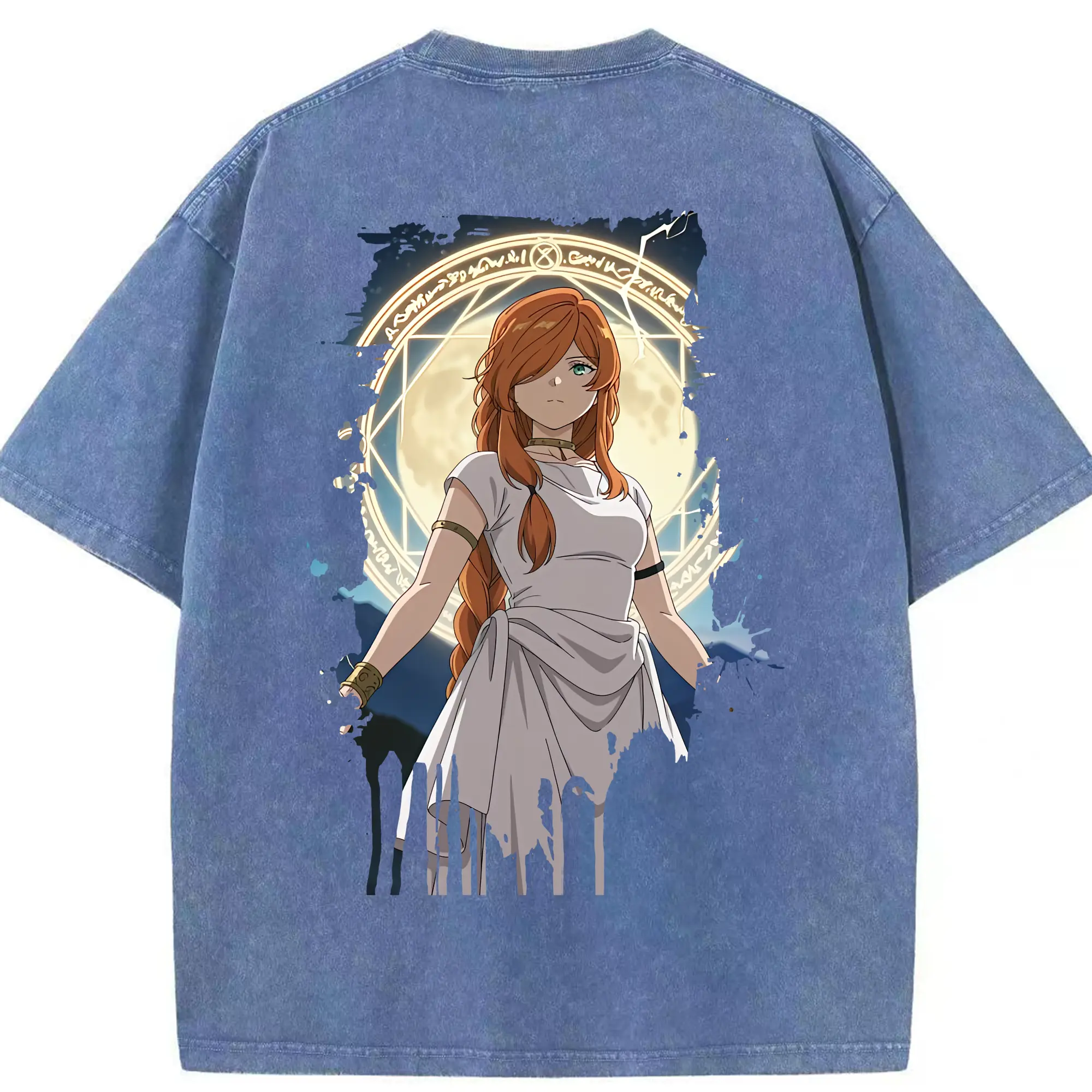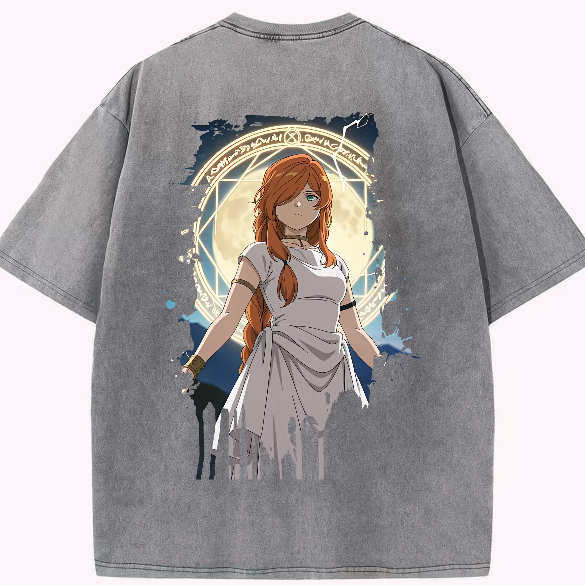 七つの大罪 グッズ エリザベス - 綿100% ヴィンテージ風 半袖Tシャツ ・ 背面プリント ・ 柔らか肌触り ・ 通気性 快適 ・ スポーツ カジュアル 外出用