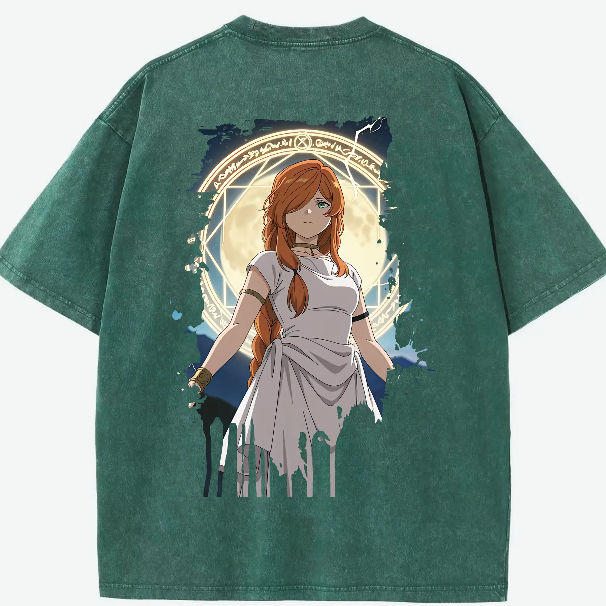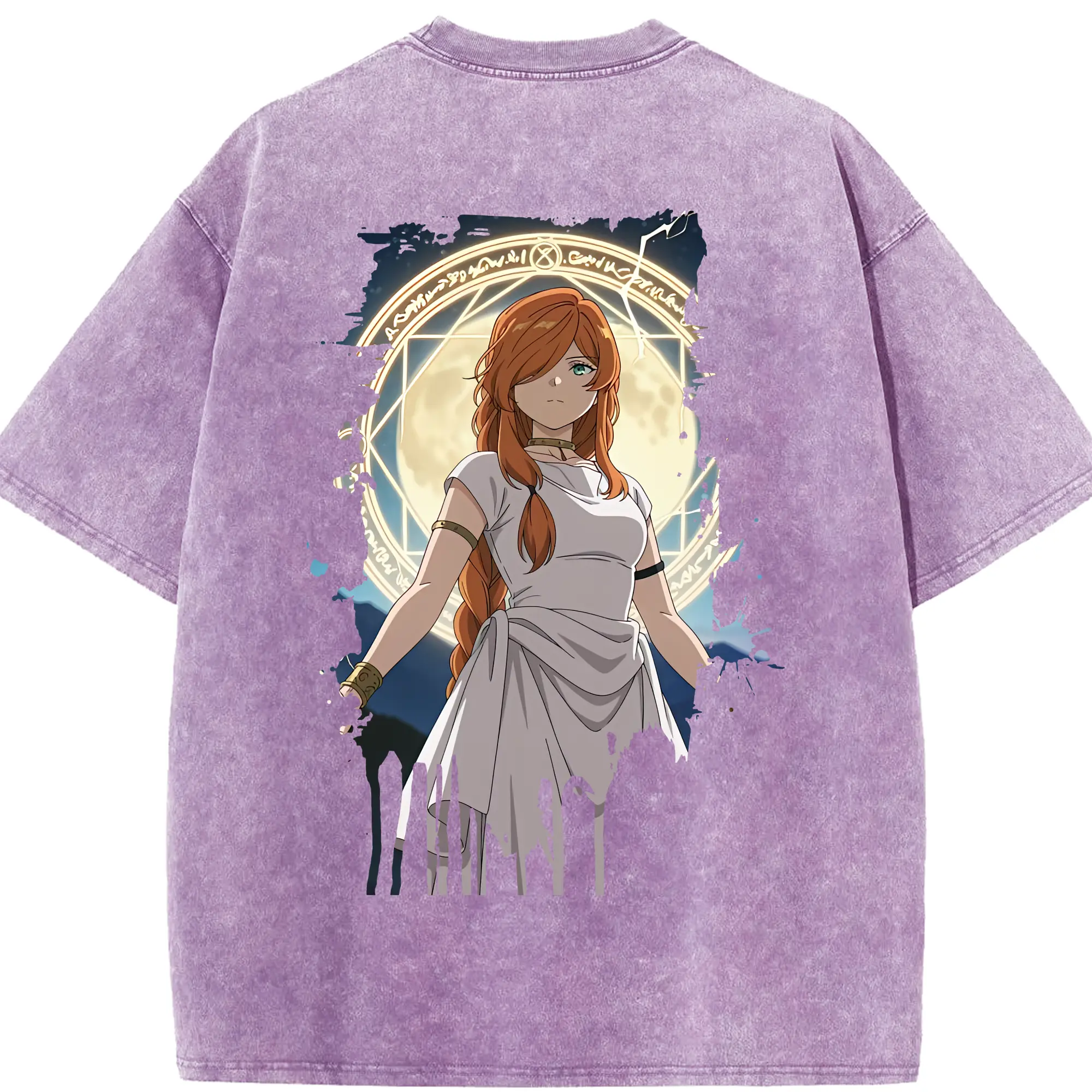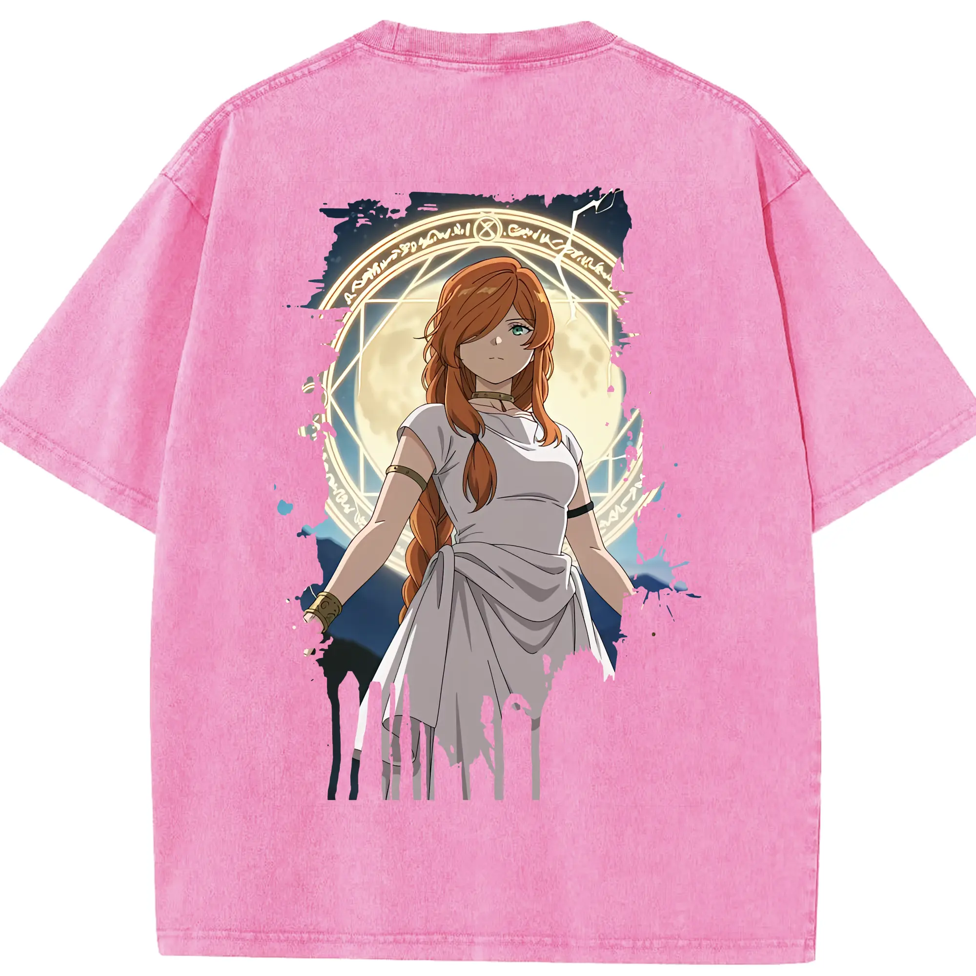 七つの大罪 グッズ エリザベス - 綿100% ヴィンテージ風 半袖Tシャツ ・ 背面プリント ・ 柔らか肌触り ・ 通気性 快適 ・ スポーツ カジュアル 外出用