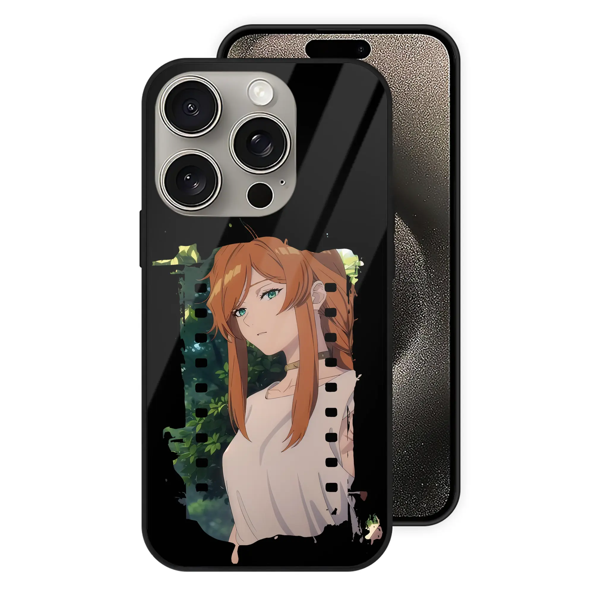 葬送のフリーレン(Frieren) グッズ,フランメ(Flamme) - IPhone15Pro対応 ・ スマホケース ・ 背面ガラス ・ TPU+強化ガラス ・ 耐衝撃 ・ 黄変防止 ・ ワイヤレス充電対応 ・ 3D立体ボタン