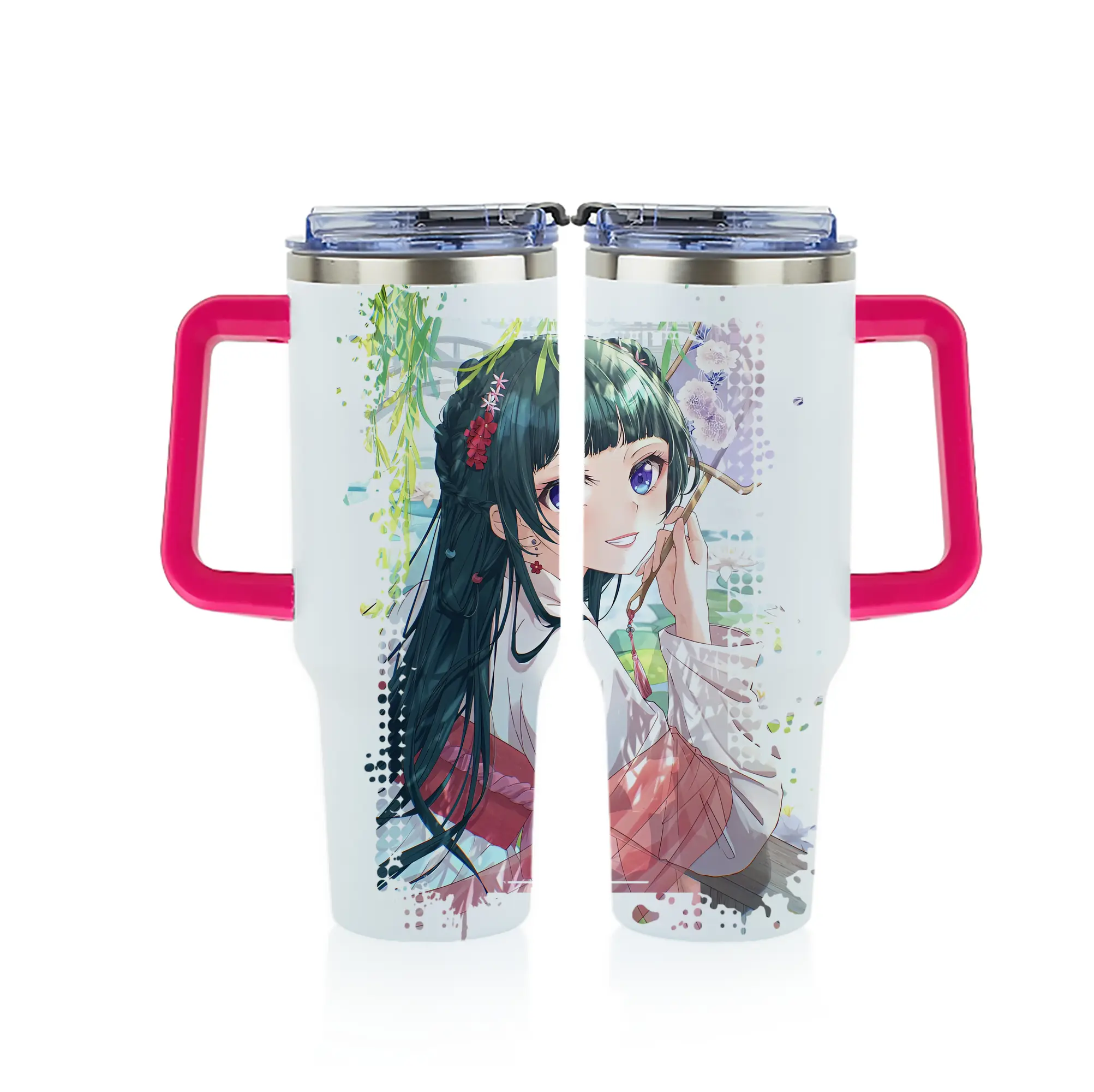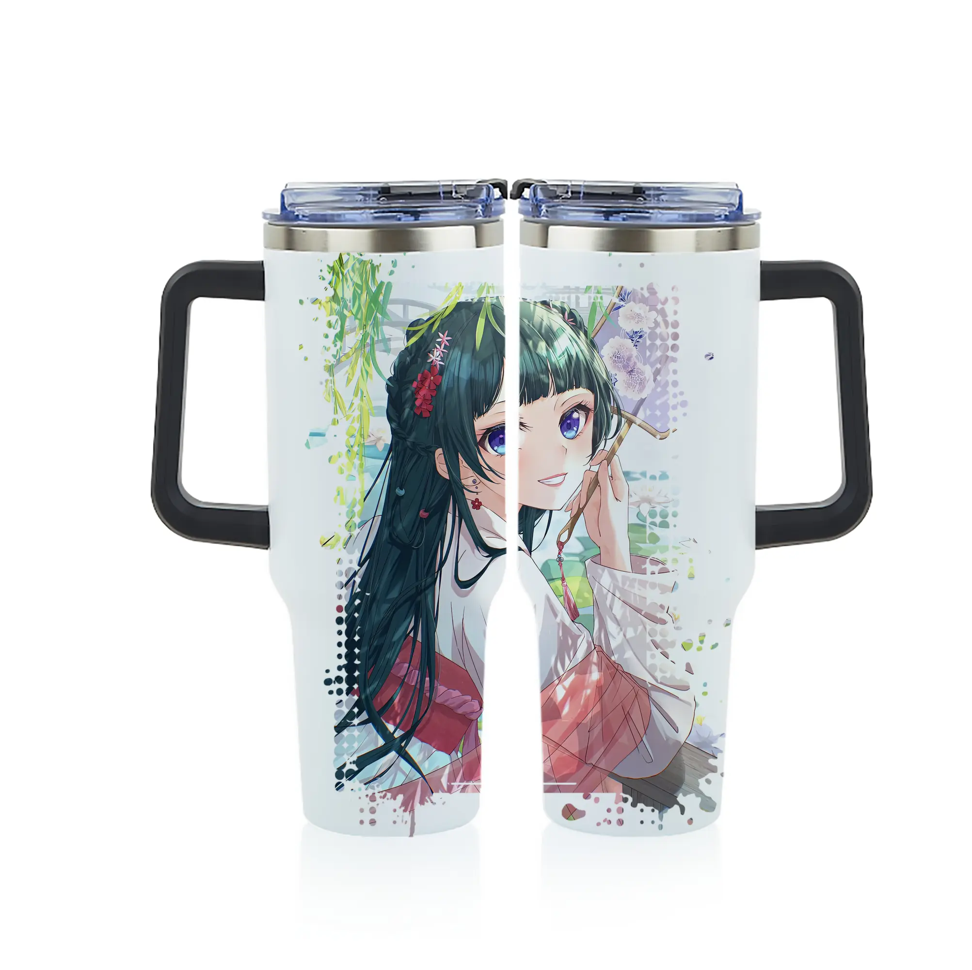 薬屋のひとりごと グッズ,猫猫 - 1200mL フルプリント車用タンブラー ・ 304ステンレス 内側 ・ 201ステンレス 外側 ・ 保温 保冷 ・ 通勤 ドライブ アウトドア用