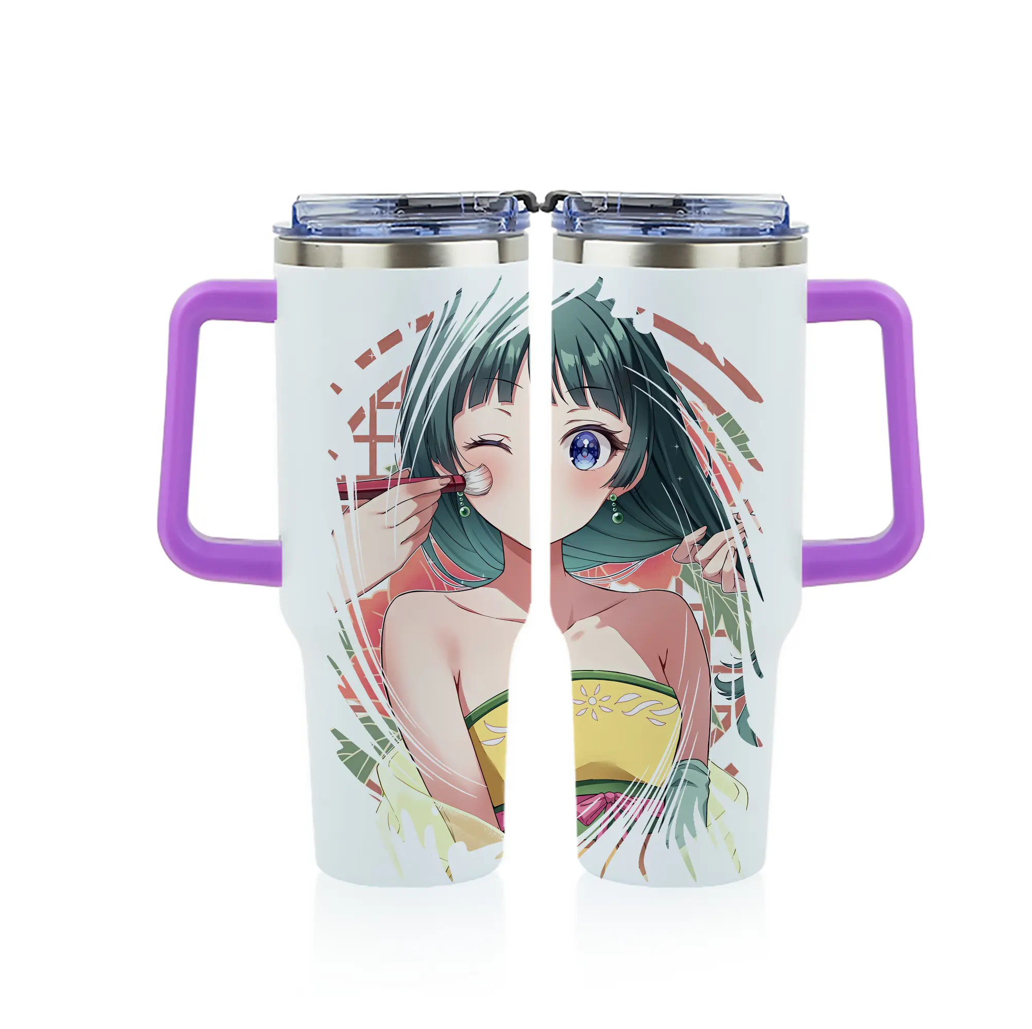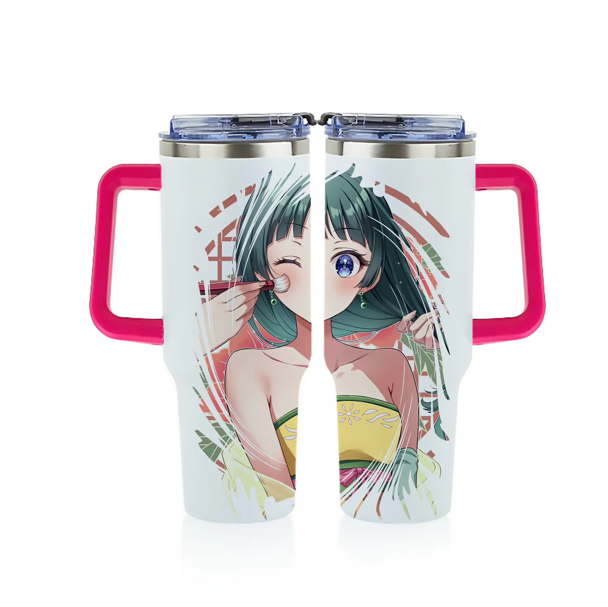 薬屋のひとりごと グッズ,猫猫 - 1200mL フルプリント車用タンブラー ・ 304ステンレス 内側 ・ 201ステンレス 外側 ・ 保温 保冷 ・ 通勤 ドライブ アウトドア用
