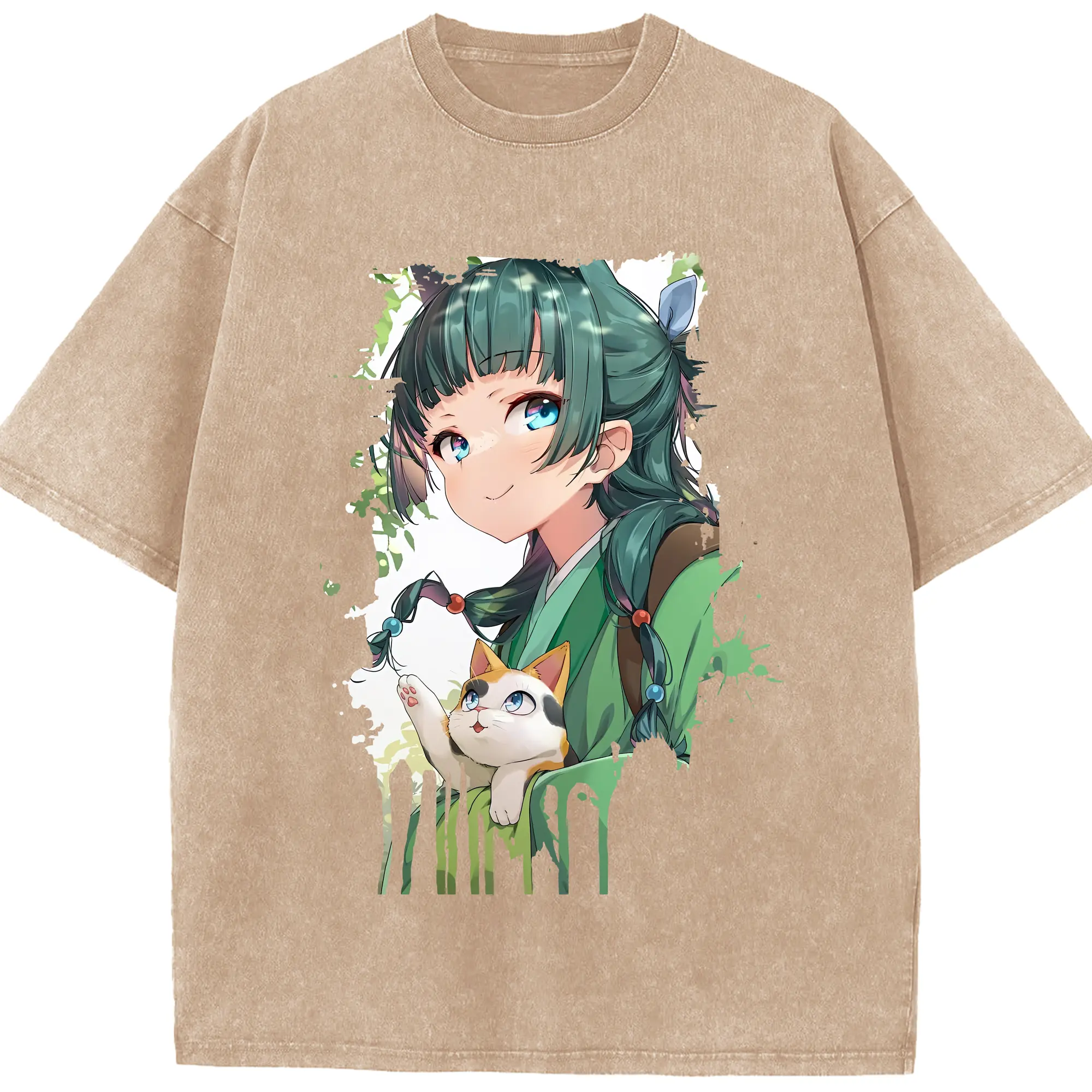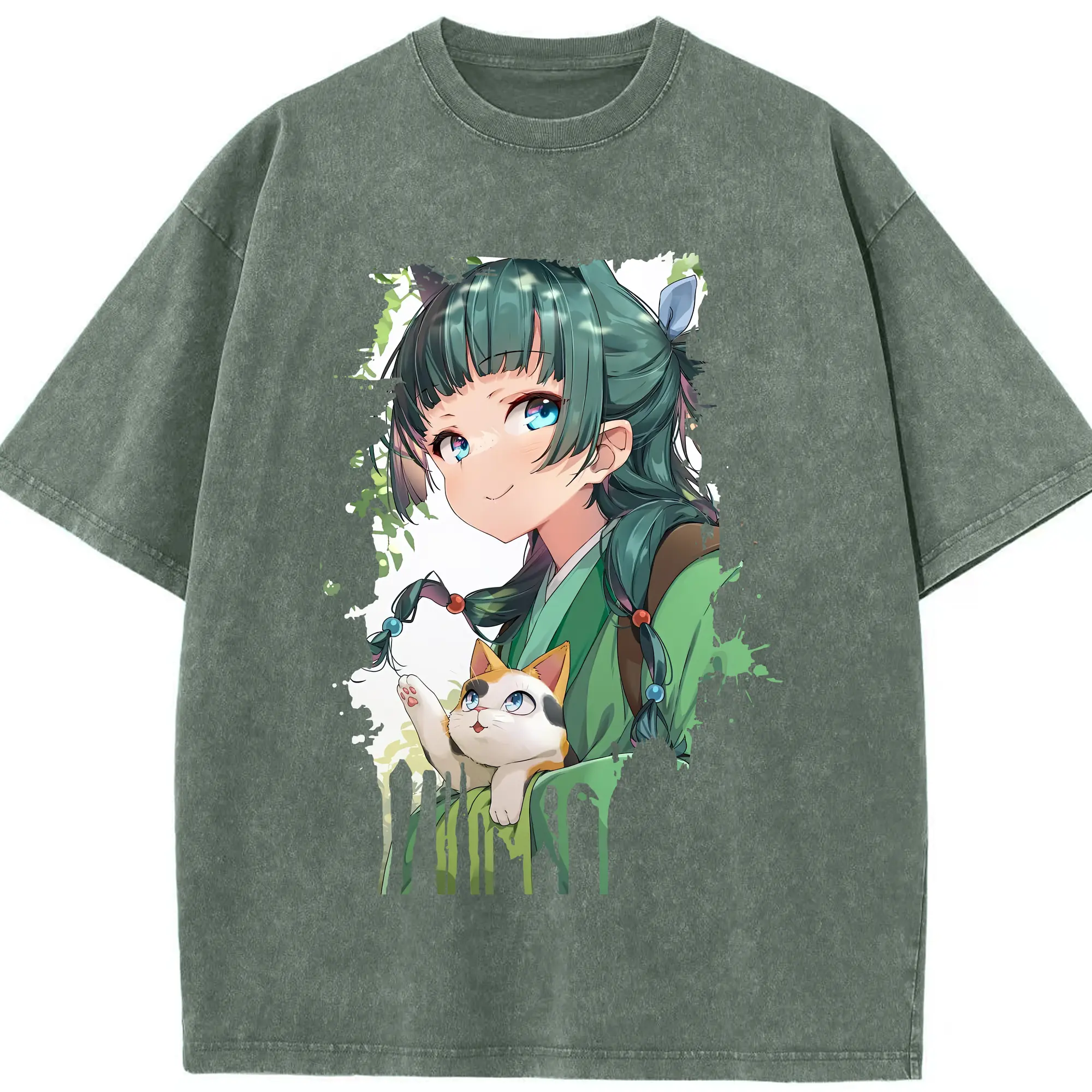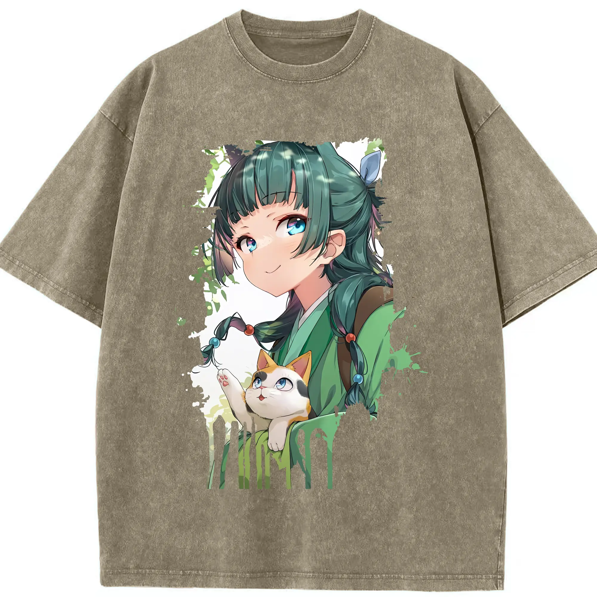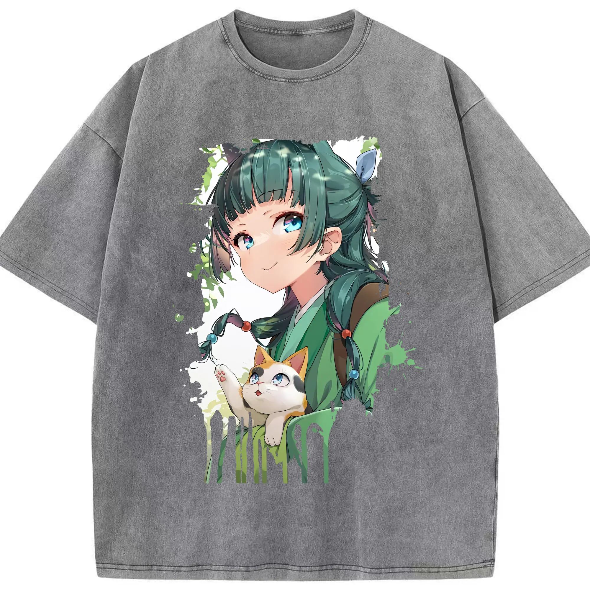 薬屋のひとりごと グッズ,猫猫 - 綿100% ヴィンテージ風 半袖Tシャツ ・ 背面プリント ・ 柔らか肌触り ・ 通気性 快適 ・ スポーツ カジュアル 外出用