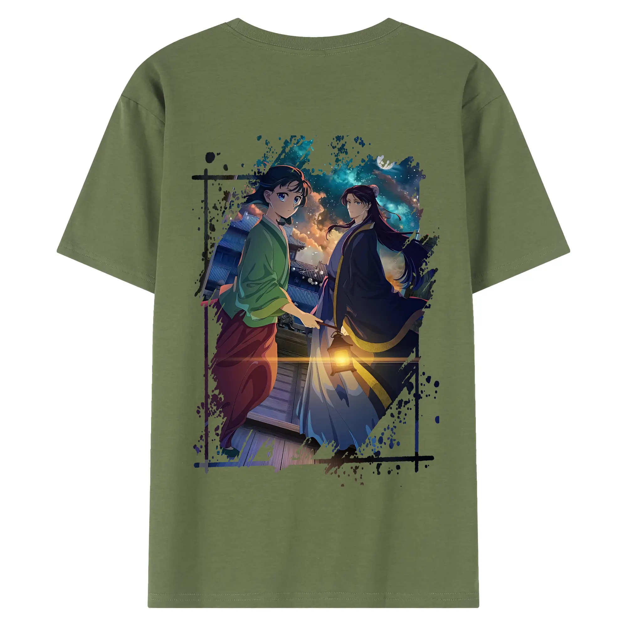 薬屋のひとりごと グッズ,壬氏 - 綿100% ヴィンテージ風 半袖Tシャツ ・ 背面プリント ・ 柔らか肌触り ・ 通気性 快適 ・ スポーツ カジュアル 外出用