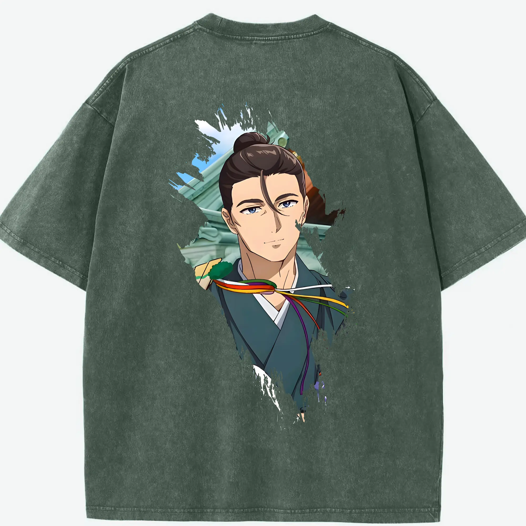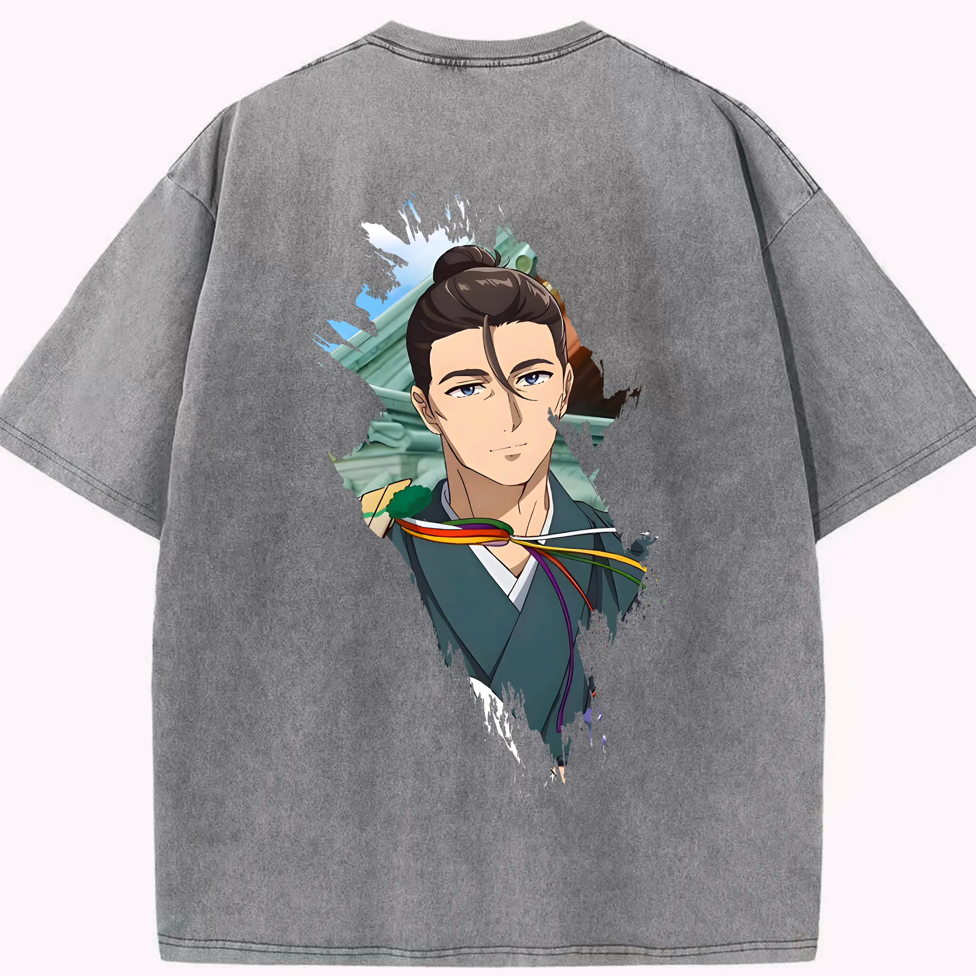 鬼滅の刃 グッズ,伊黒 小芭内 - 綿100% ヴィンテージ風 半袖Tシャツ ・ 背面プリント ・ 柔らか肌触り ・ 通気性 快適 ・ スポーツ カジュアル 外出用
