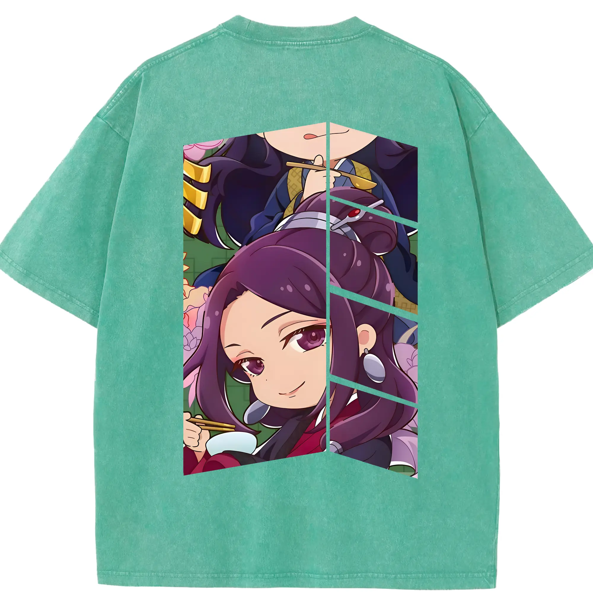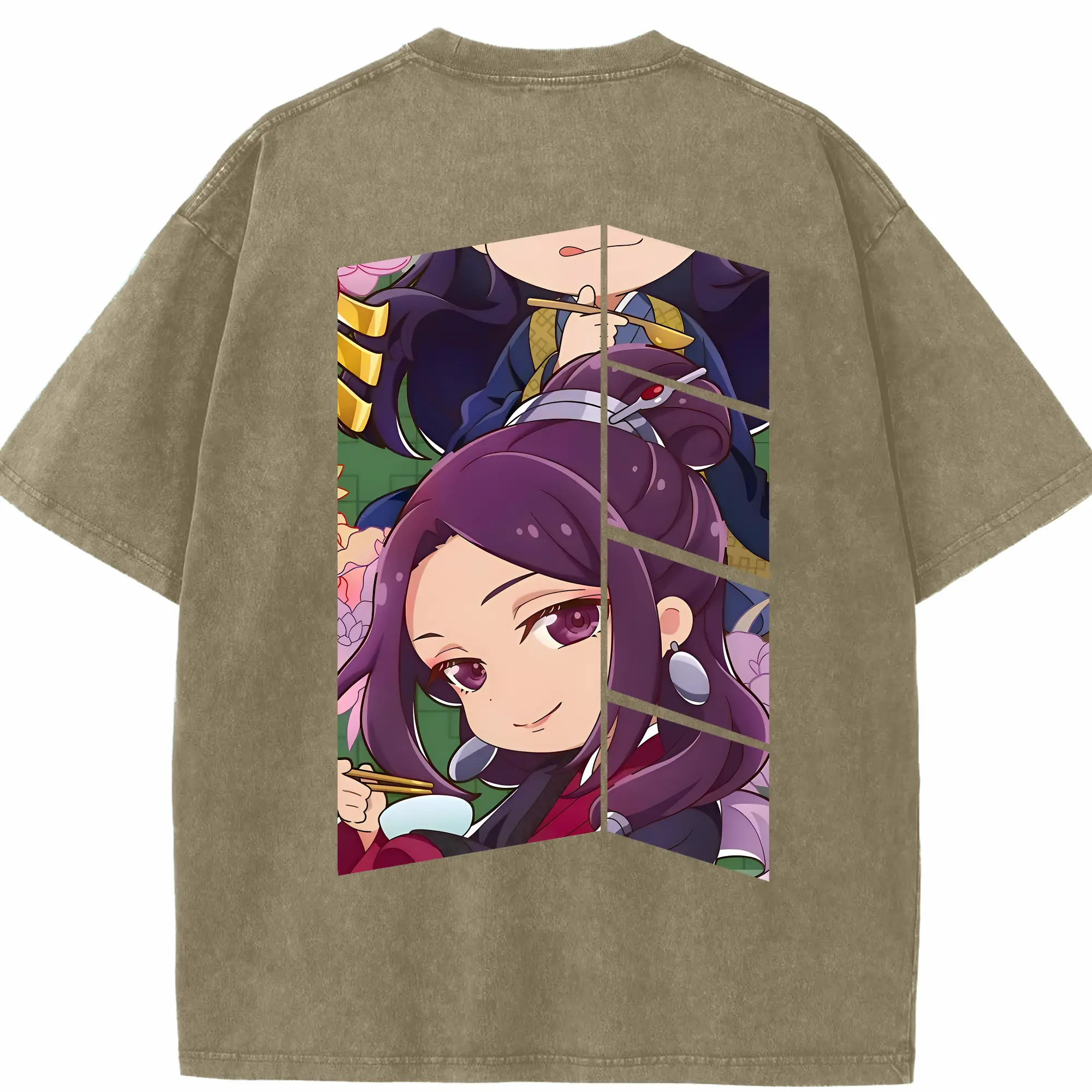 鬼滅の刃 グッズ,胡蝶 しのぶ - 綿100% ヴィンテージ風 半袖Tシャツ ・ 背面プリント ・ 柔らか肌触り ・ 通気性 快適 ・ スポーツ カジュアル 外出用