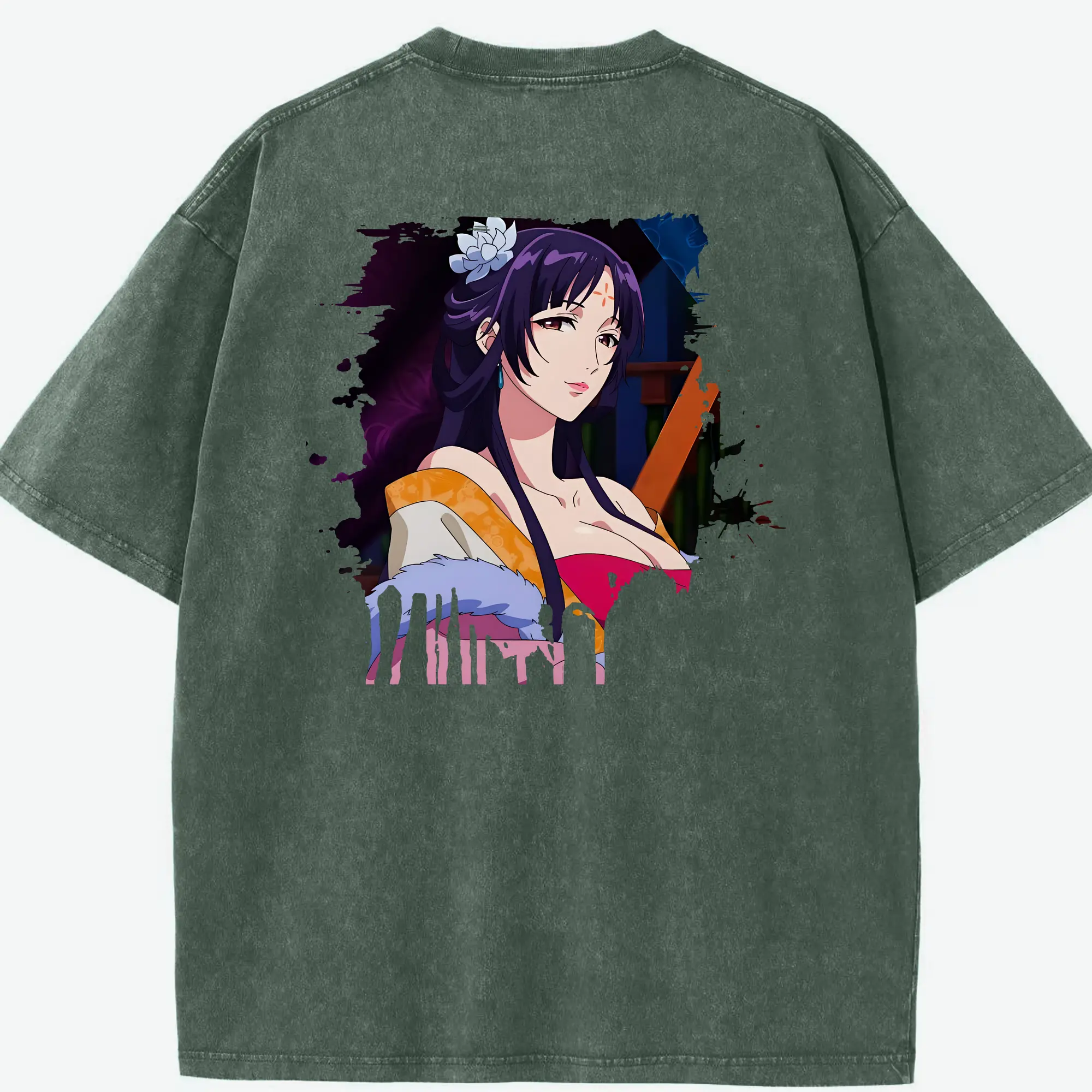 鳴潮 グッズ カンタレラ - 綿100% ヴィンテージ風 半袖Tシャツ ・ 背面プリント ・ 柔らか肌触り ・ 通気性 快適 ・ スポーツ カジュアル 外出用