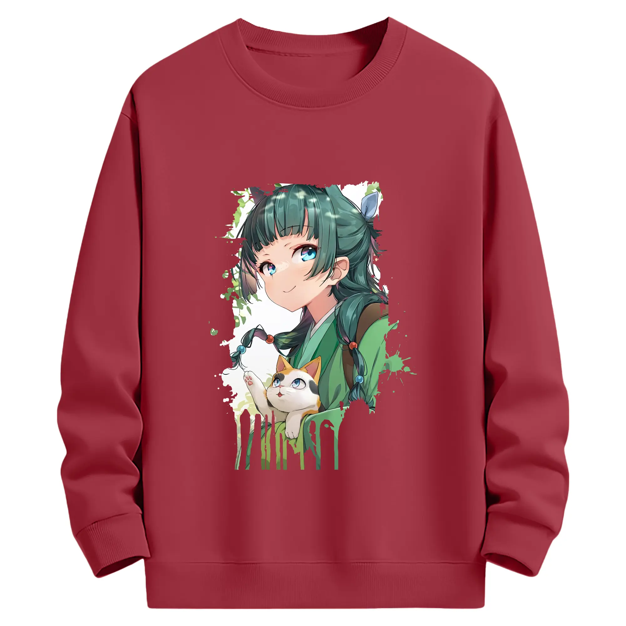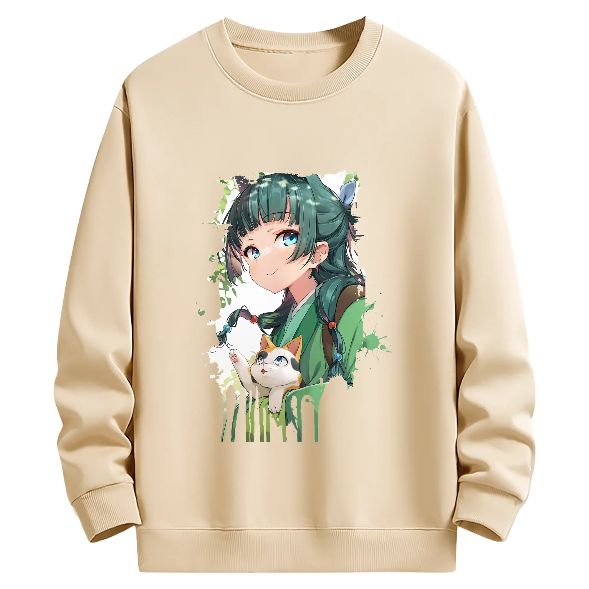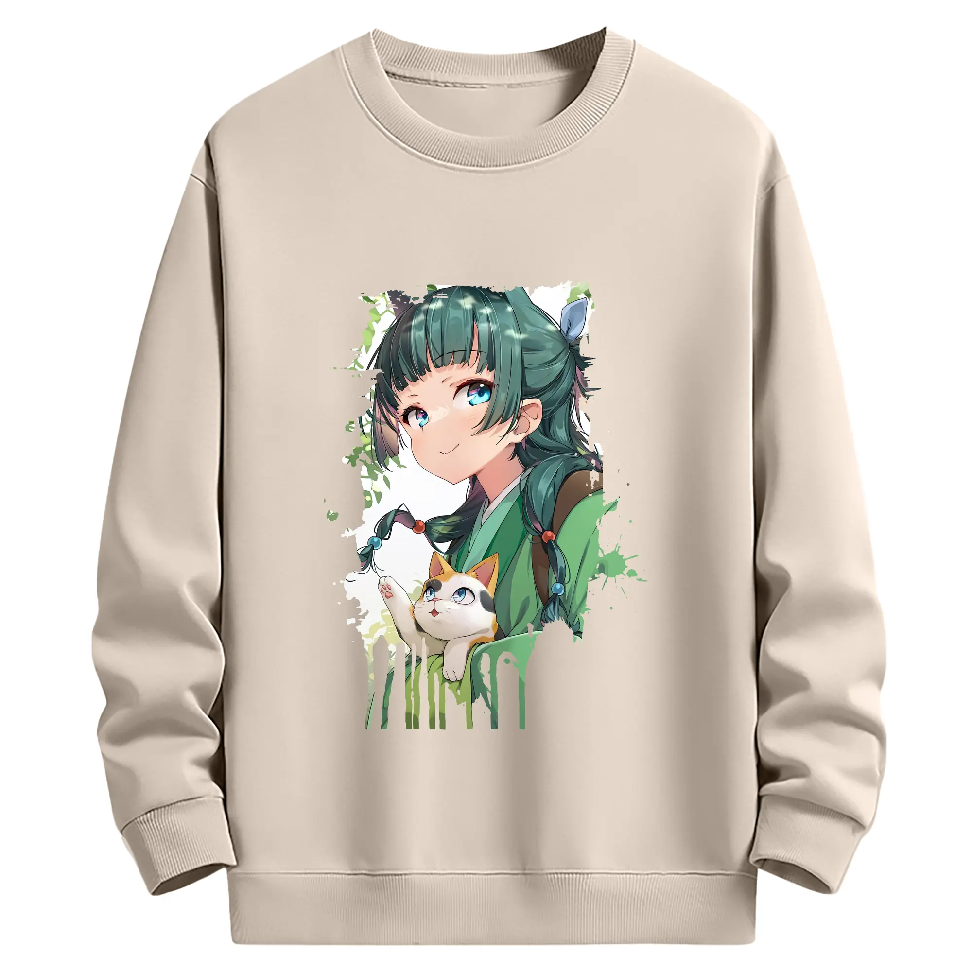 薬屋のひとりごと グッズ,猫猫 - 薄手 クルーネック スウェット 裏毛260g · ポリエステル 春秋向け カジュアル 男女兼用 · トレーナー デイリー スポーツ 散歩に最適