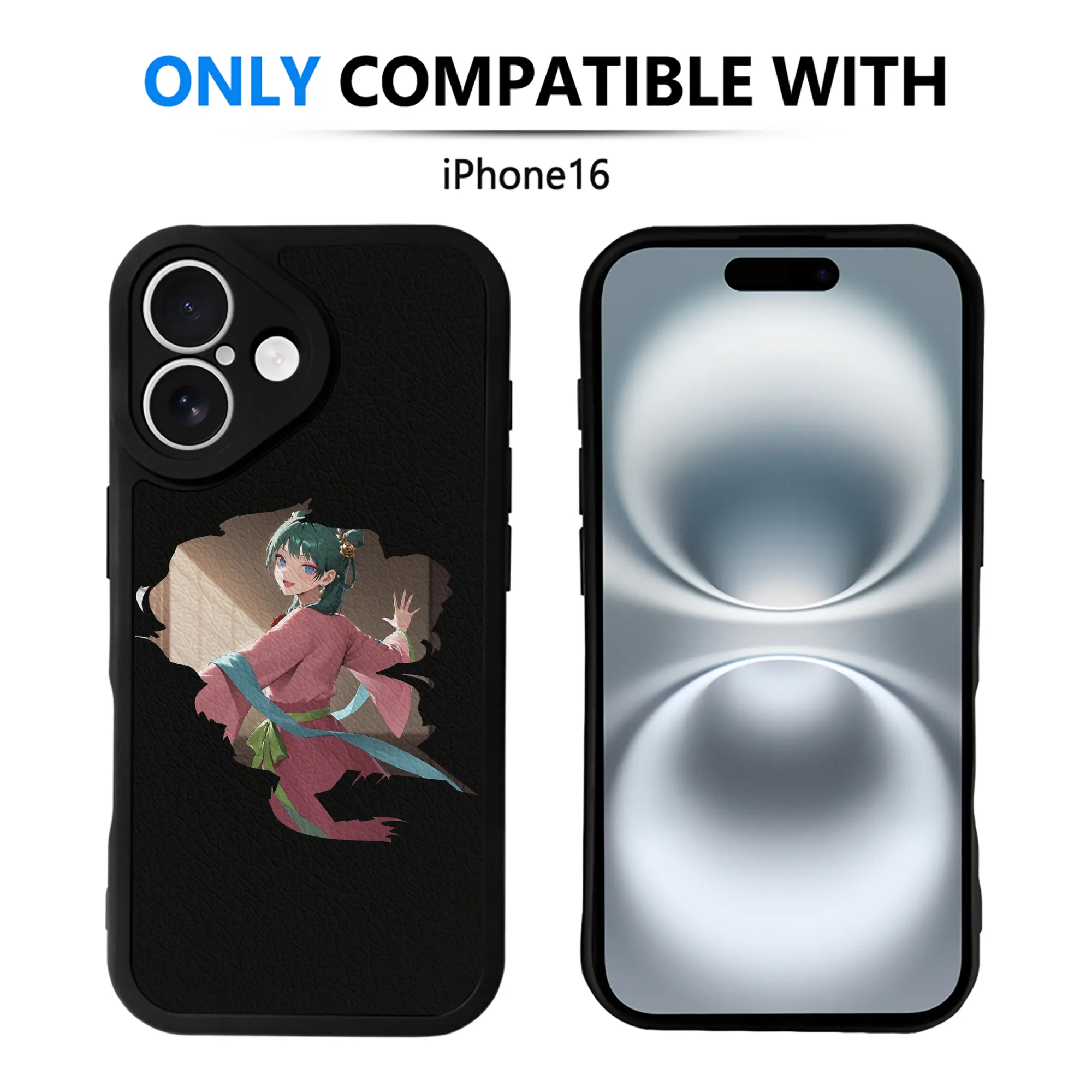 薬屋のひとりごと グッズ,猫猫 - IPhone 16シリーズ対応 ・ シリコンスマホケース ・ レザー調 ・ 高精度フィット ・ 耐衝撃 ・ ワイヤレス充電対応 ・ 精密カット
