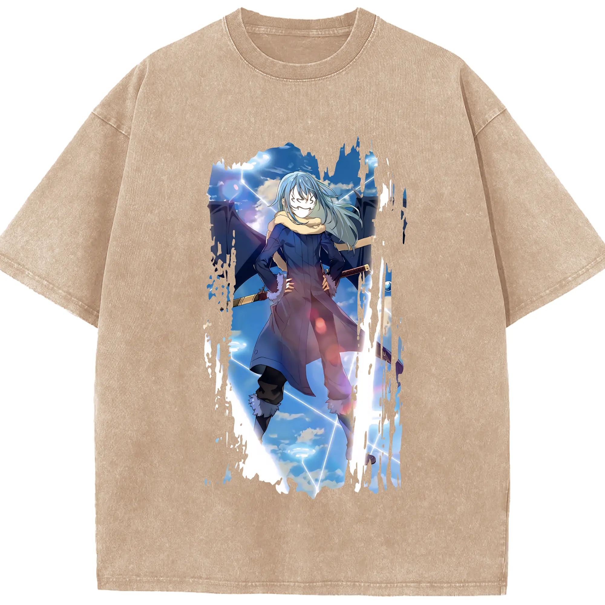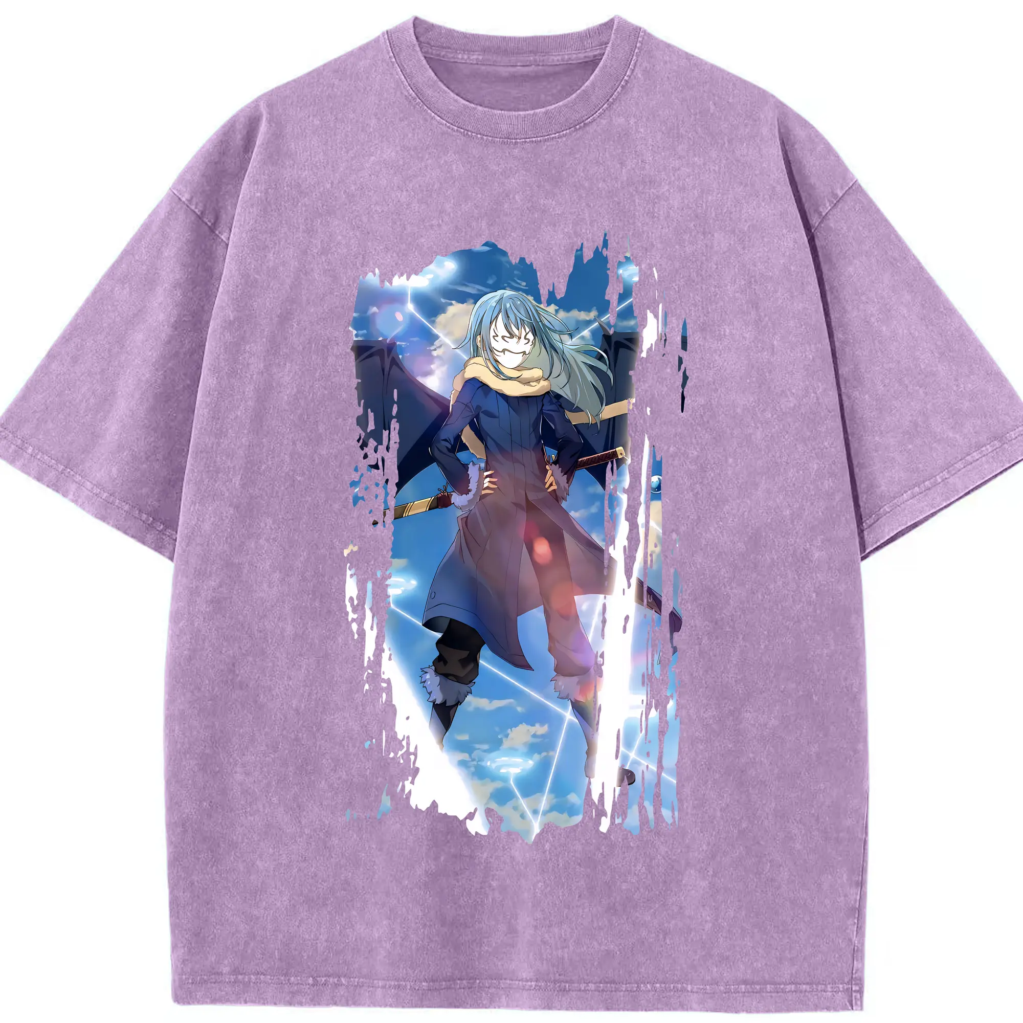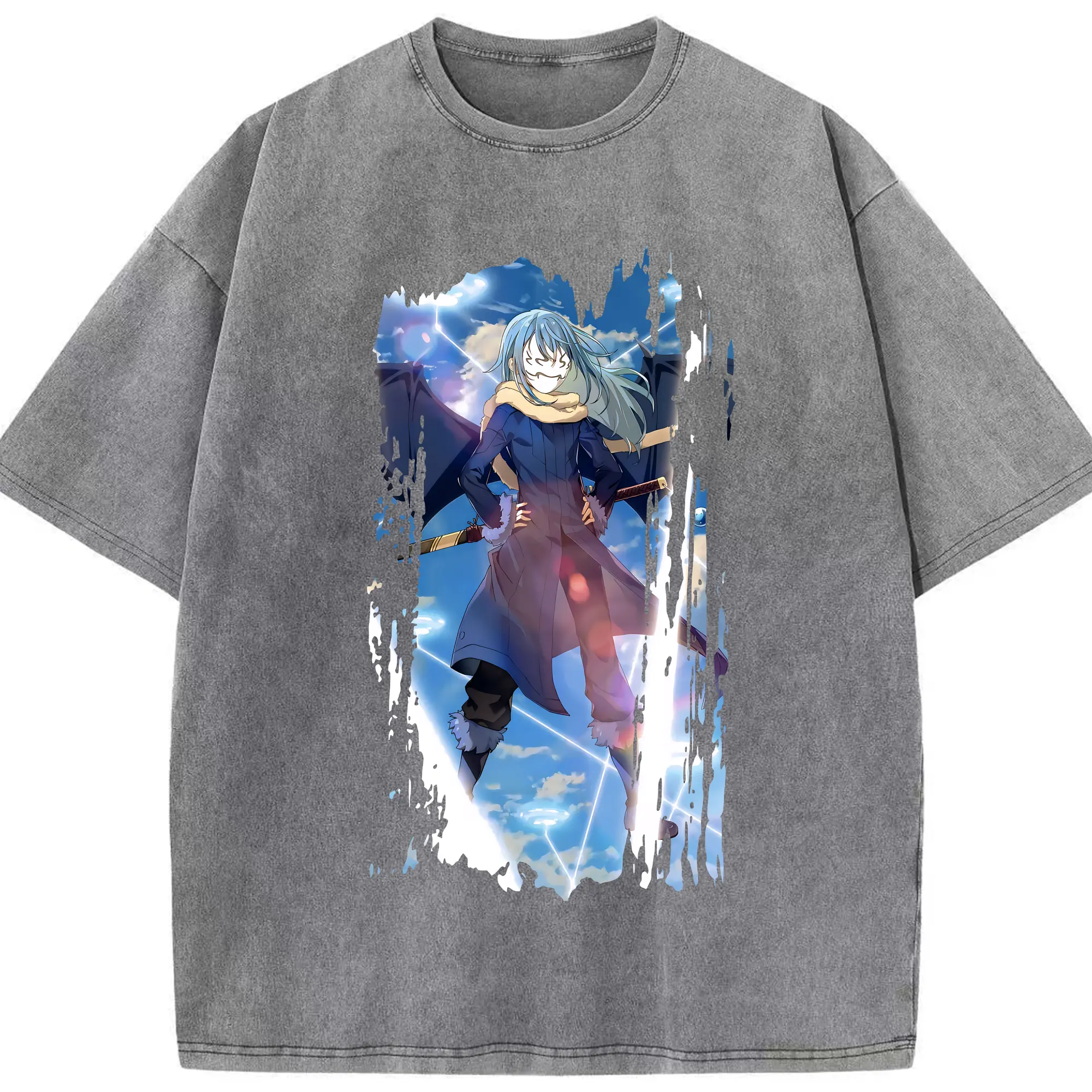 転生したらスライムだった件 グッズ,リムル・テンペスト - 綿100% ヴィンテージ風 半袖Tシャツ ・ 背面プリント ・ 柔らか肌触り ・ 通気性 快適 ・ スポーツ カジュアル 外出用