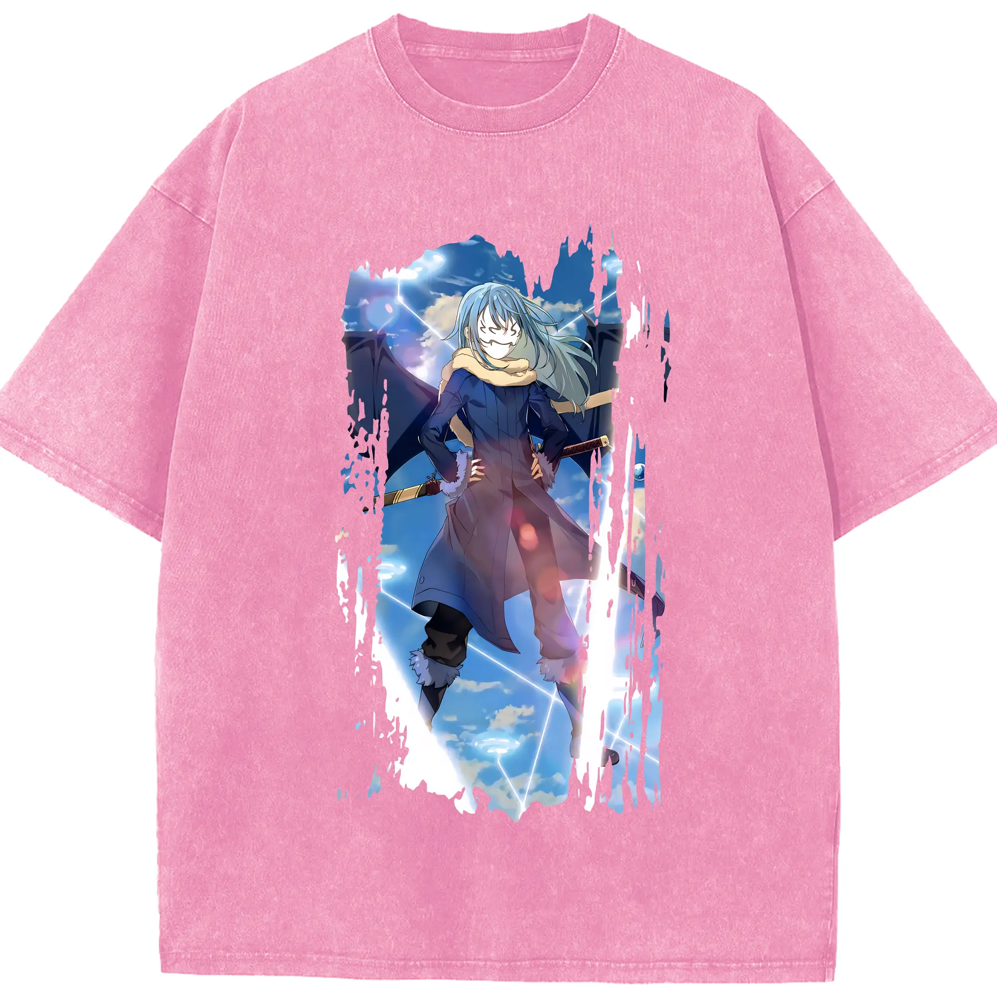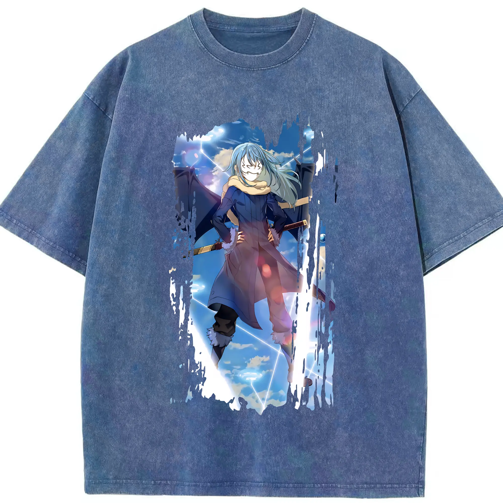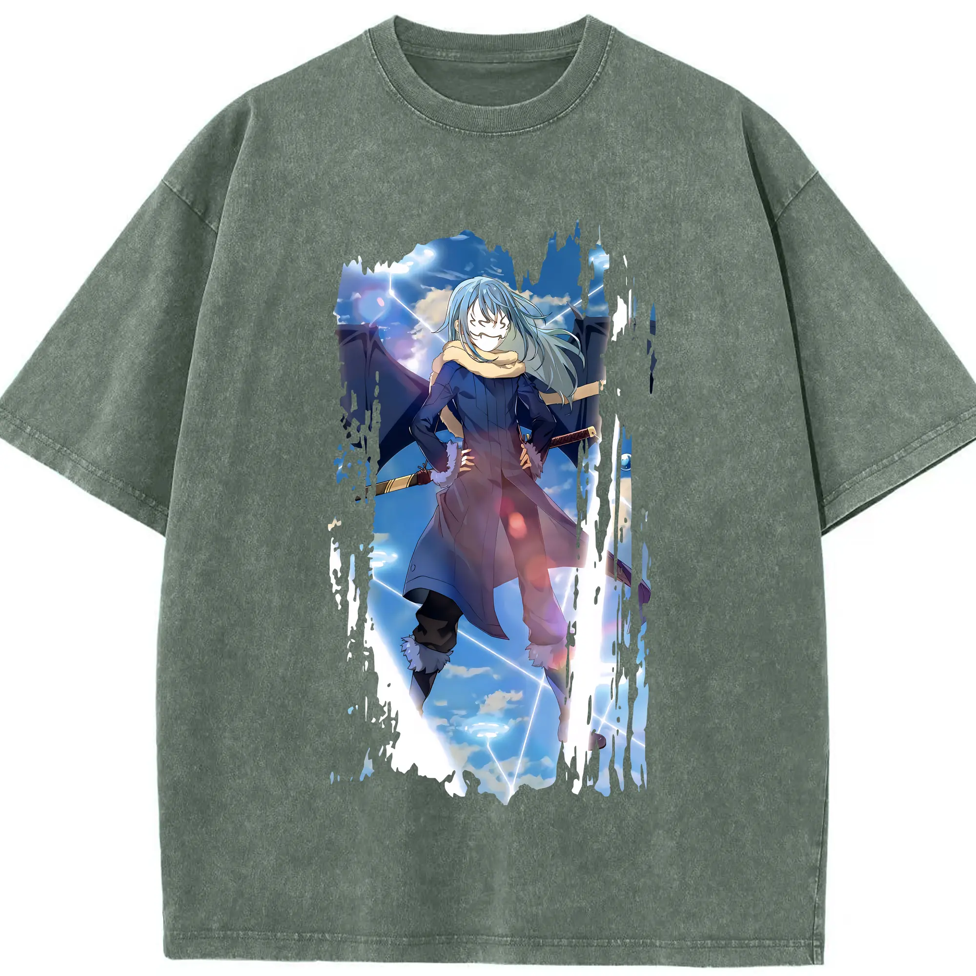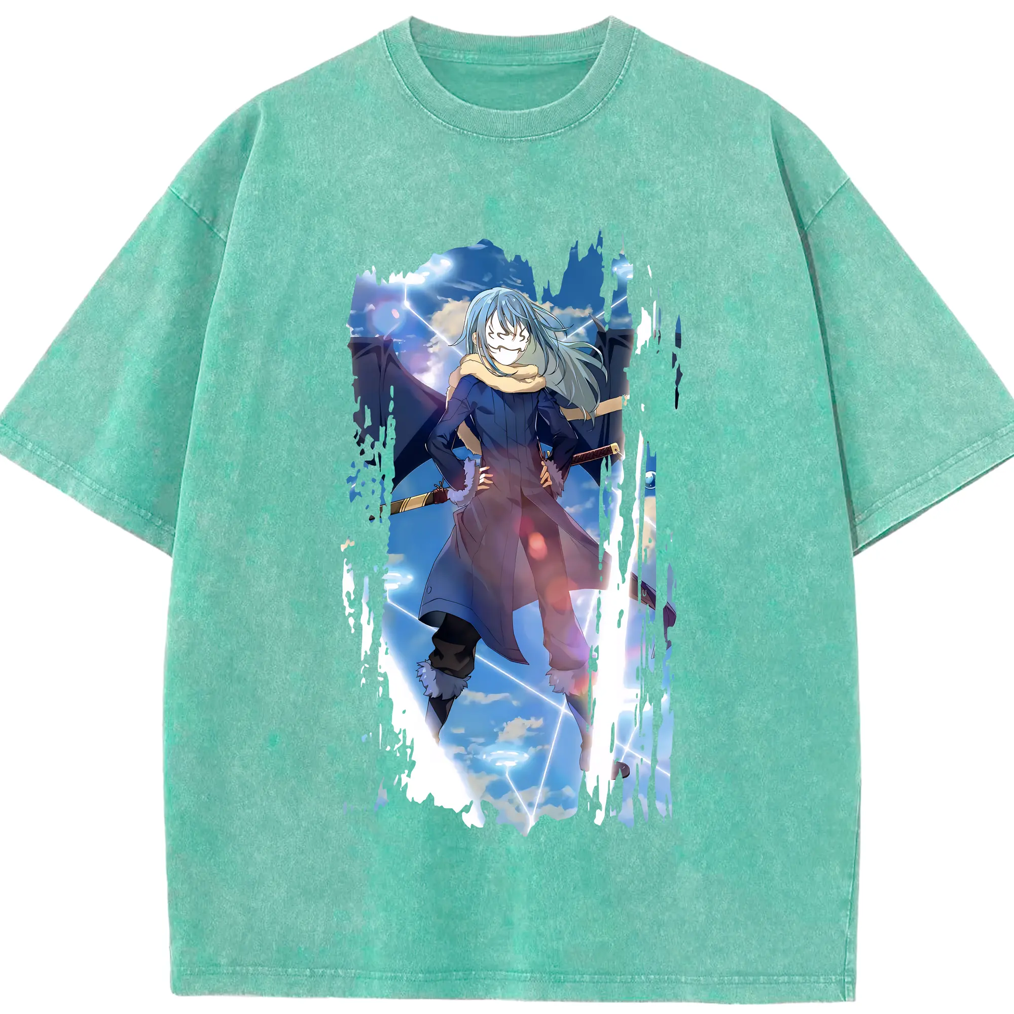 転生したらスライムだった件 グッズ,リムル・テンペスト - 綿100% ヴィンテージ風 半袖Tシャツ ・ 背面プリント ・ 柔らか肌触り ・ 通気性 快適 ・ スポーツ カジュアル 外出用