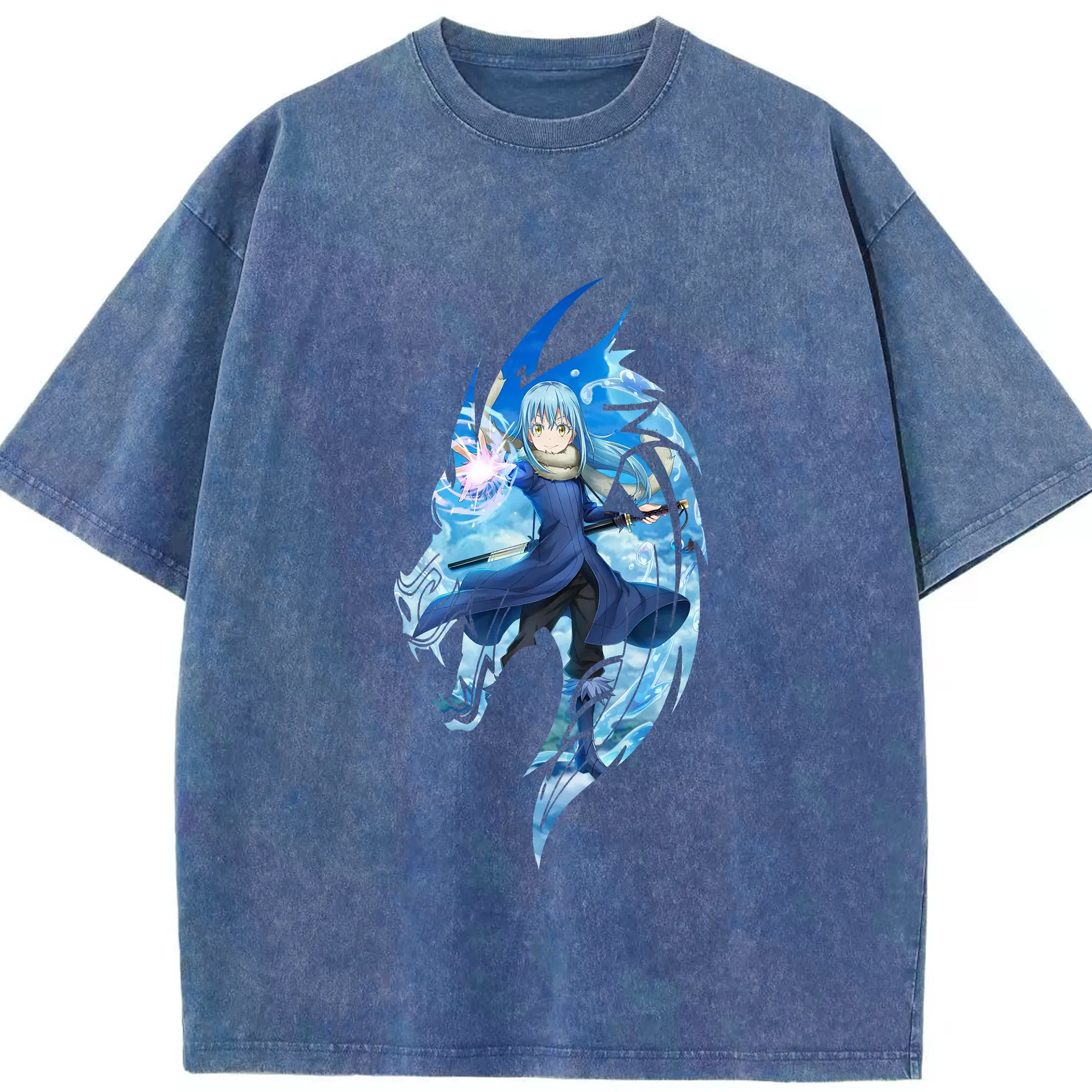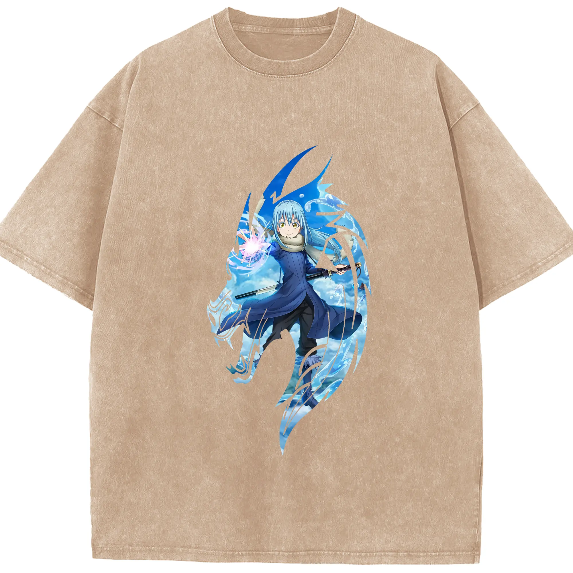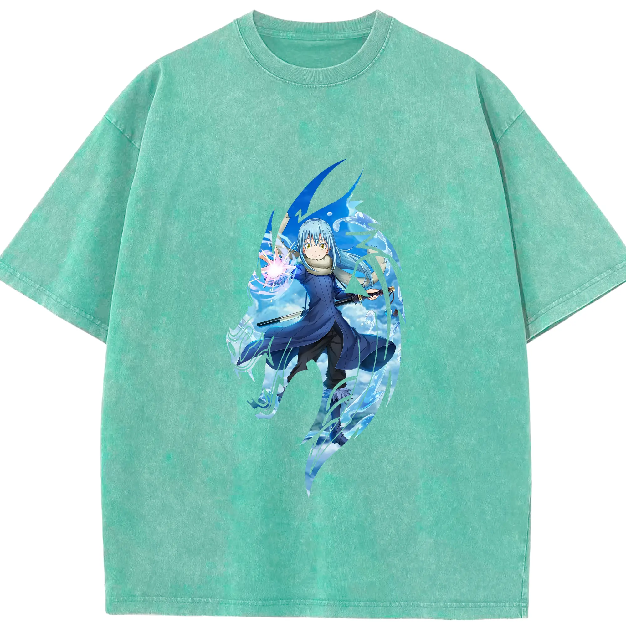 転生したらスライムだった件 グッズ,リムル・テンペスト - 綿100% ヴィンテージ風 半袖Tシャツ ・ 背面プリント ・ 柔らか肌触り ・ 通気性 快適 ・ スポーツ カジュアル 外出用