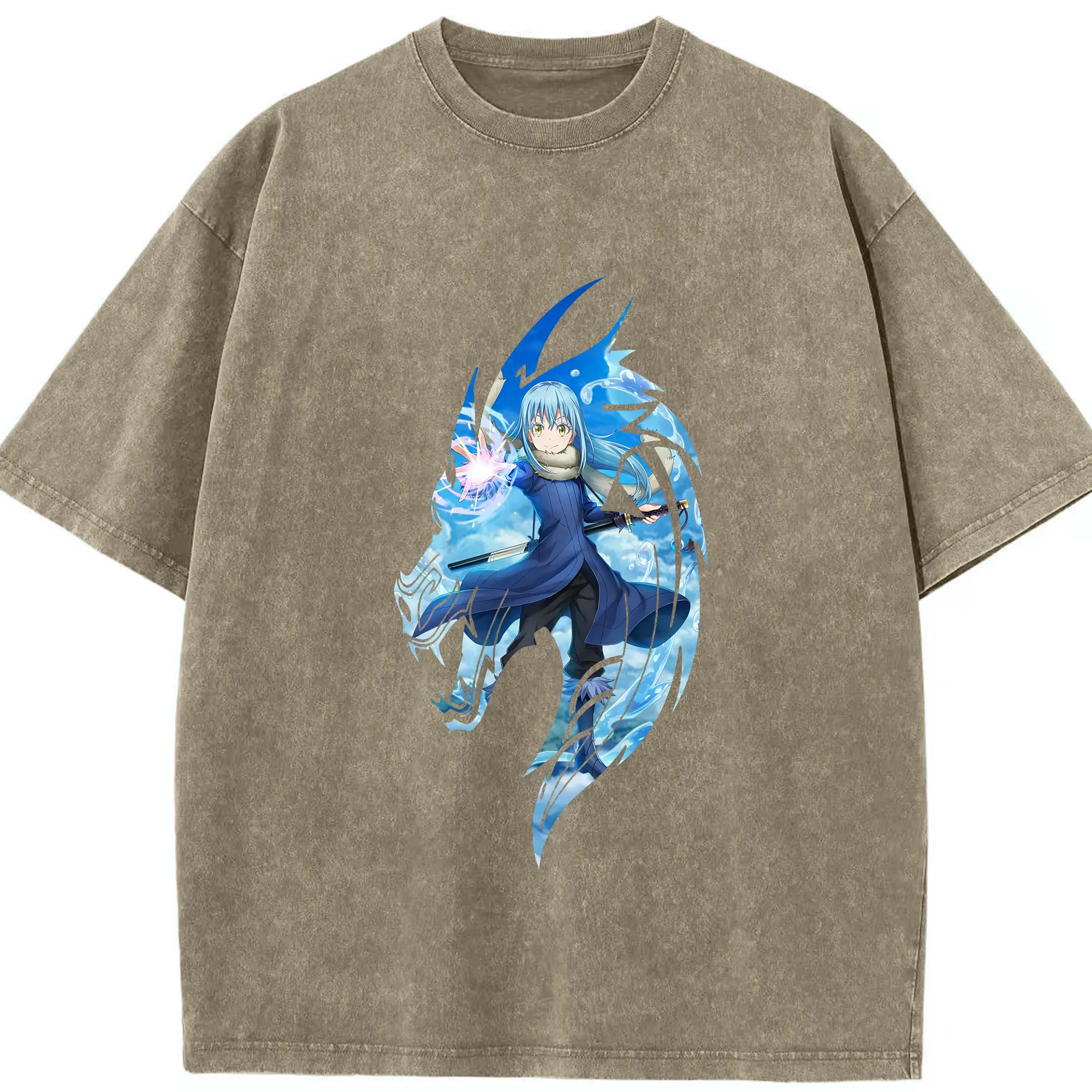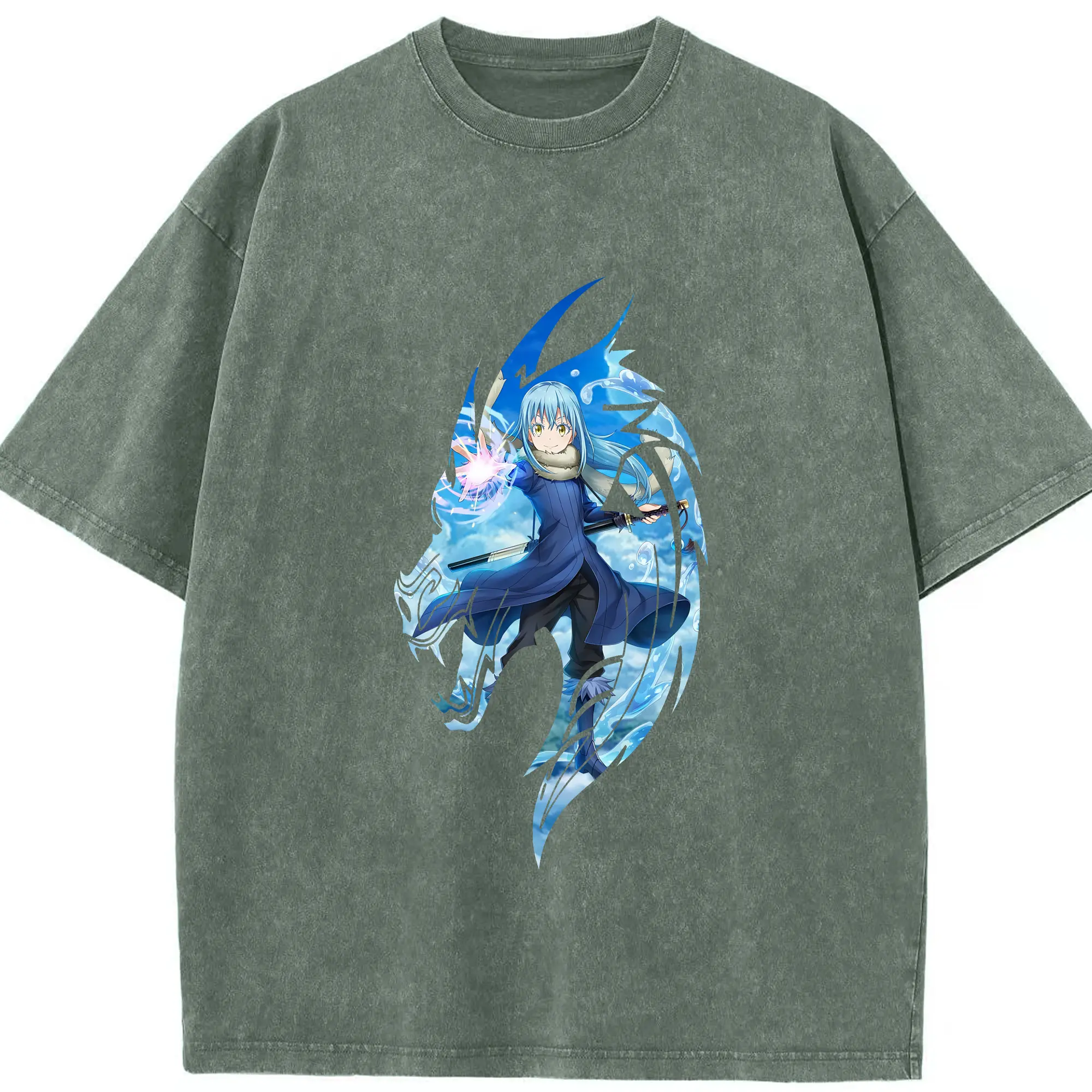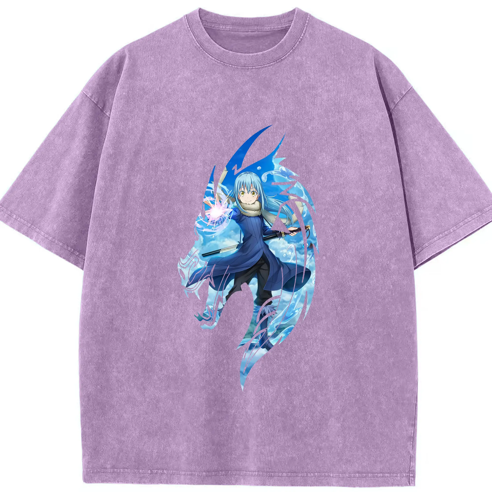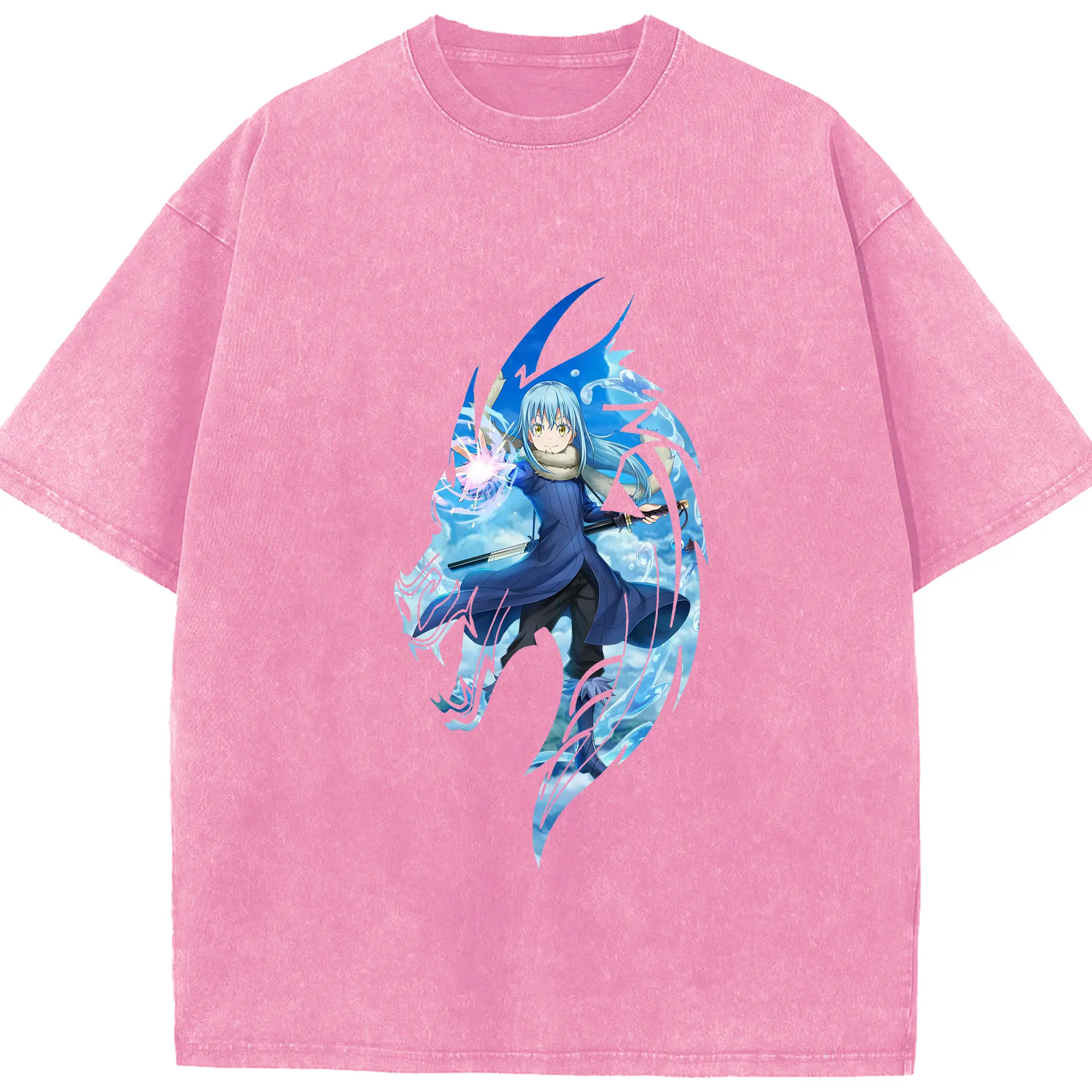 転生したらスライムだった件 グッズ,リムル・テンペスト - 綿100% ヴィンテージ風 半袖Tシャツ ・ 背面プリント ・ 柔らか肌触り ・ 通気性 快適 ・ スポーツ カジュアル 外出用