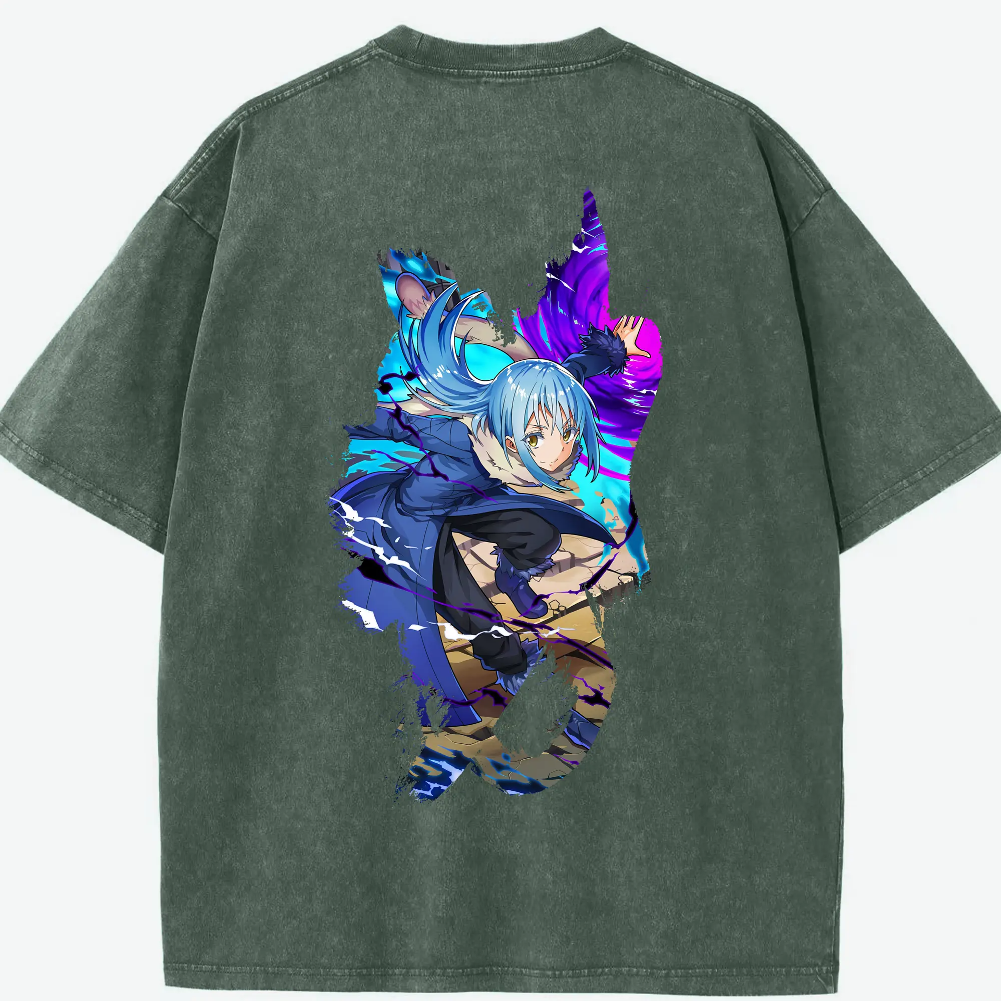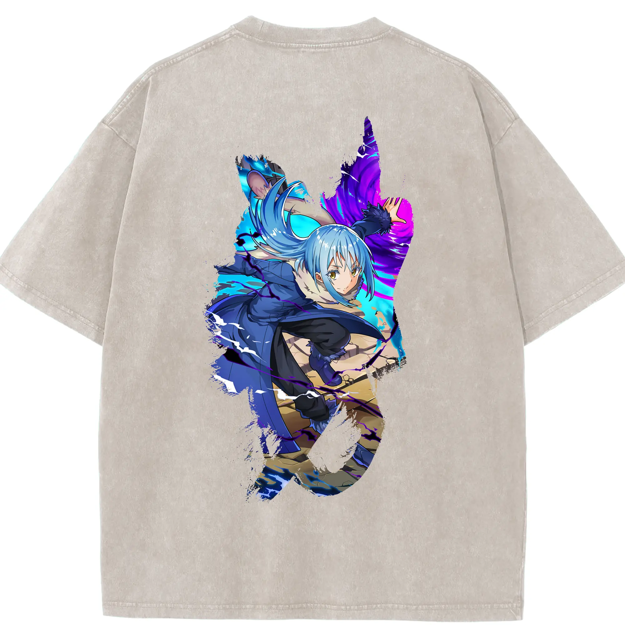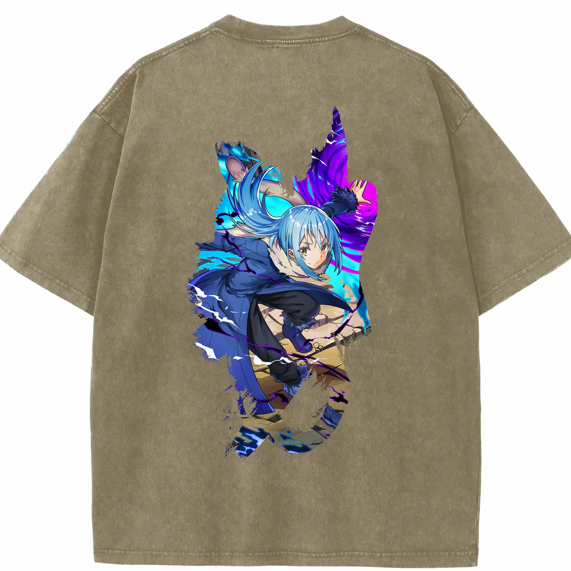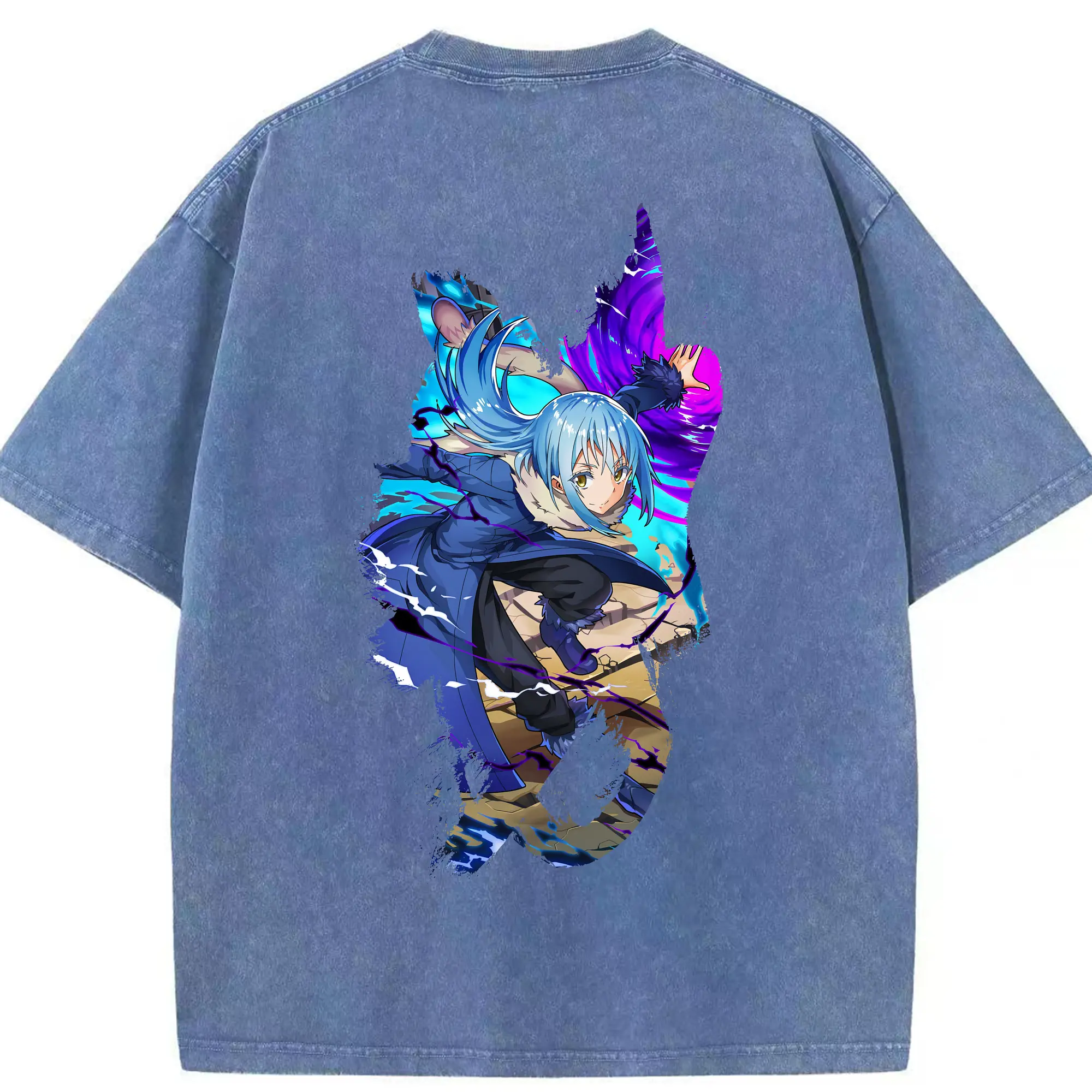 転生したらスライムだった件 グッズ,リムル・テンペスト - 綿100% ヴィンテージ風 半袖Tシャツ ・ フロントプリント ・ 柔らか肌触り ・ 通気性 快適 ・ スポーツ カジュアル 外出用