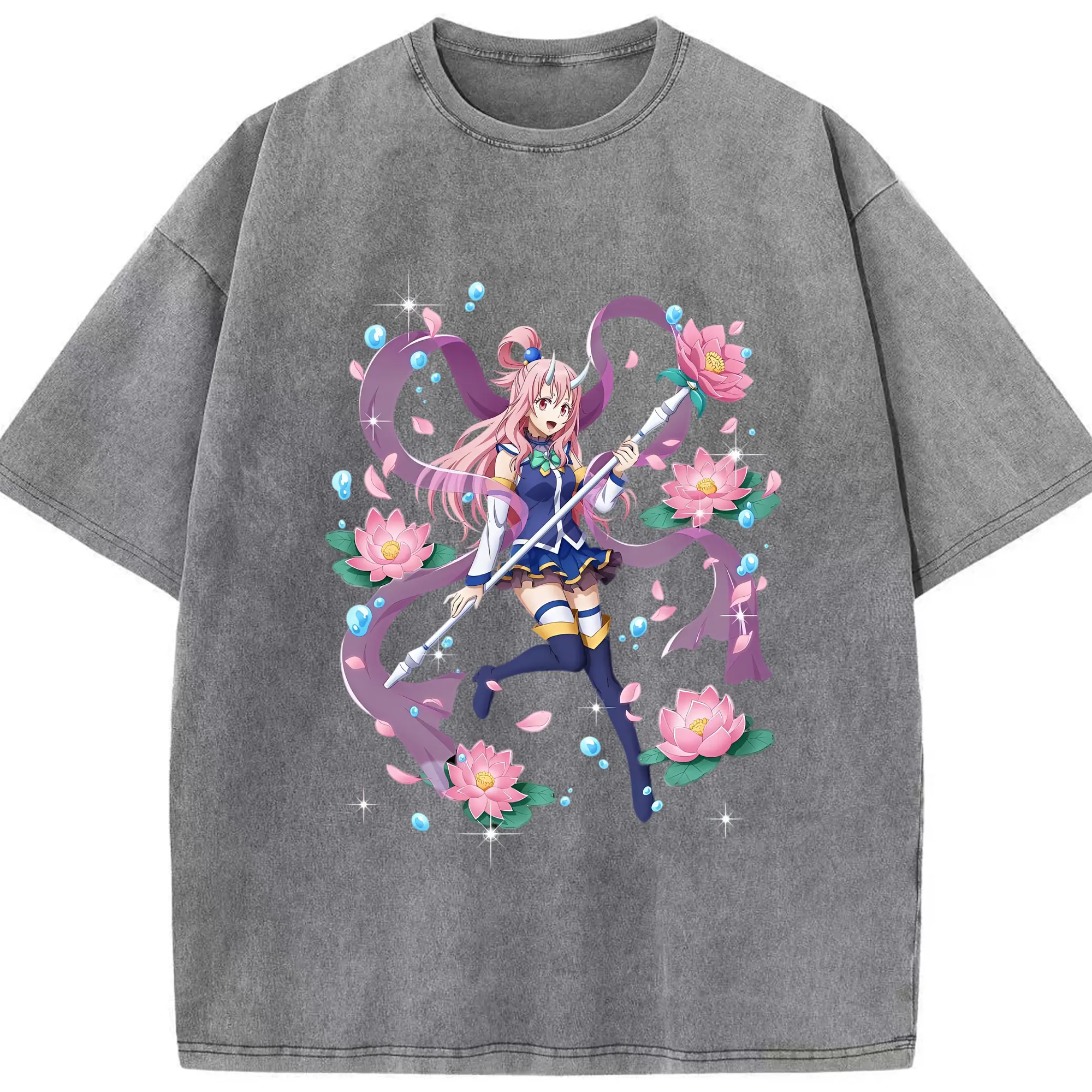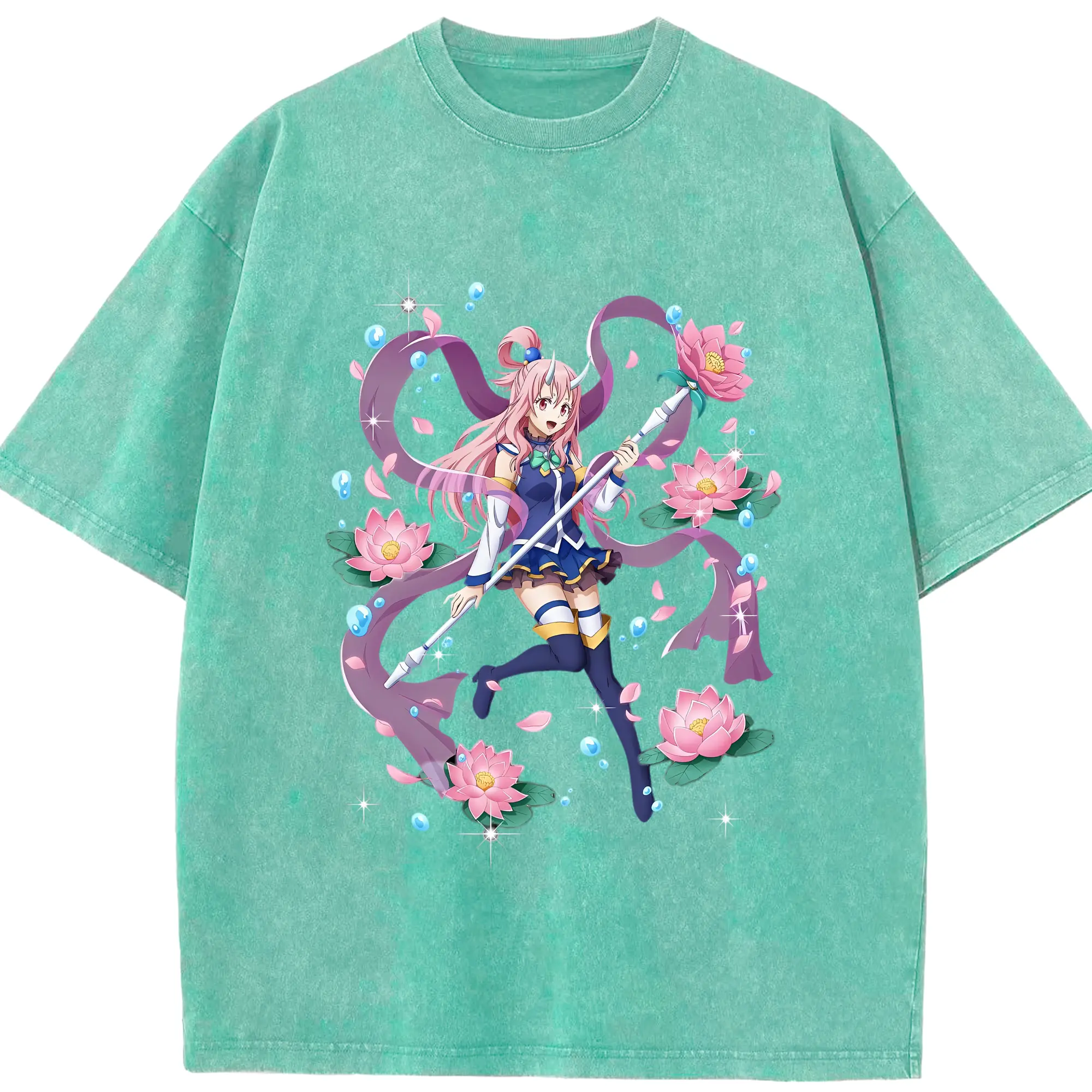 転生したらスライムだった件 グッズ,シュナ - 綿100% ヴィンテージ風 半袖Tシャツ ・ 背面プリント ・ 柔らか肌触り ・ 通気性 快適 ・ スポーツ カジュアル 外出用