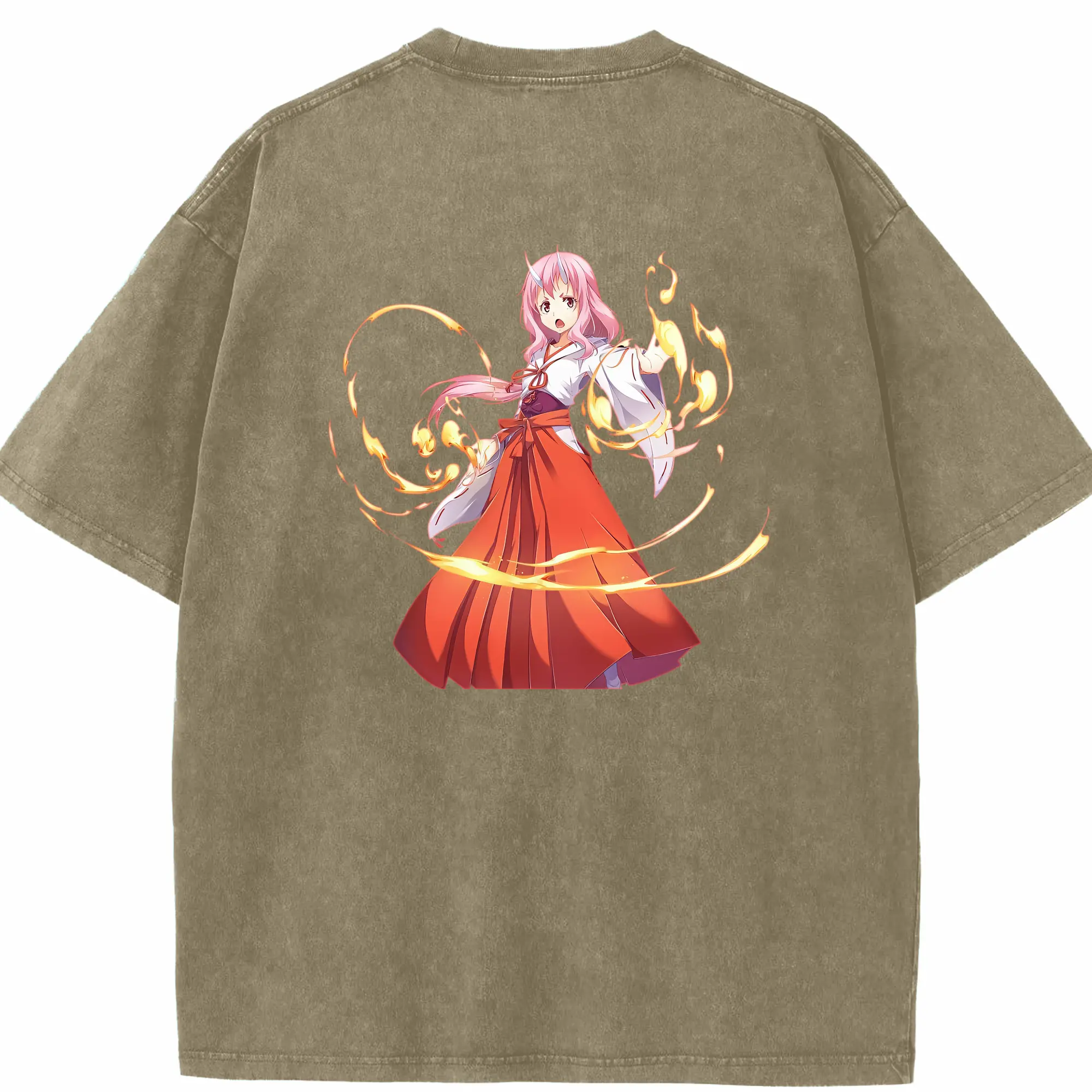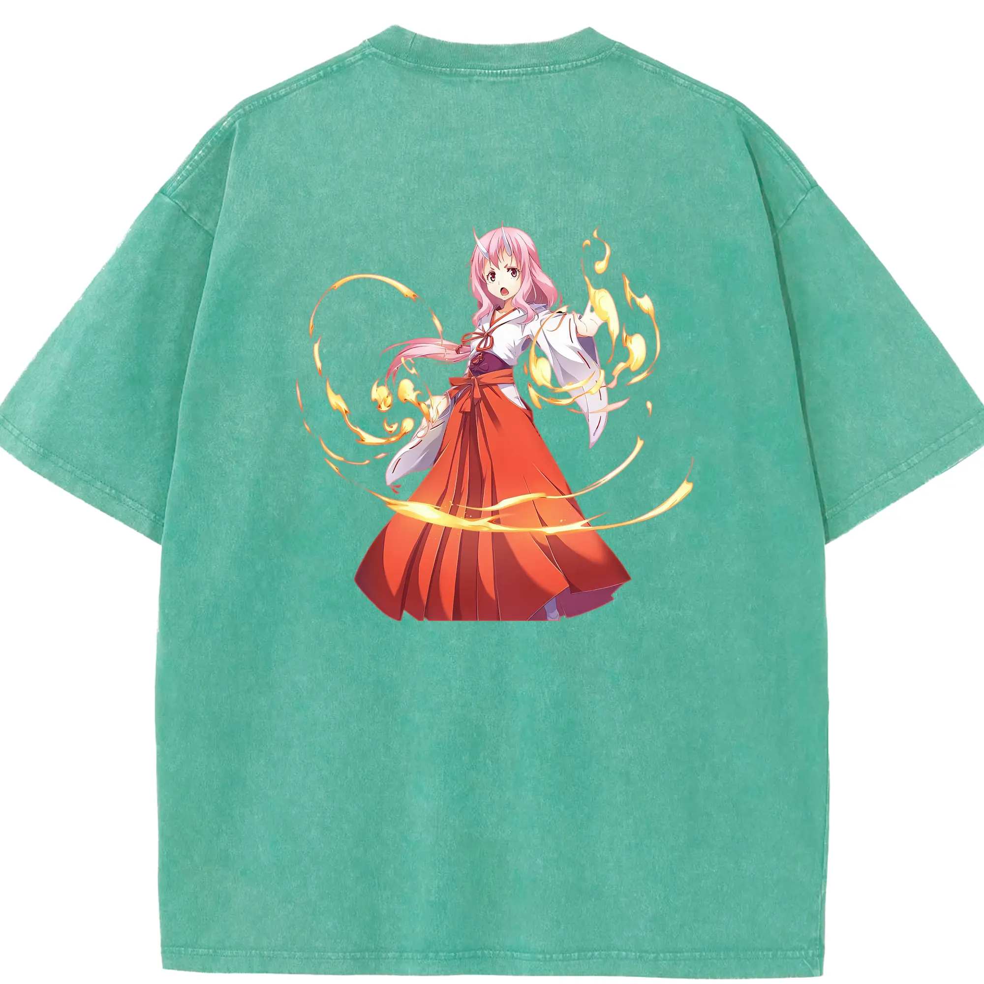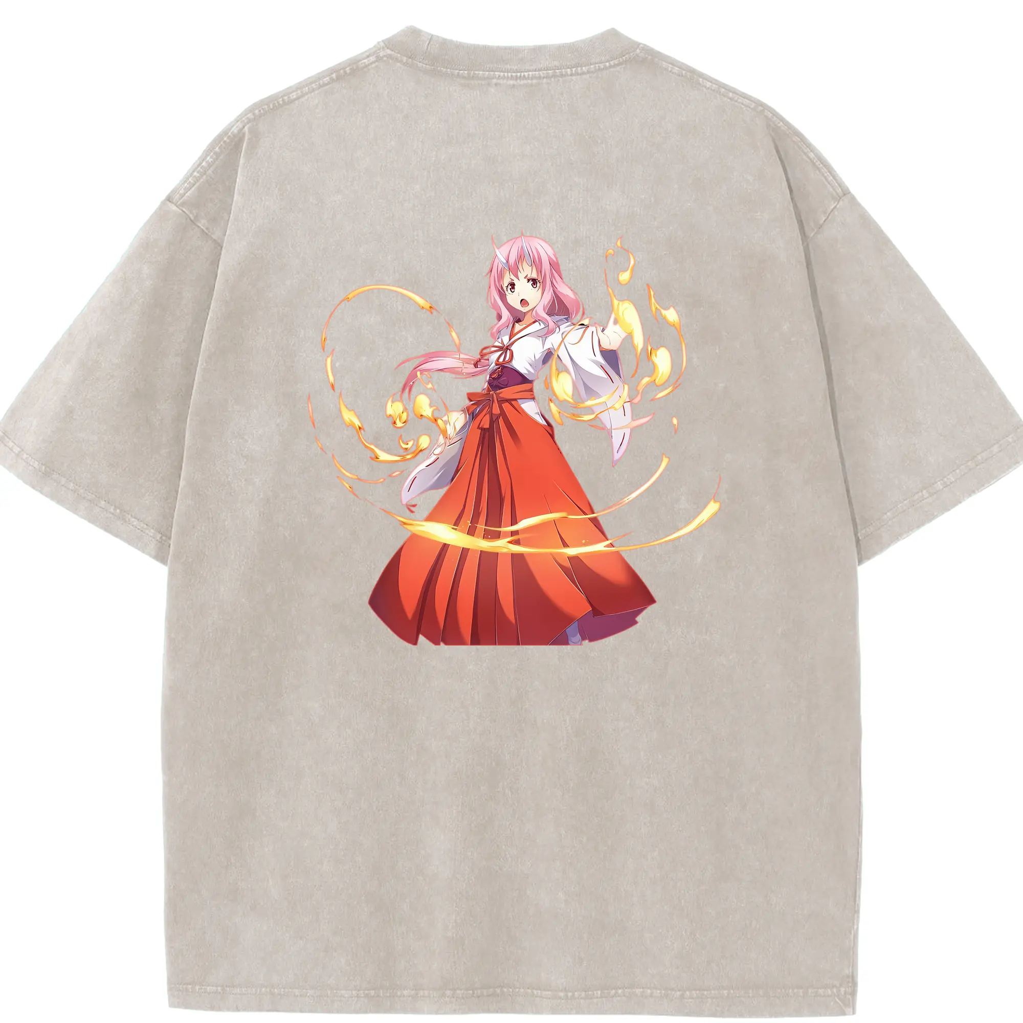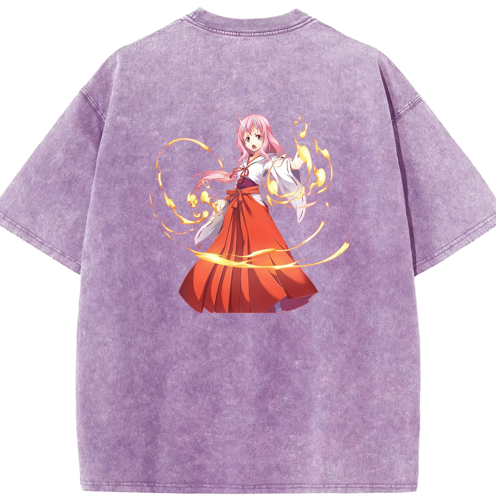 転生したらスライムだった件 グッズ,シュナ - 綿100% ヴィンテージ風 半袖Tシャツ ・ フロントプリント ・ 柔らか肌触り ・ 通気性 快適 ・ スポーツ カジュアル 外出用