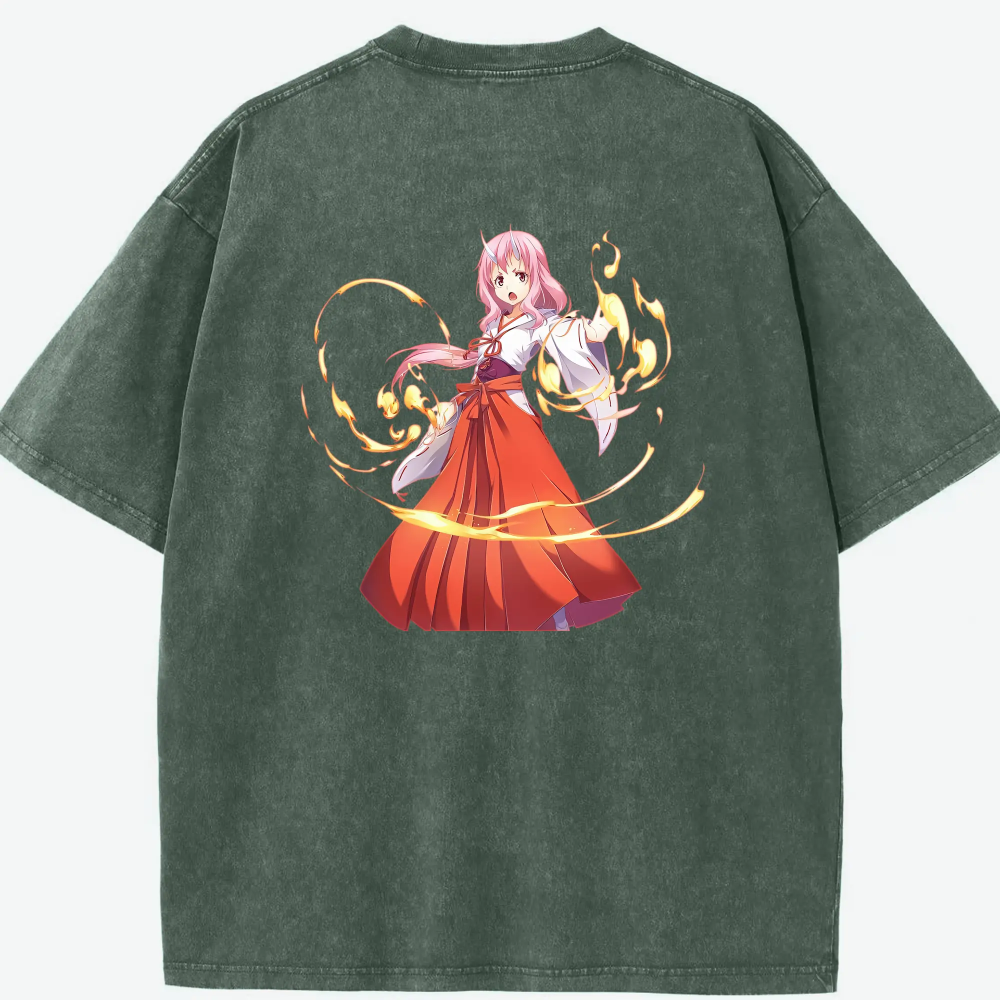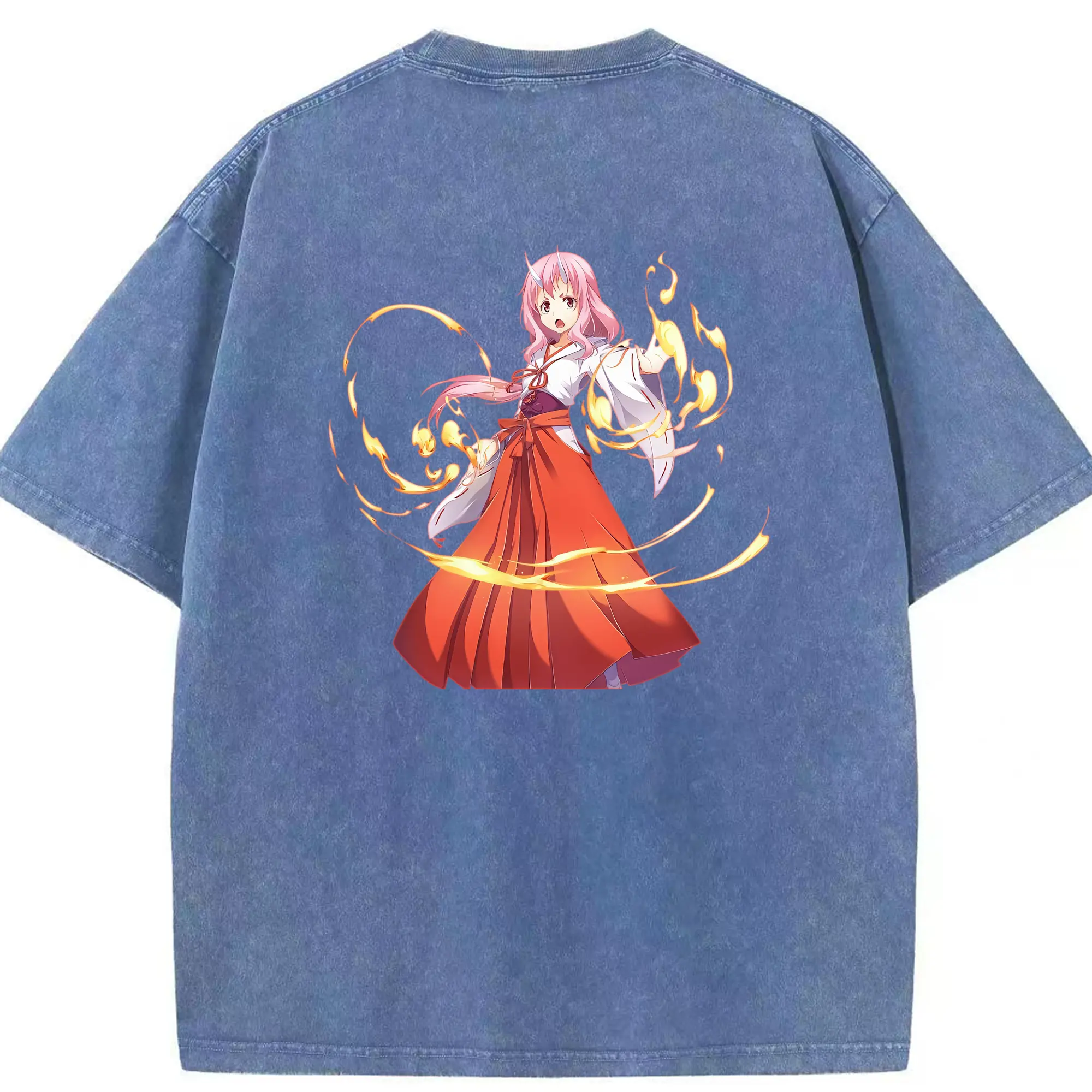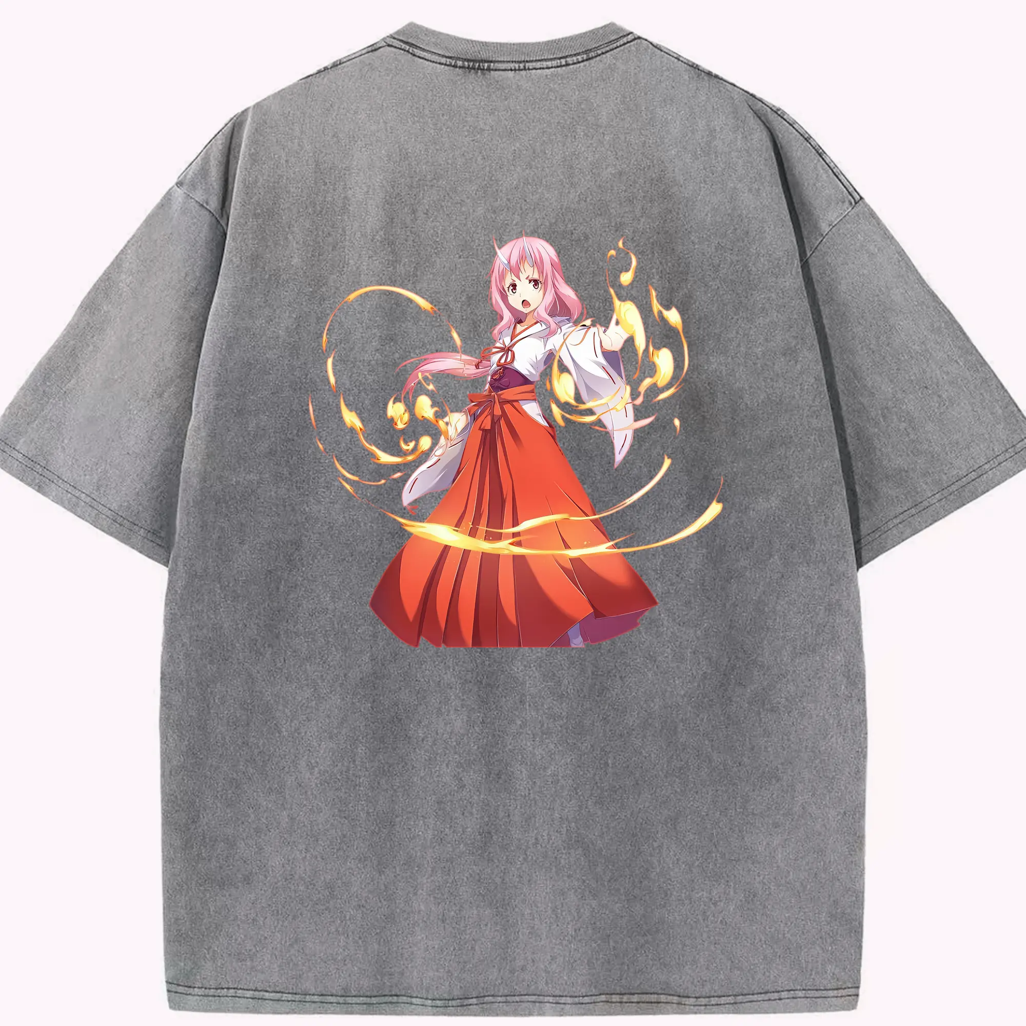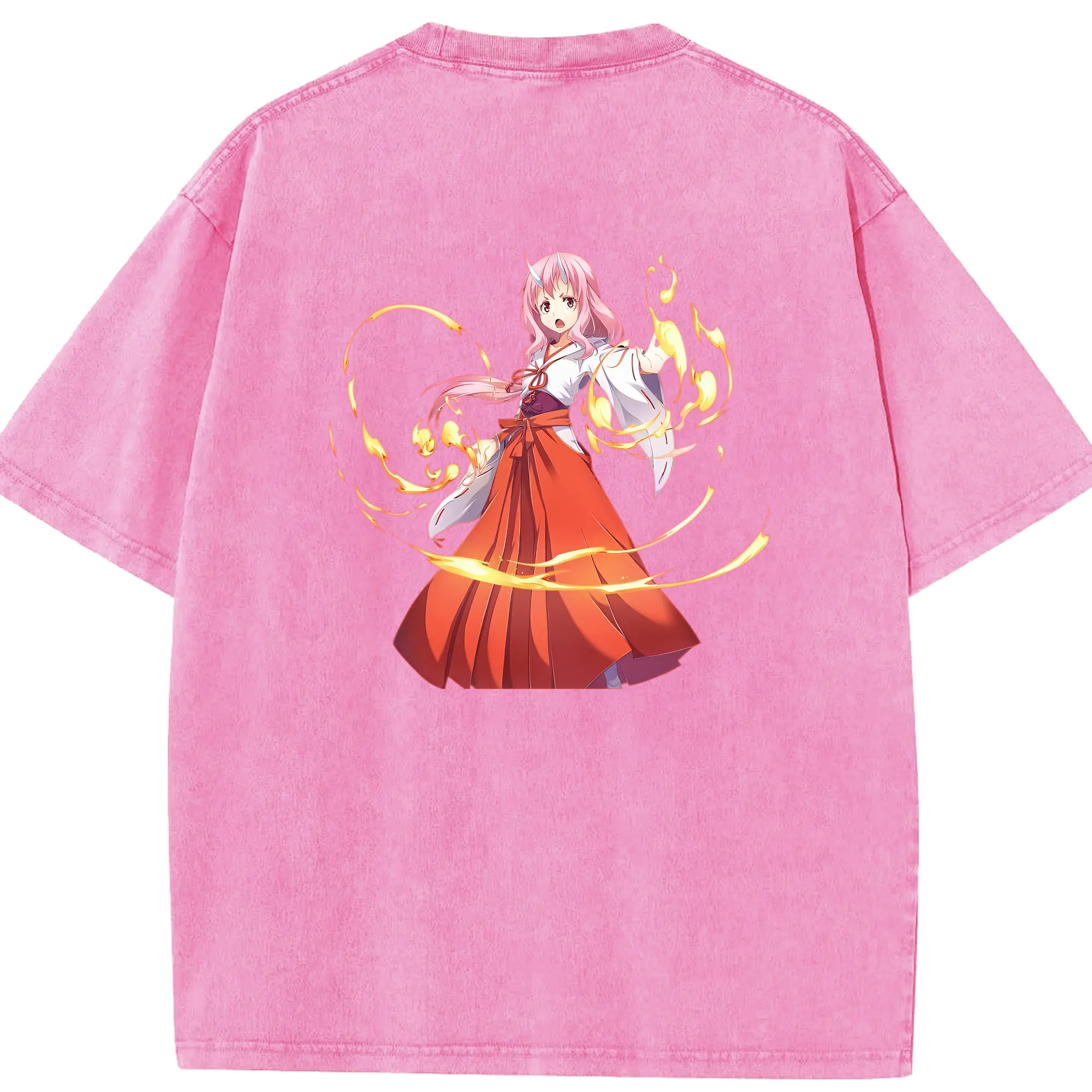 転生したらスライムだった件 グッズ,シュナ - 綿100% ヴィンテージ風 半袖Tシャツ ・ フロントプリント ・ 柔らか肌触り ・ 通気性 快適 ・ スポーツ カジュアル 外出用