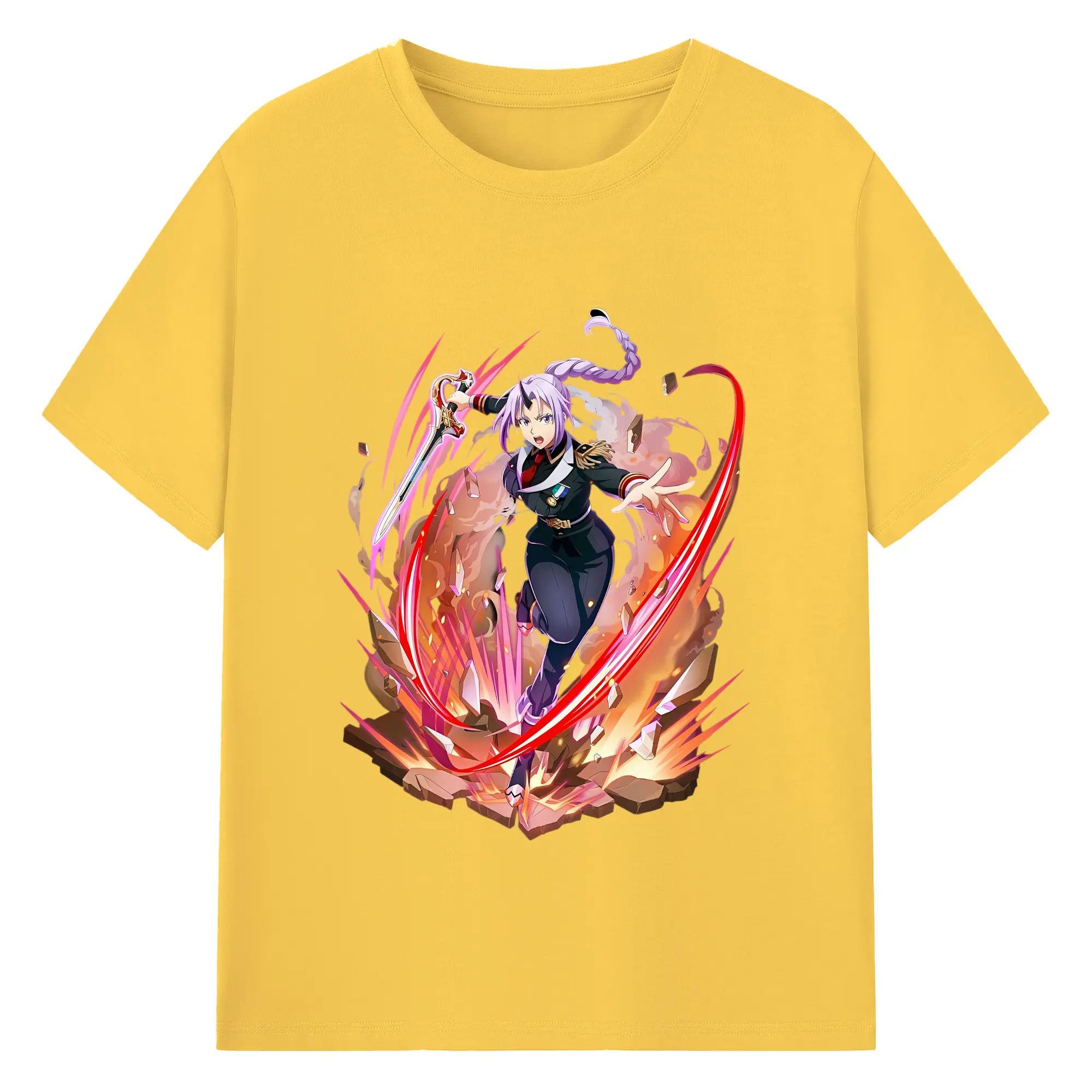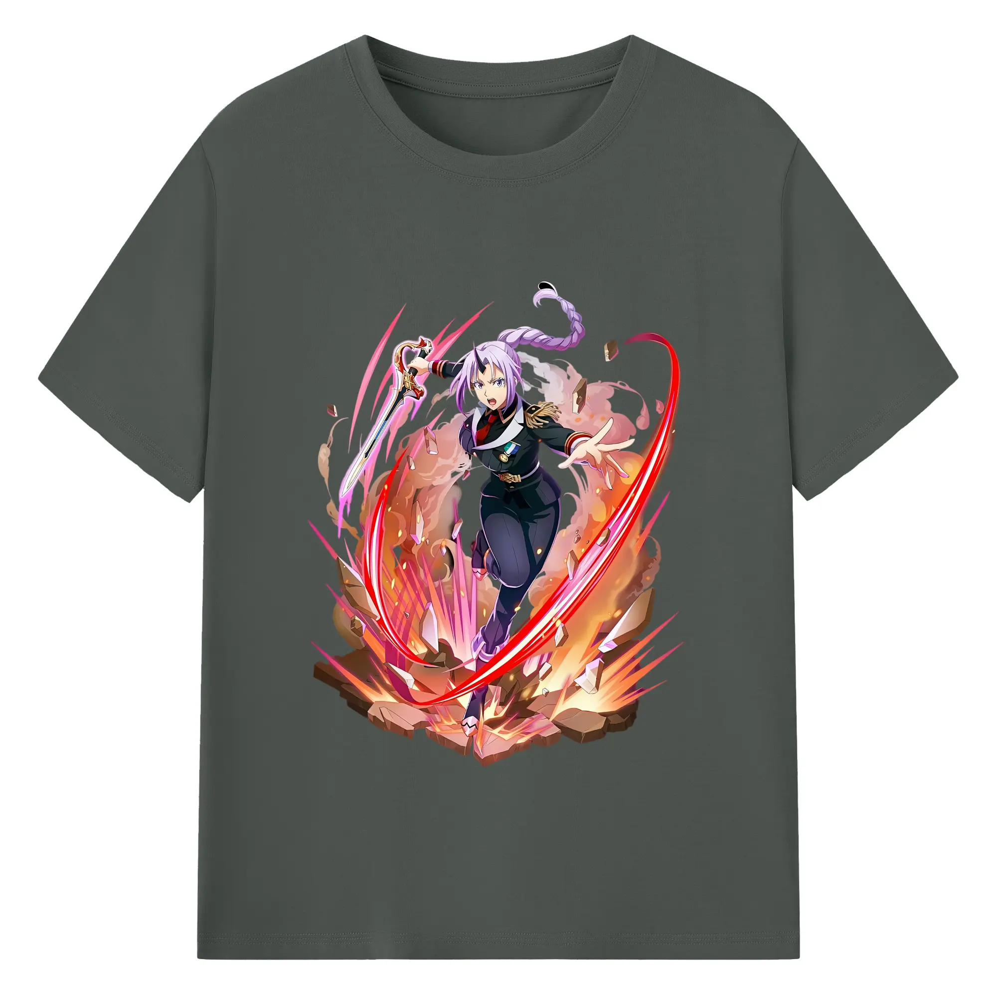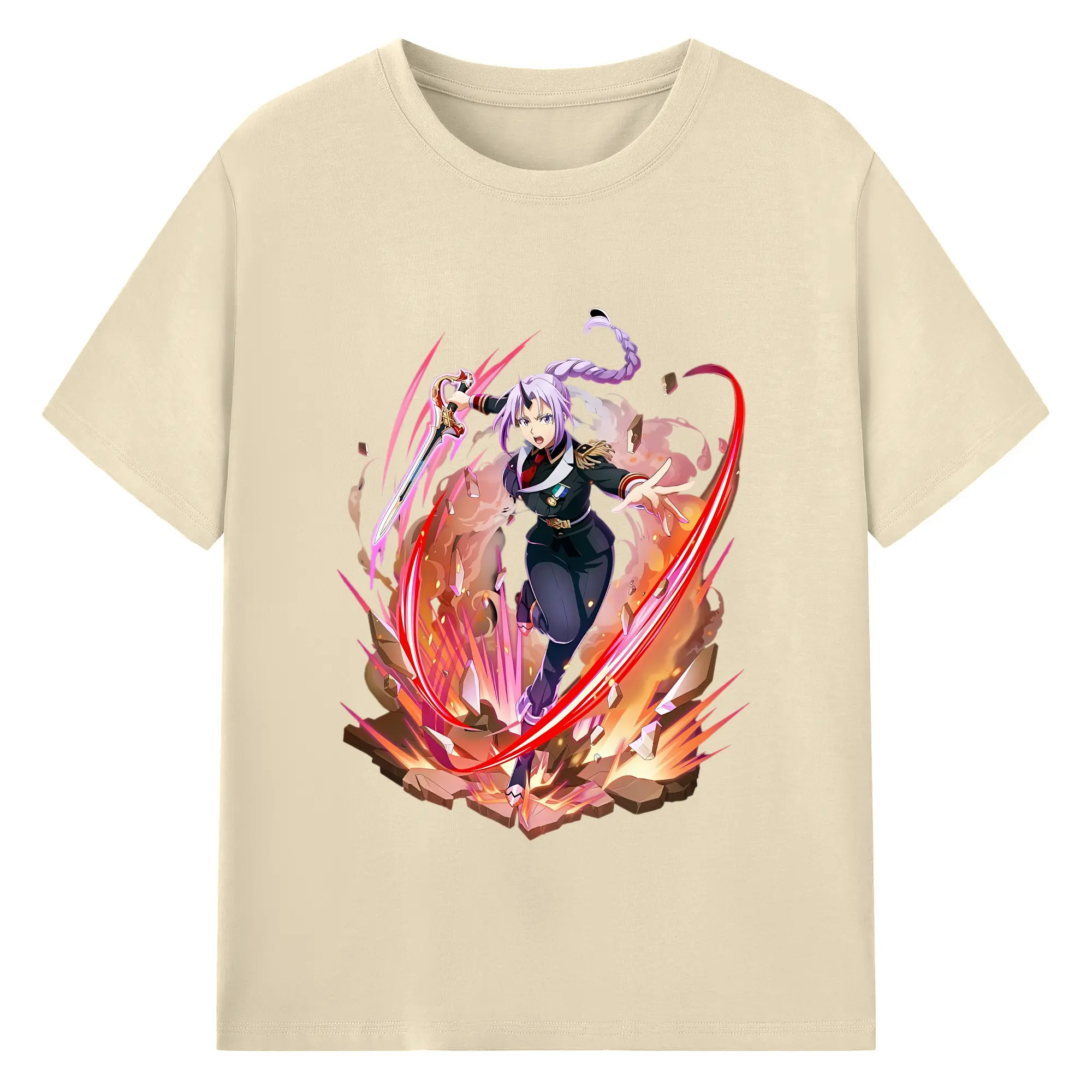転生したらスライムだった件 グッズ,シオン - 綿100% ヴィンテージ風 半袖Tシャツ ・ フロントプリント ・ 柔らか肌触り ・ 通気性 快適 ・ スポーツ カジュアル 外出用