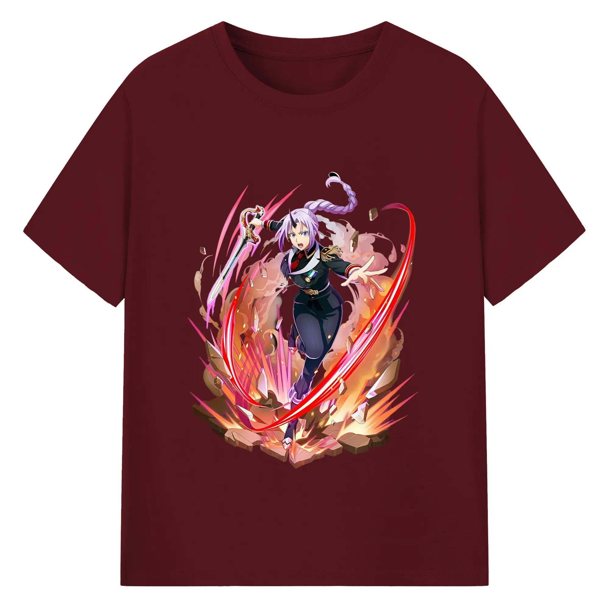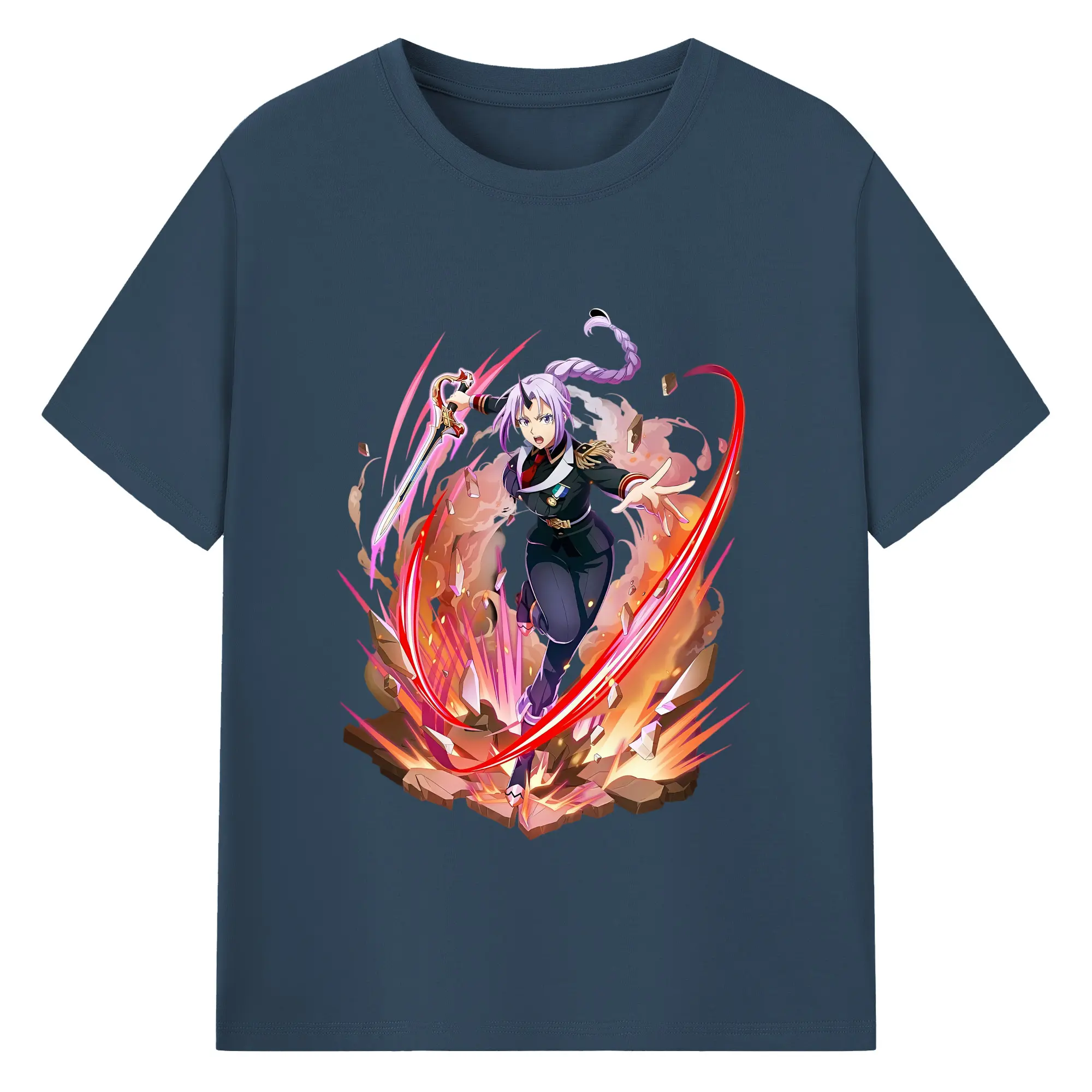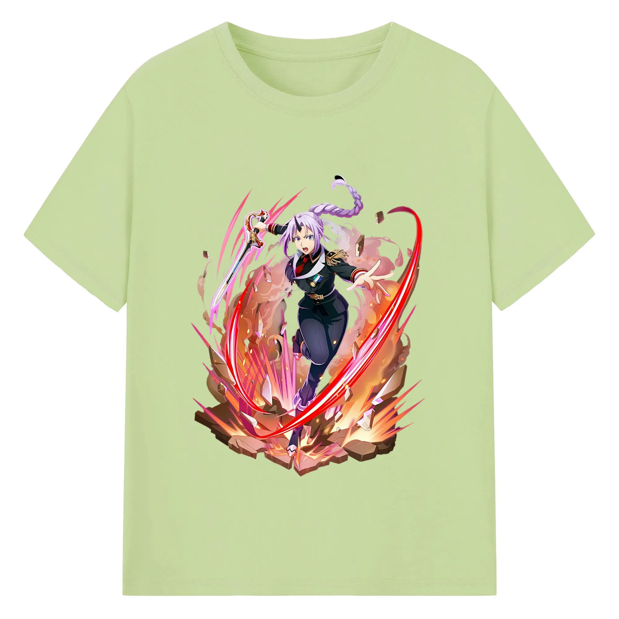 転生したらスライムだった件 グッズ,シオン - 綿100% ヴィンテージ風 半袖Tシャツ ・ フロントプリント ・ 柔らか肌触り ・ 通気性 快適 ・ スポーツ カジュアル 外出用