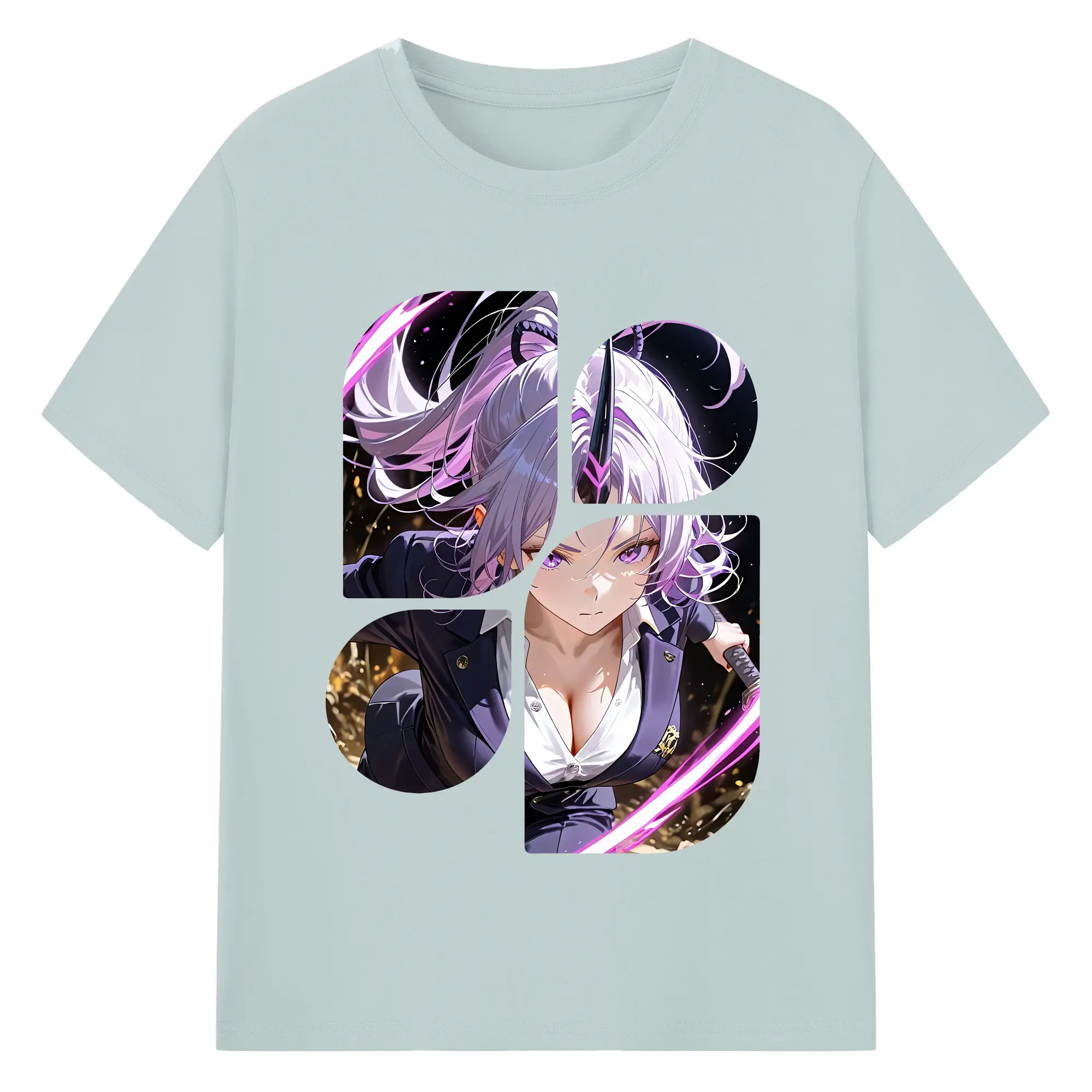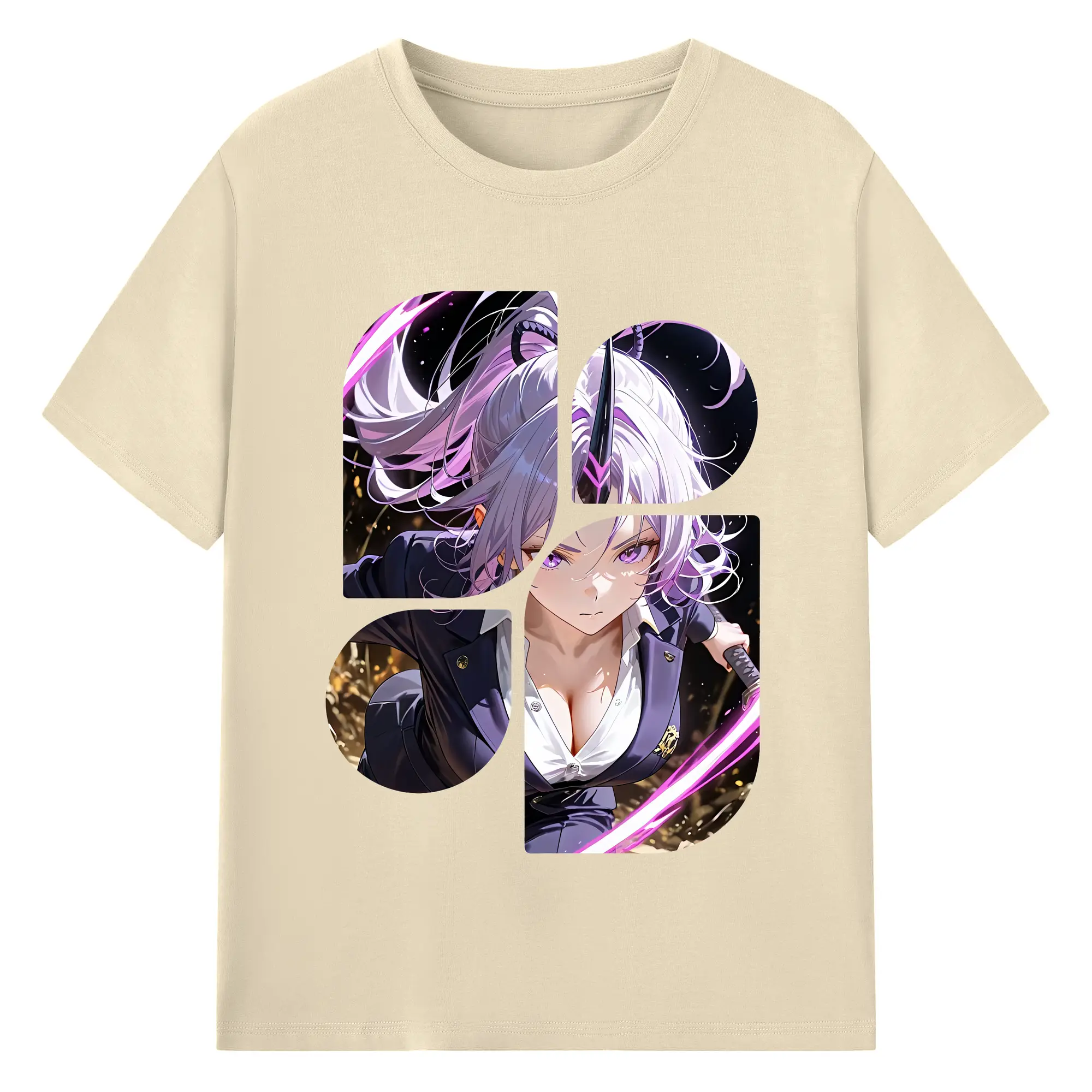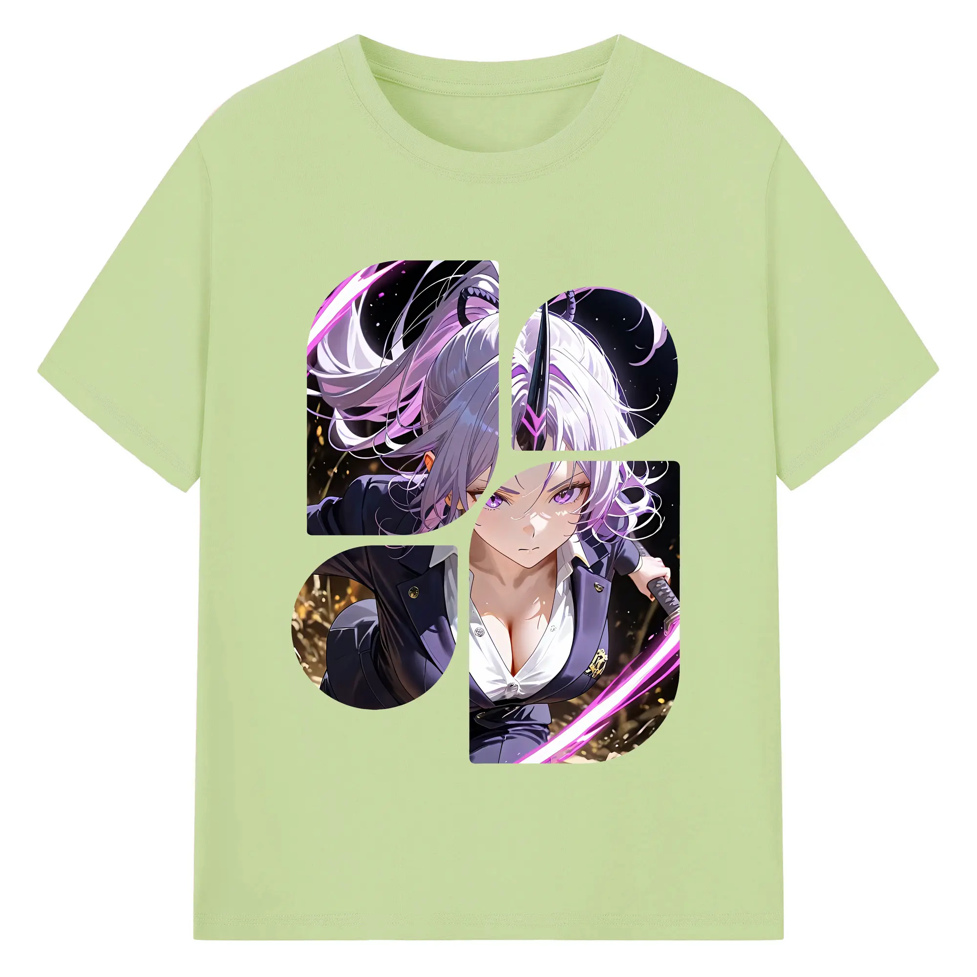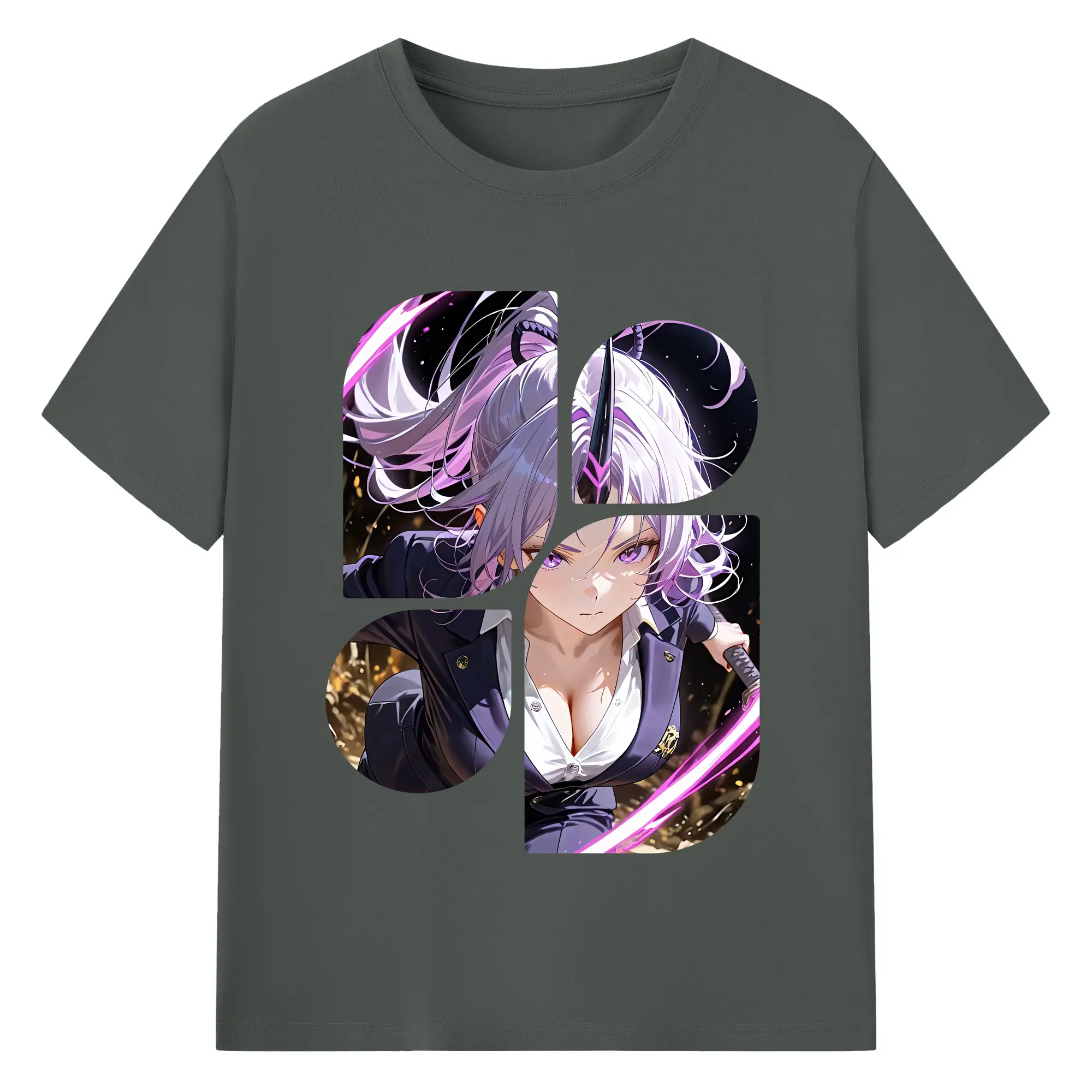 転生したらスライムだった件 グッズ,シオン - 綿100% ヴィンテージ風 半袖Tシャツ ・ フロントプリント ・ 柔らか肌触り ・ 通気性 快適 ・ スポーツ カジュアル 外出用
