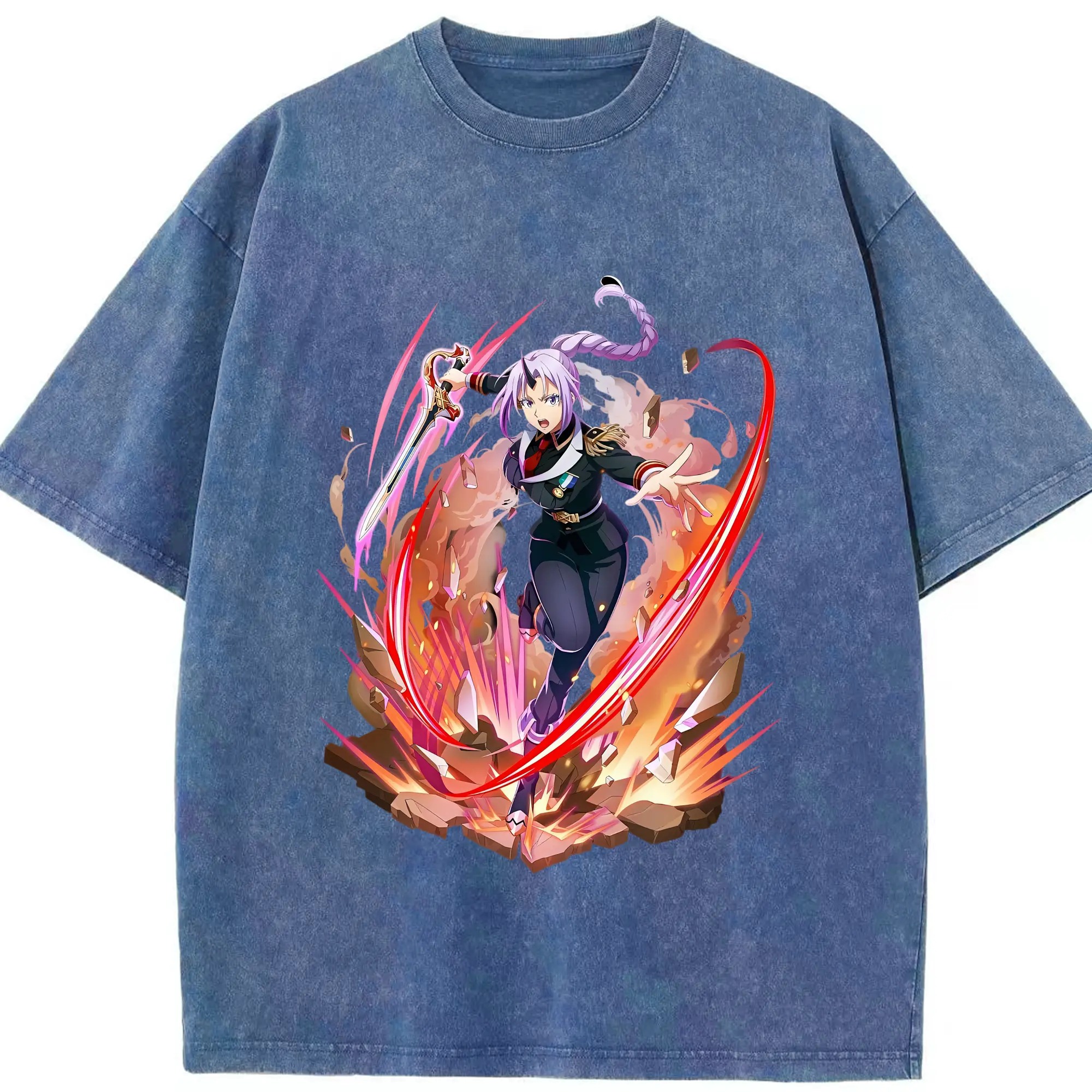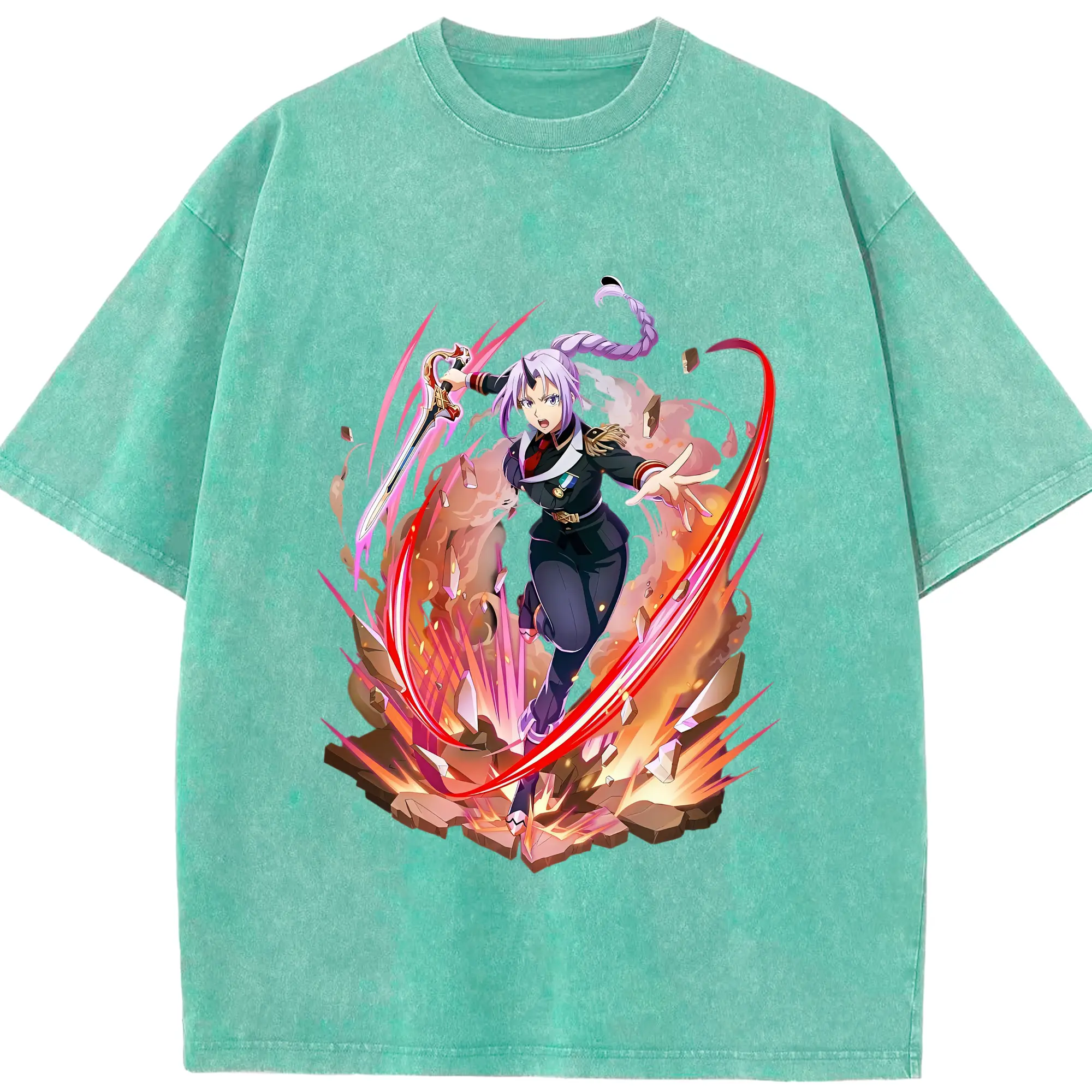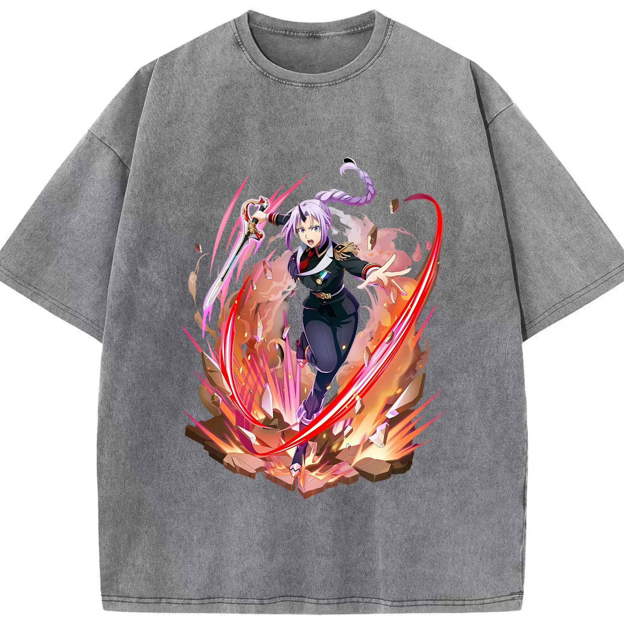 転生したらスライムだった件 グッズ,シオン - 綿100% ヴィンテージ風 半袖Tシャツ ・ 背面プリント ・ 柔らか肌触り ・ 通気性 快適 ・ スポーツ カジュアル 外出用