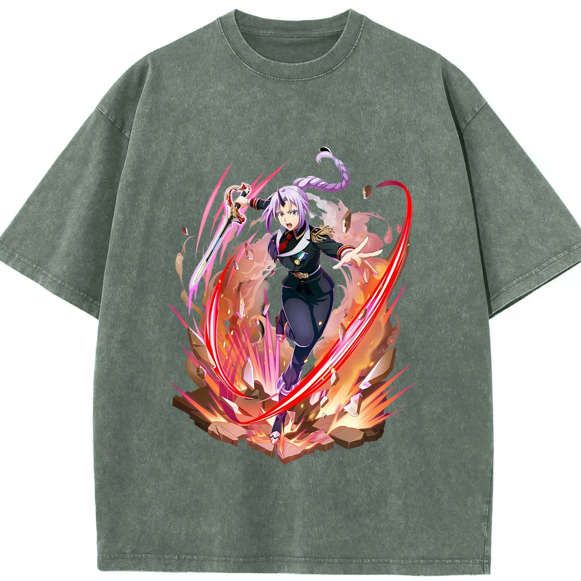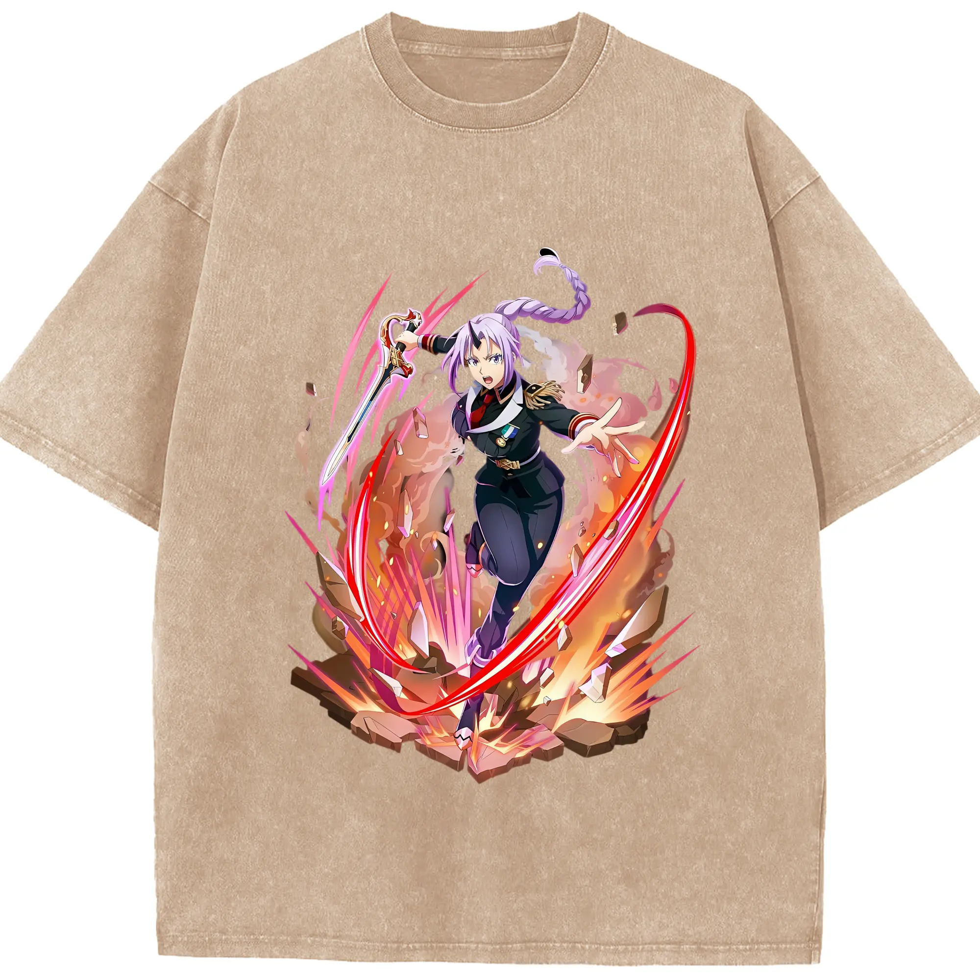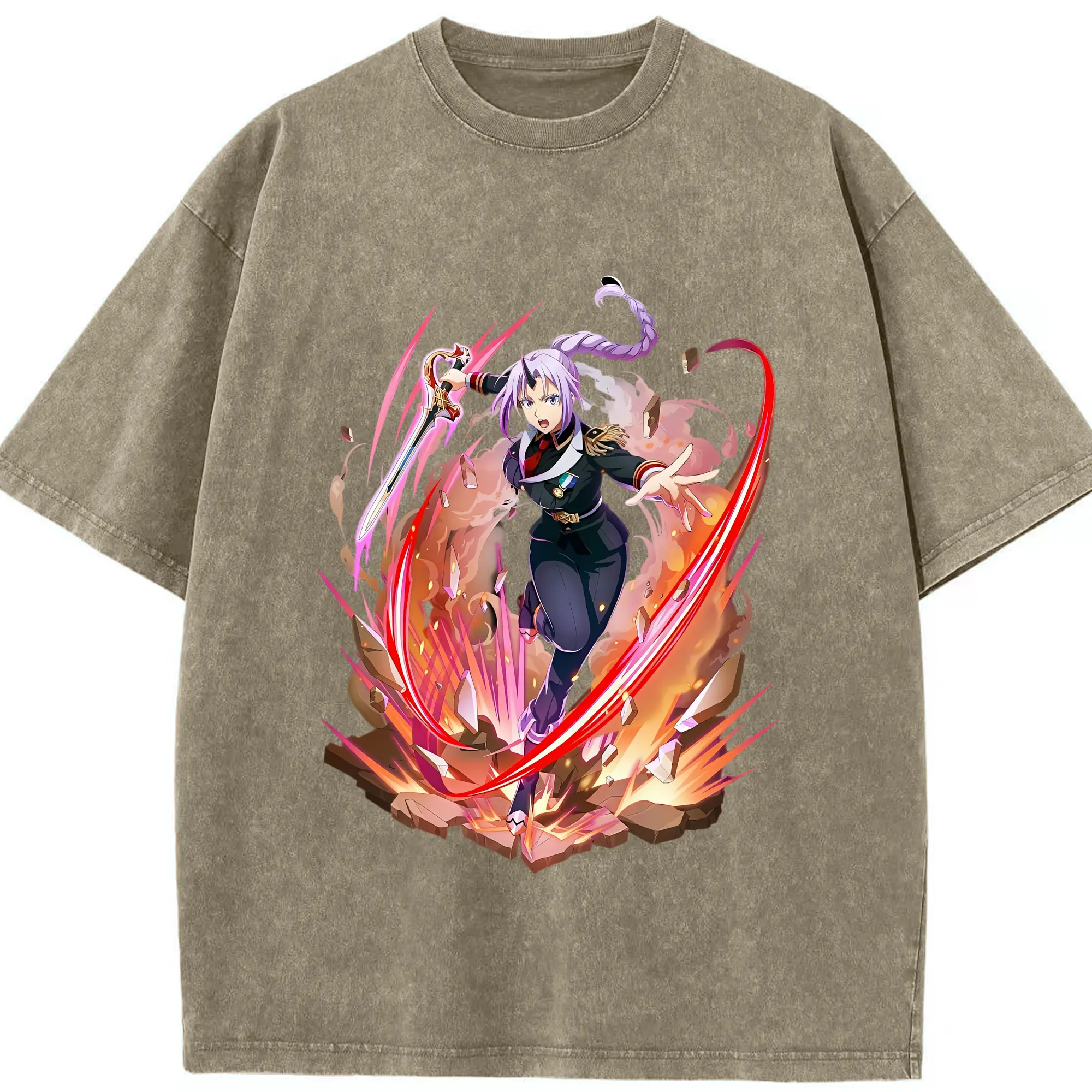 転生したらスライムだった件 グッズ,シオン - 綿100% ヴィンテージ風 半袖Tシャツ ・ 背面プリント ・ 柔らか肌触り ・ 通気性 快適 ・ スポーツ カジュアル 外出用