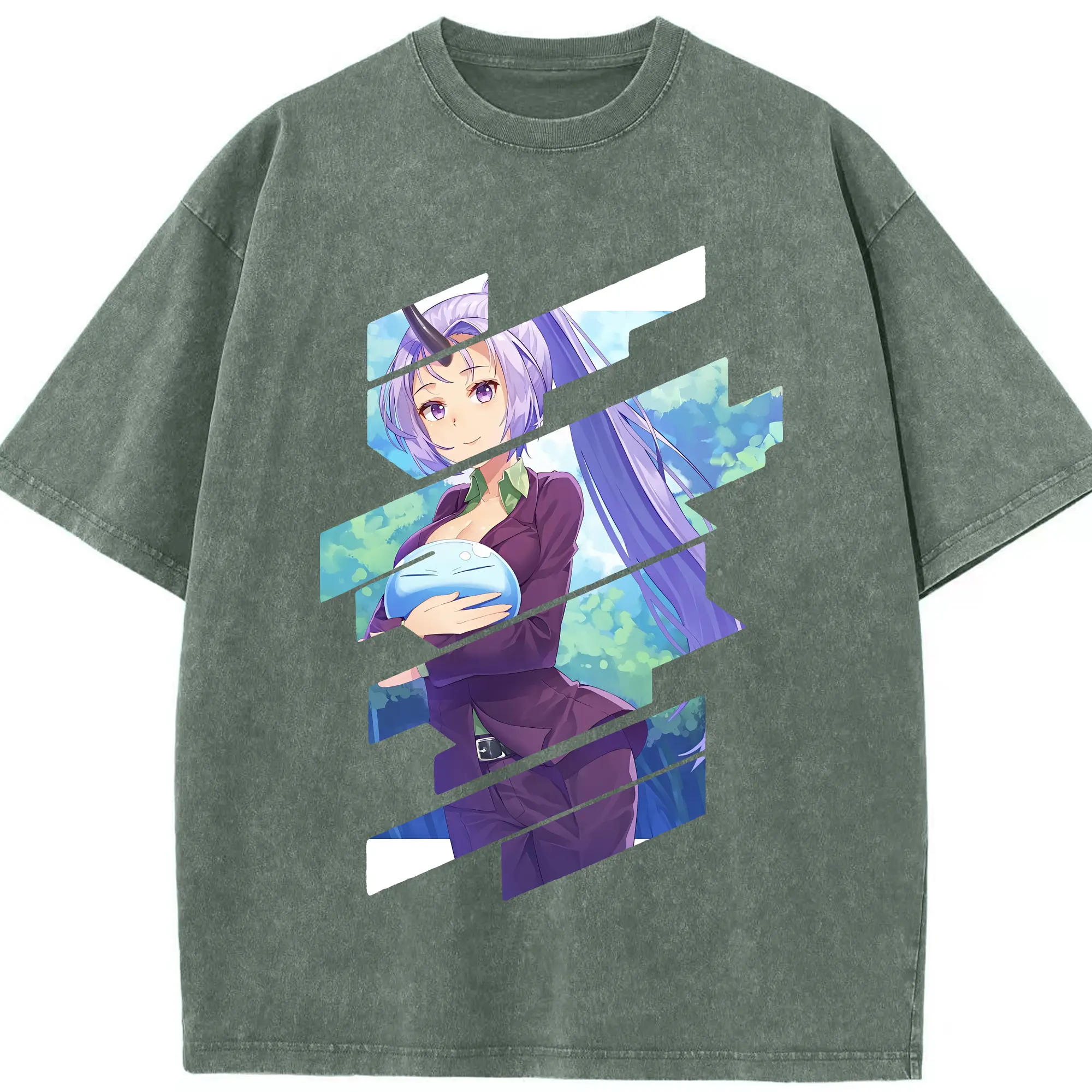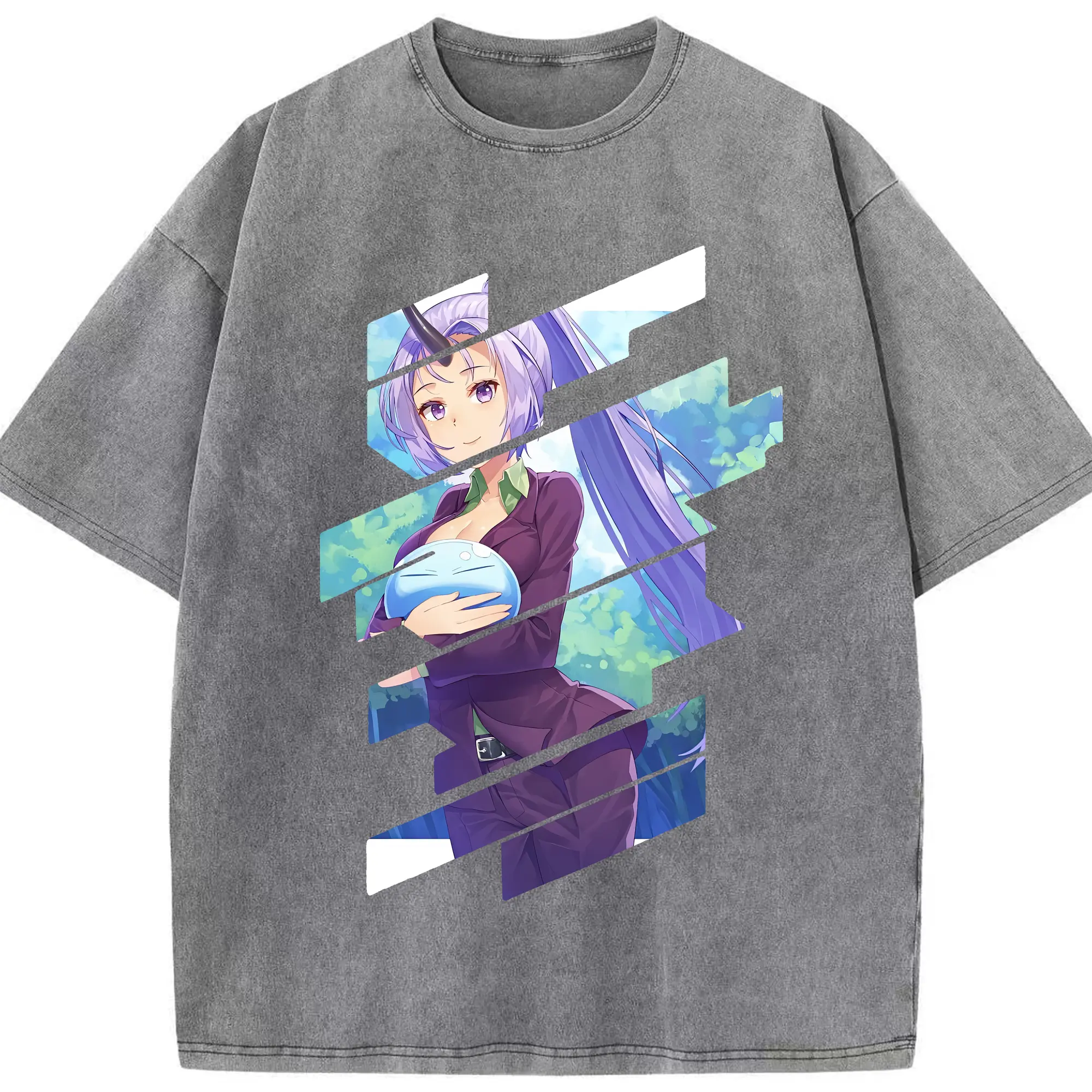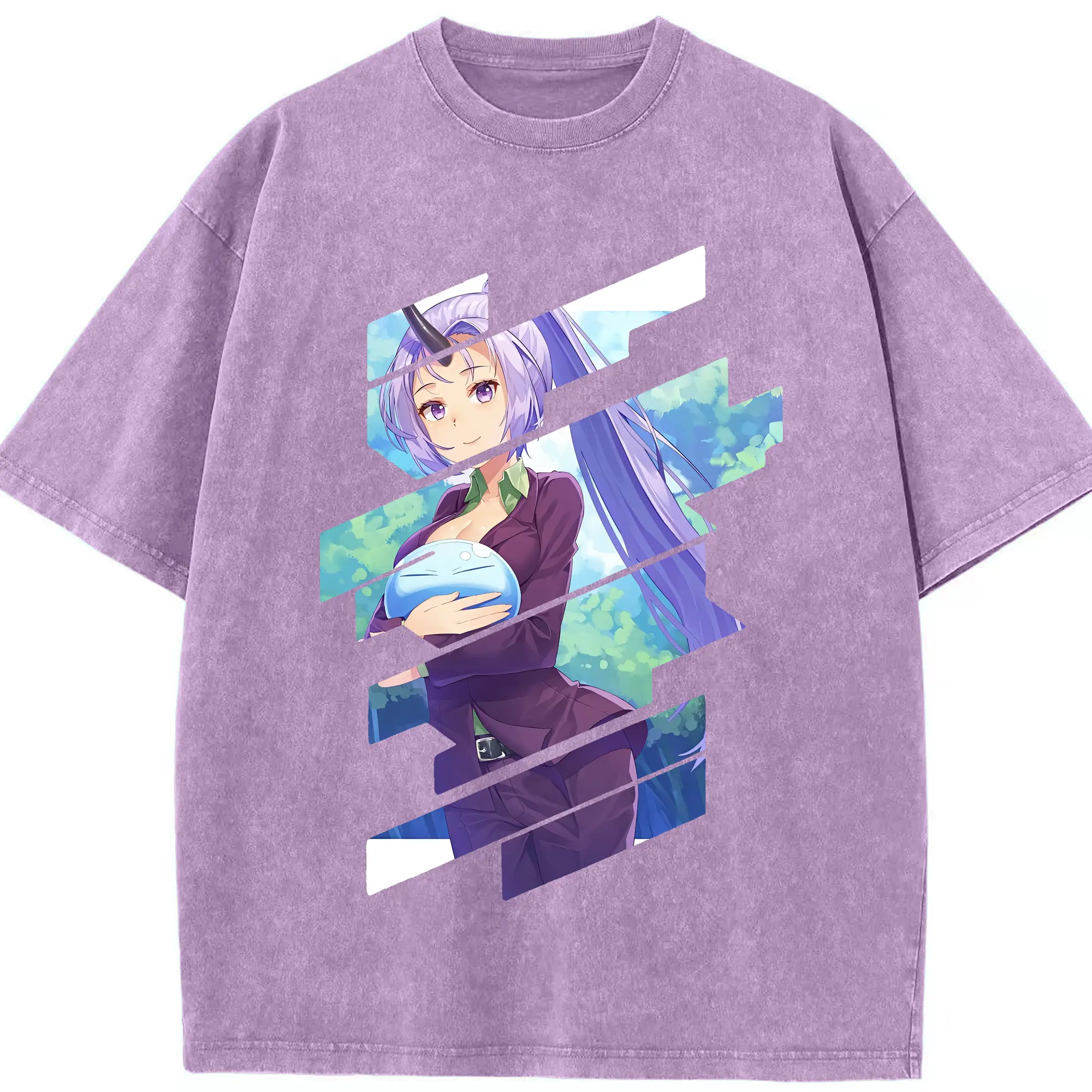 転生したらスライムだった件 グッズ,シオン - 綿100% ヴィンテージ風 半袖Tシャツ ・ 背面プリント ・ 柔らか肌触り ・ 通気性 快適 ・ スポーツ カジュアル 外出用
