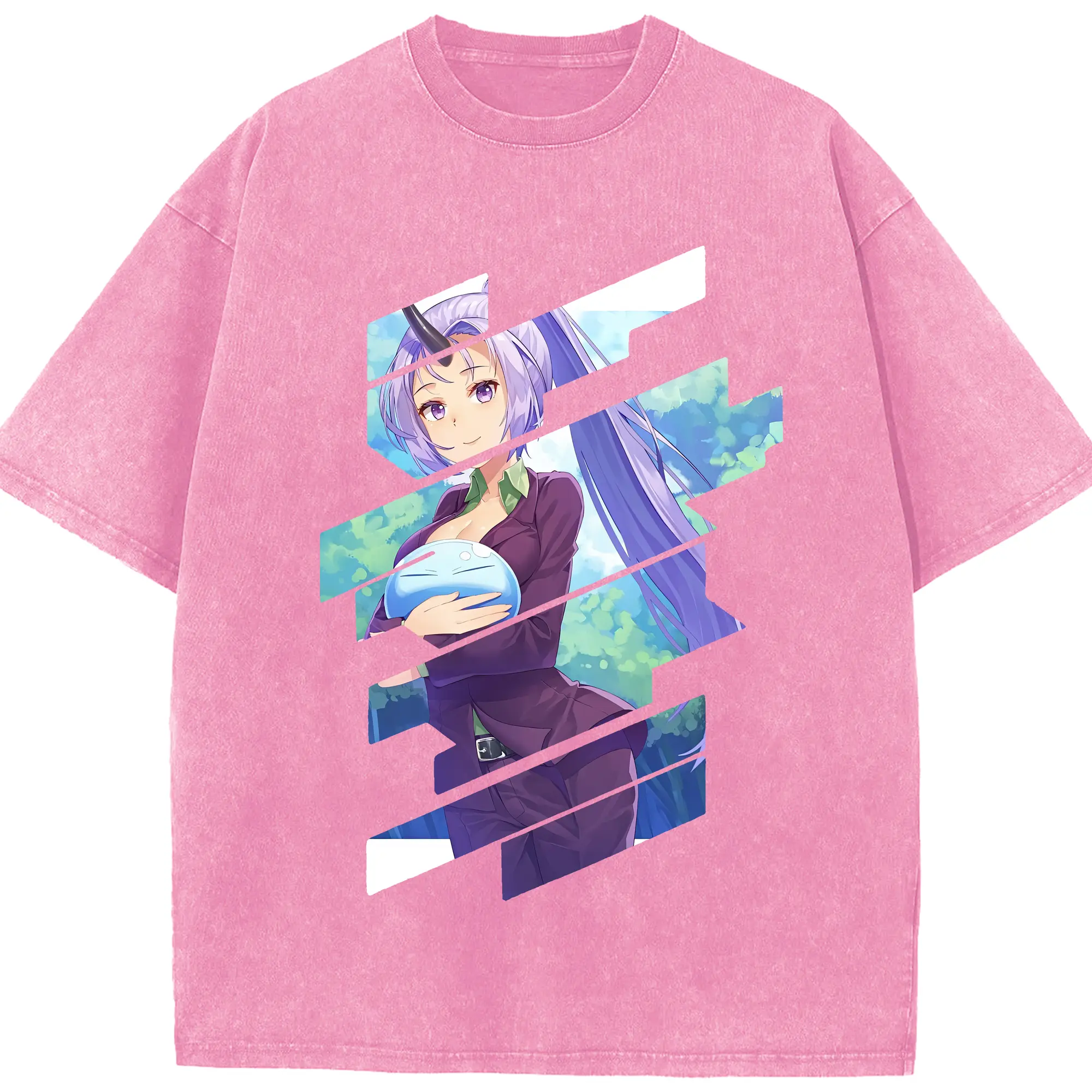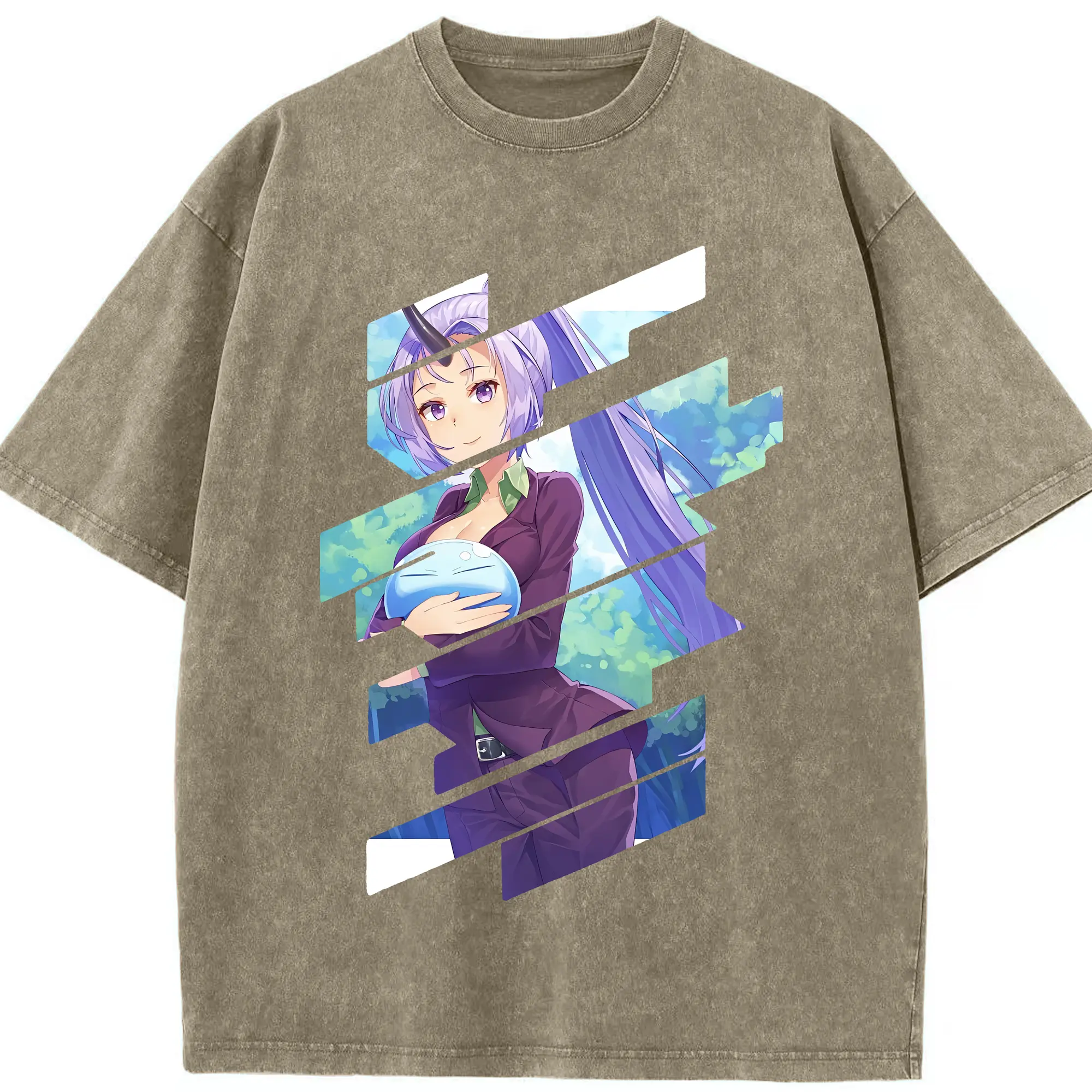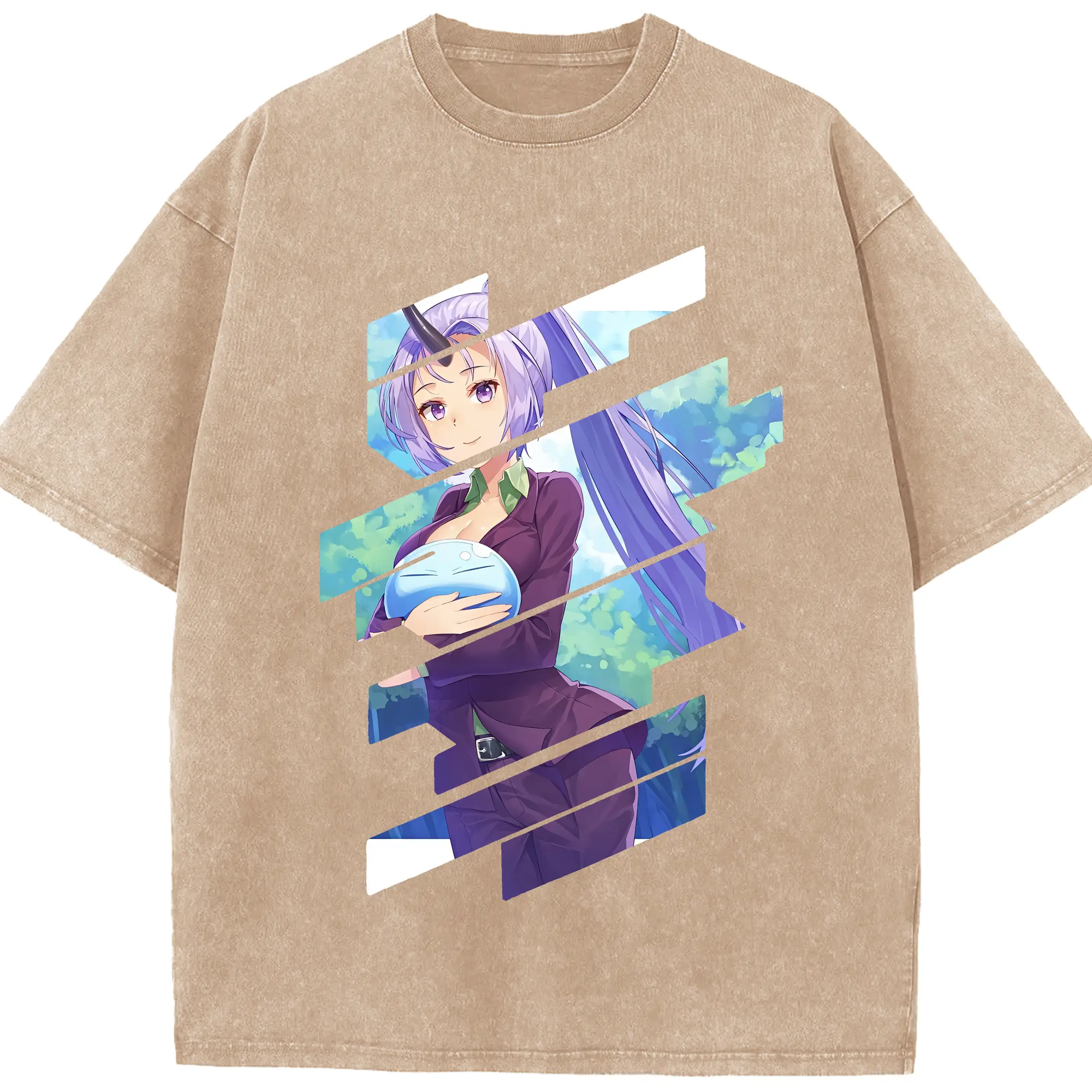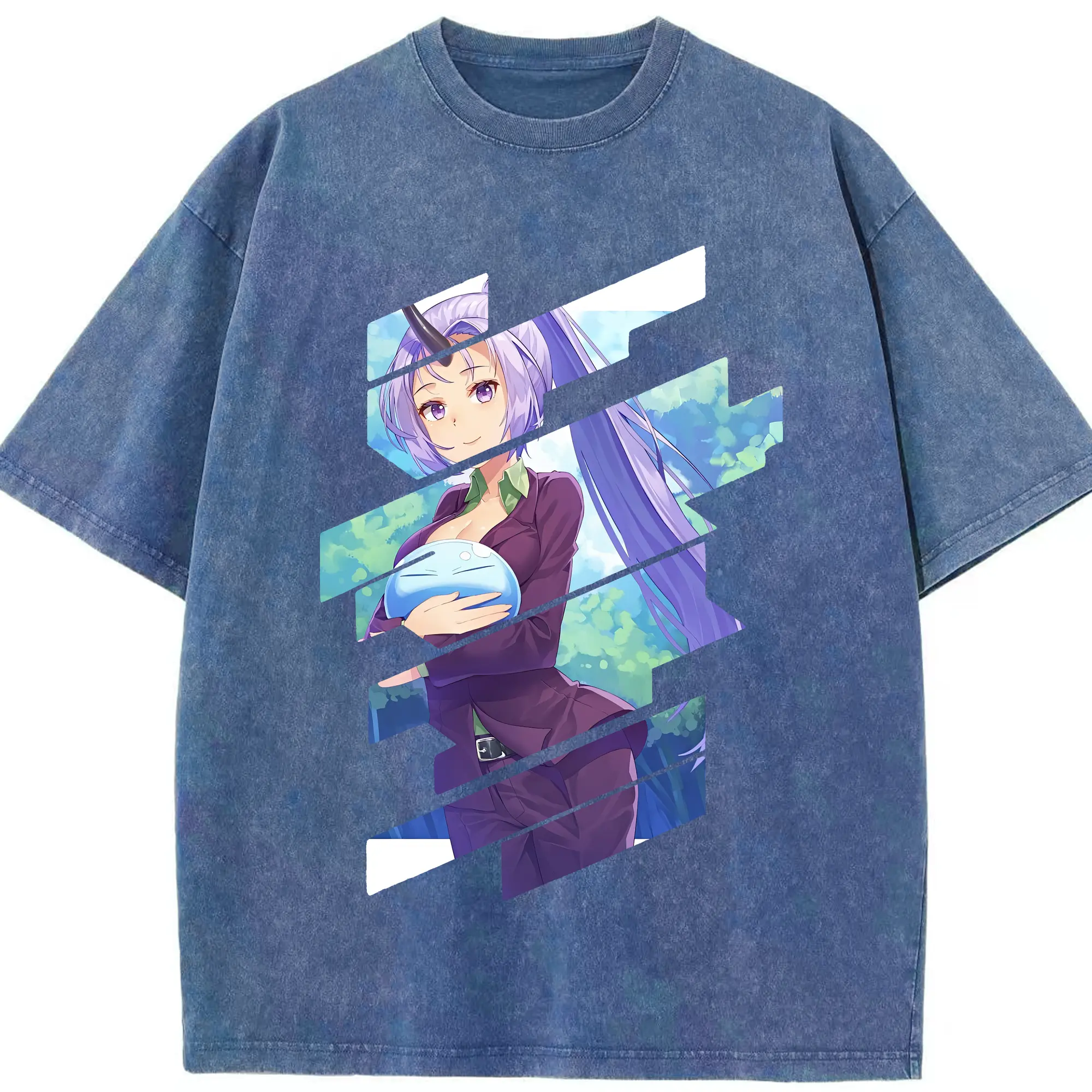 転生したらスライムだった件 グッズ,シオン - 綿100% ヴィンテージ風 半袖Tシャツ ・ 背面プリント ・ 柔らか肌触り ・ 通気性 快適 ・ スポーツ カジュアル 外出用
