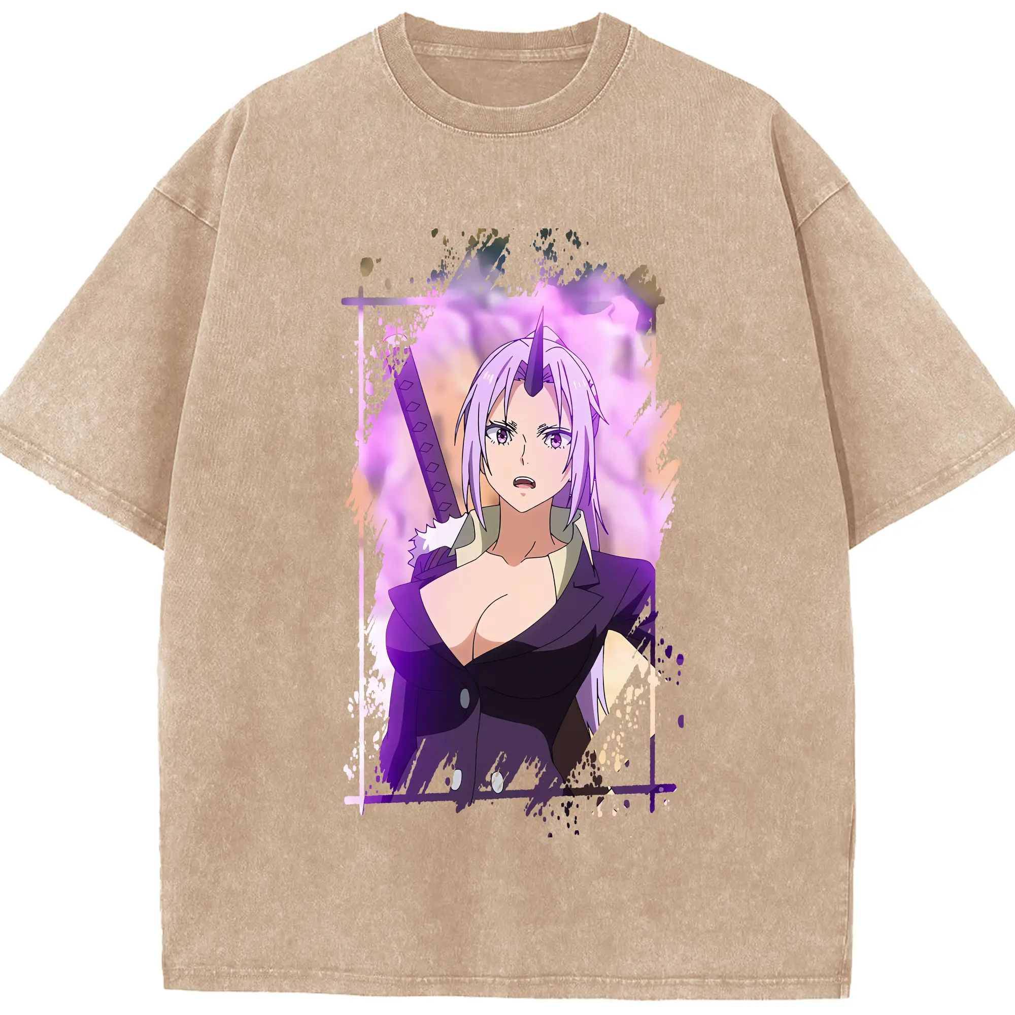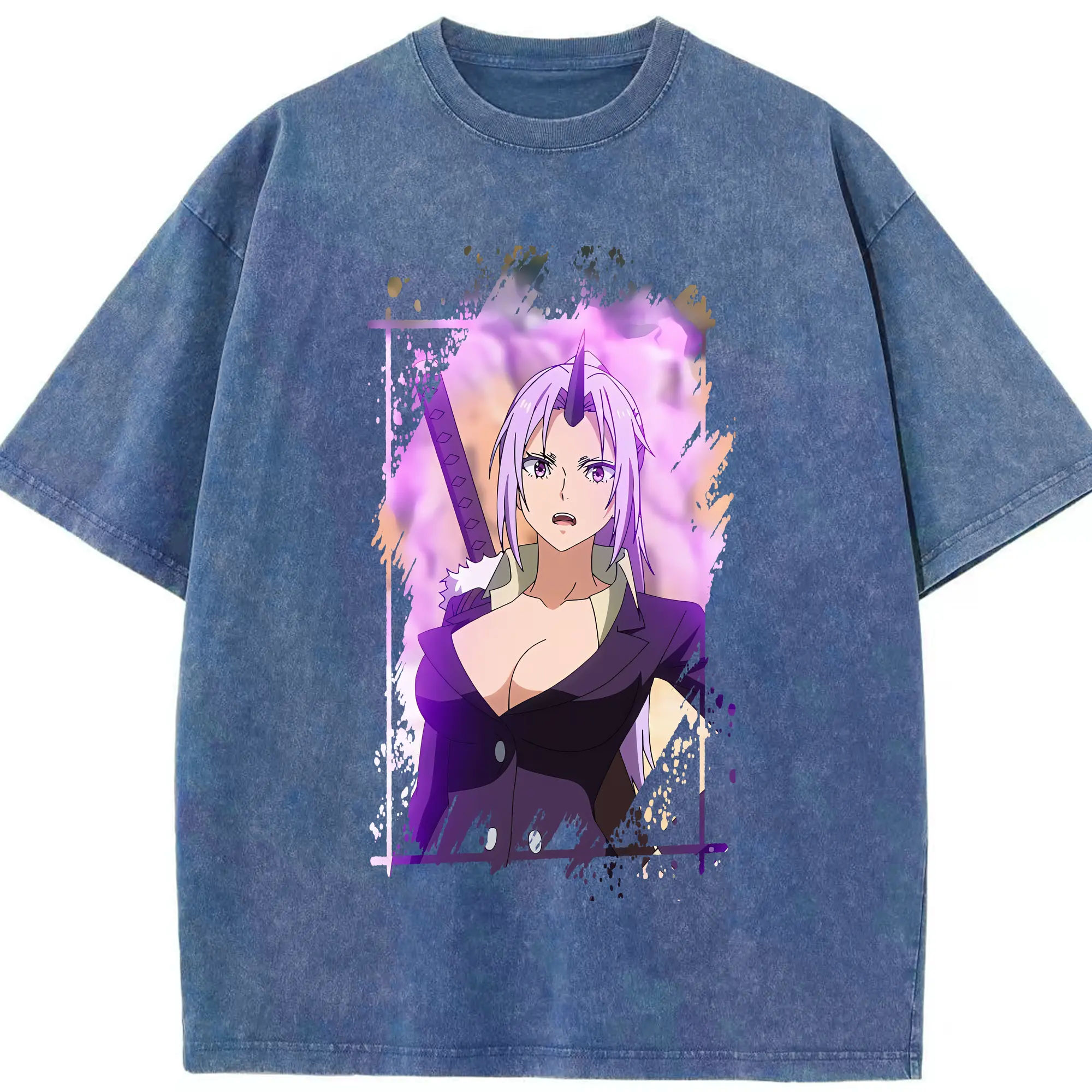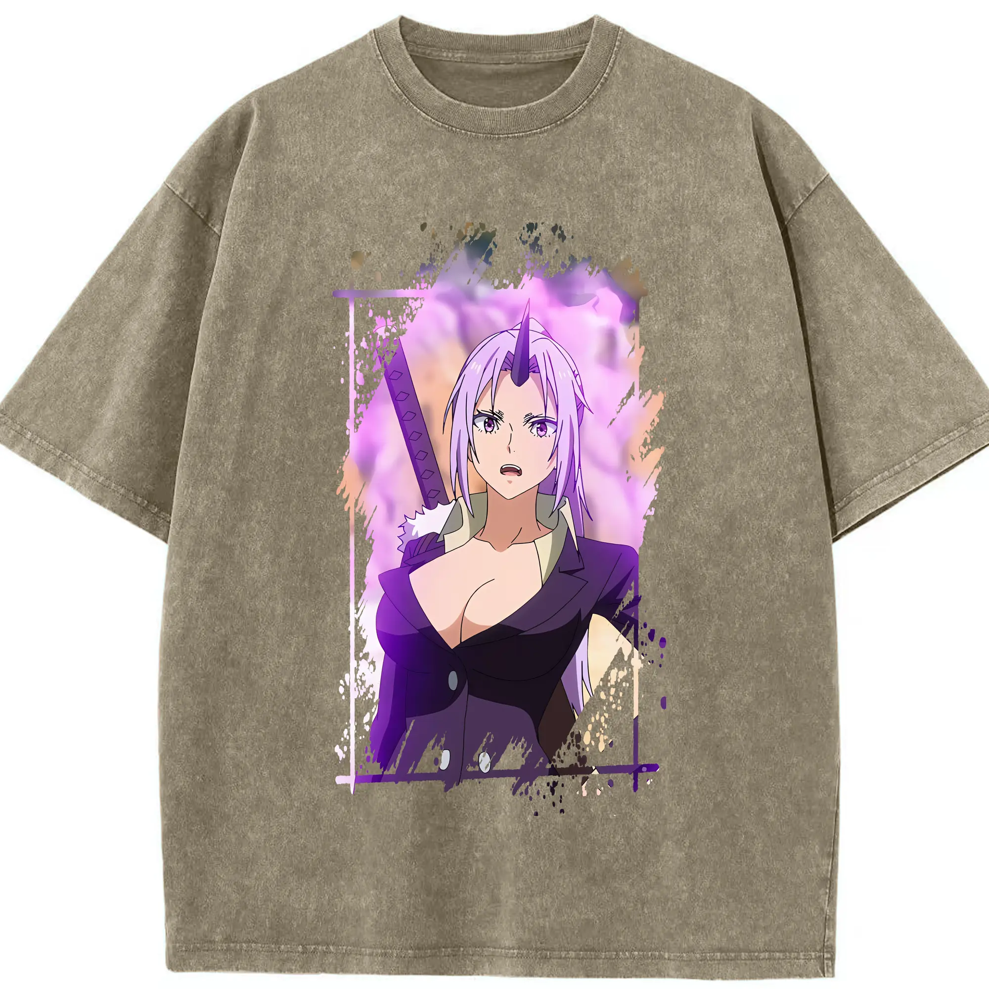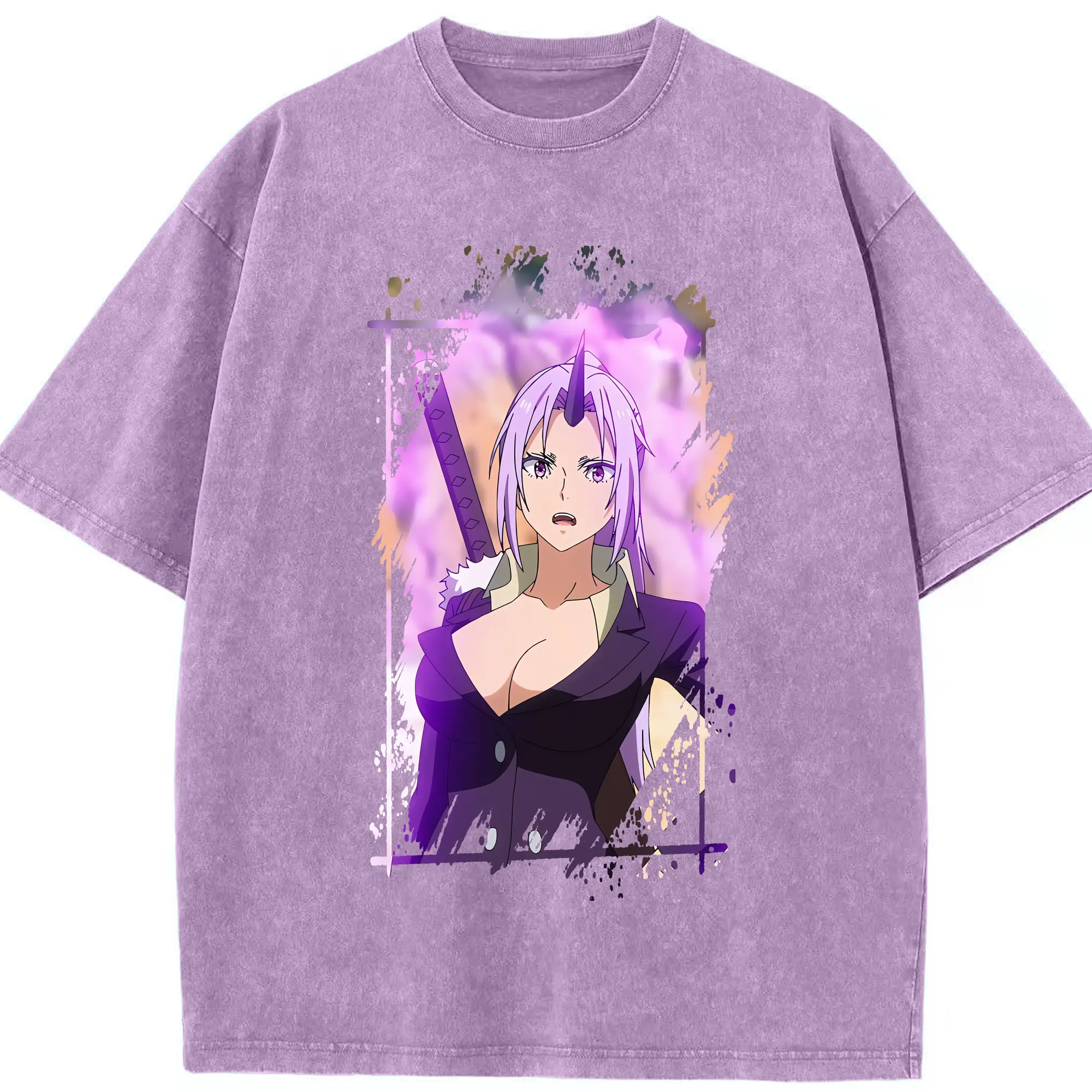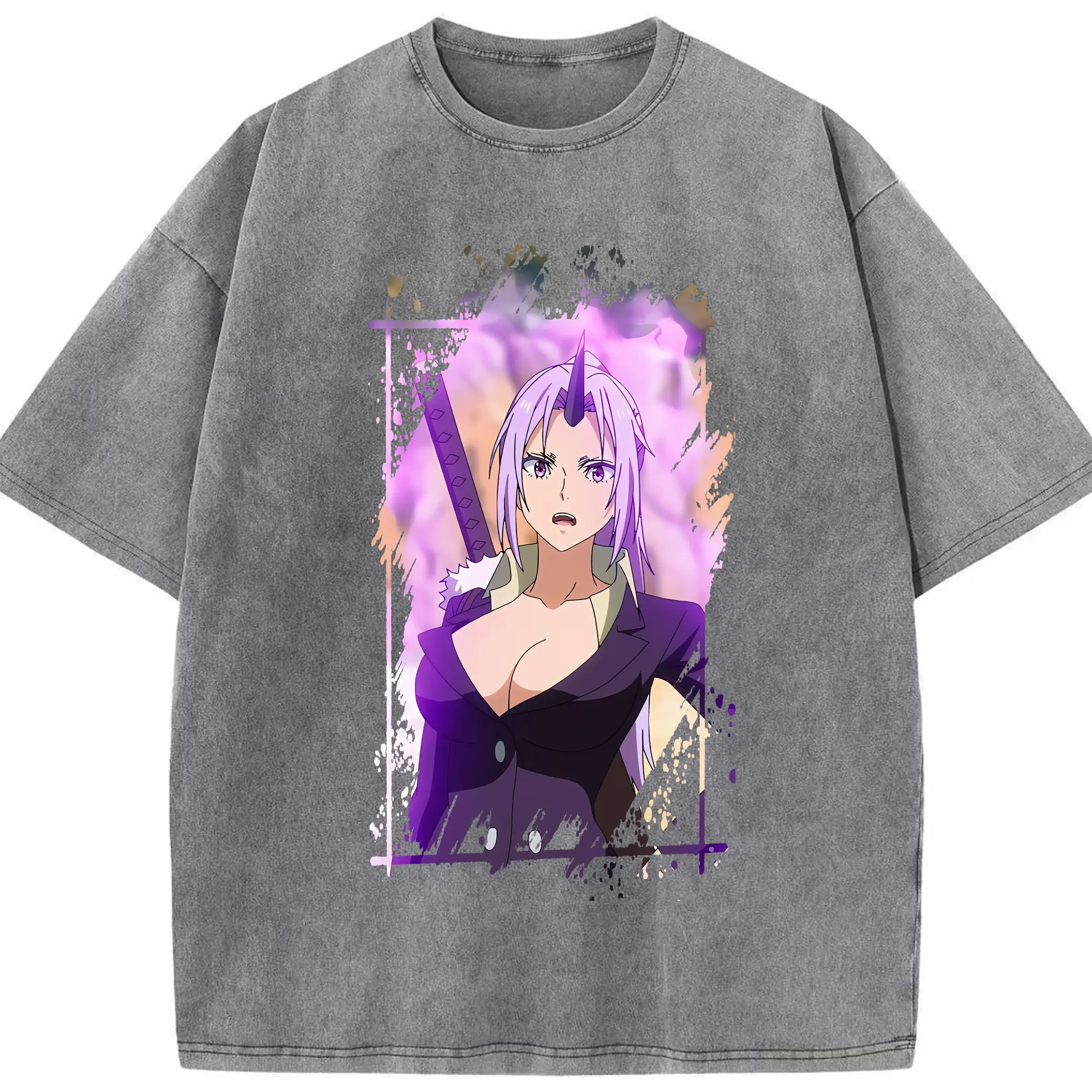 転生したらスライムだった件 グッズ,シオン - 綿100% ヴィンテージ風 半袖Tシャツ ・ 背面プリント ・ 柔らか肌触り ・ 通気性 快適 ・ スポーツ カジュアル 外出用