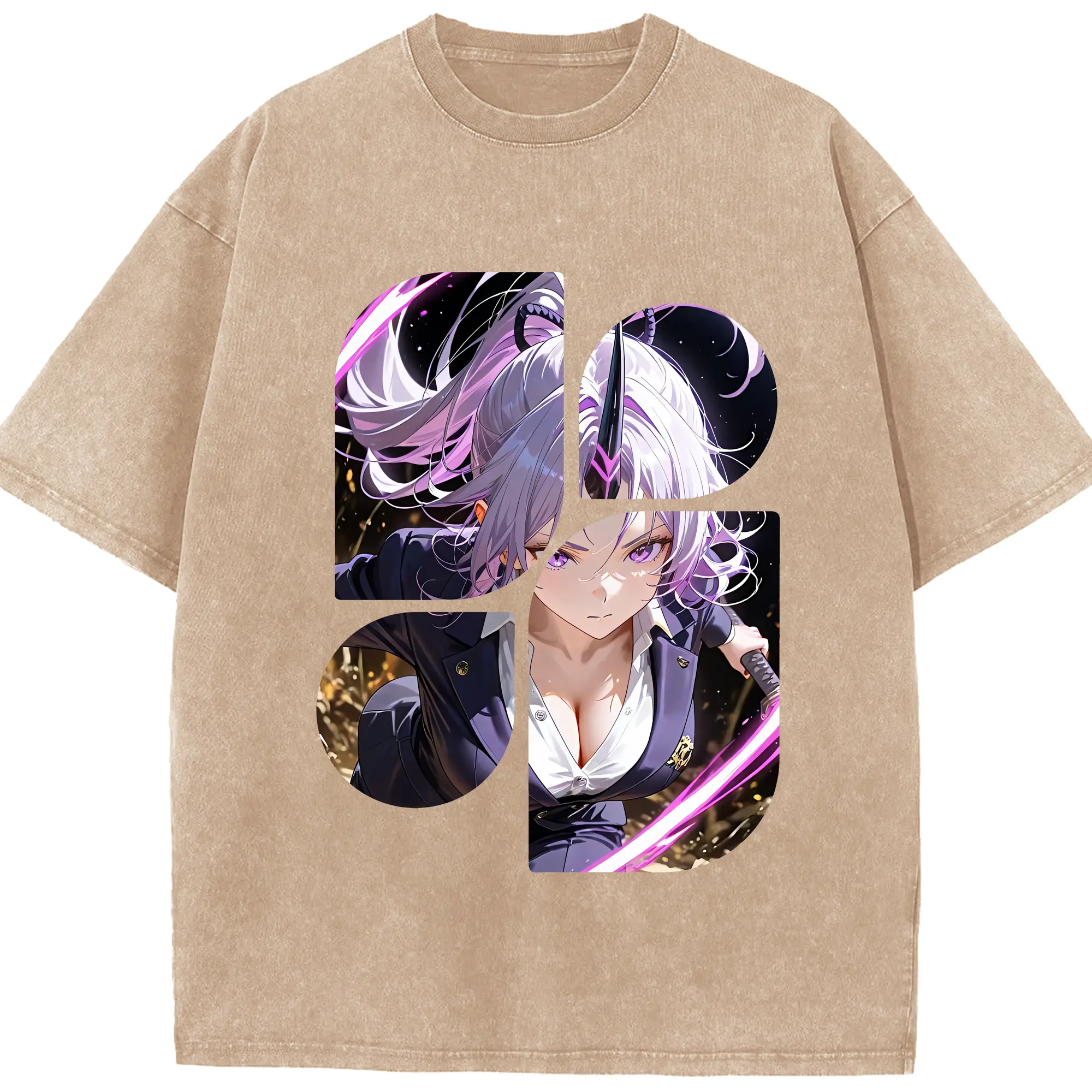 鳴潮 グッズ カンタレラ - 綿100% ヴィンテージ風 半袖Tシャツ ・ フロントプリント ・ 柔らか肌触り ・ 通気性 快適 ・ スポーツ カジュアル 外出用