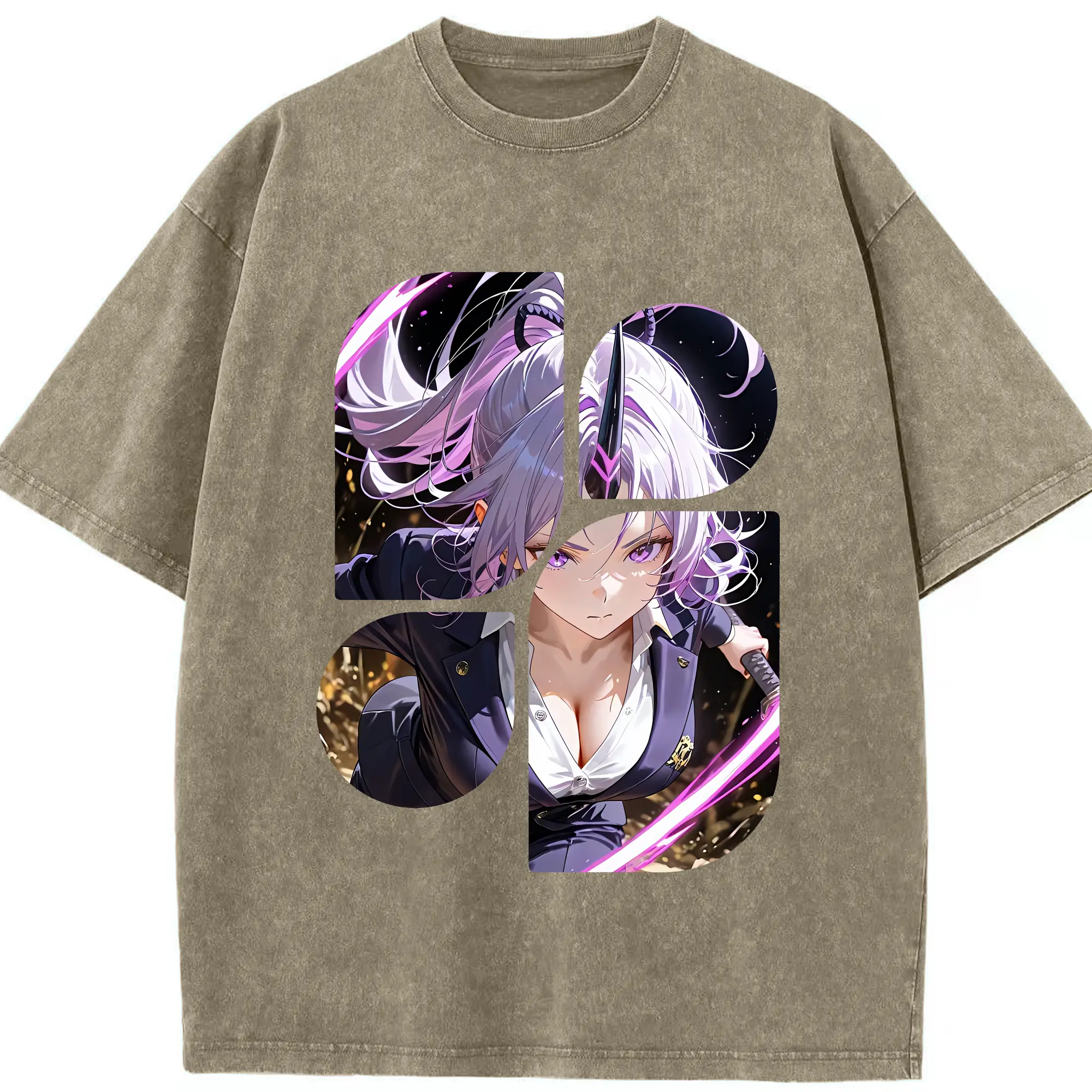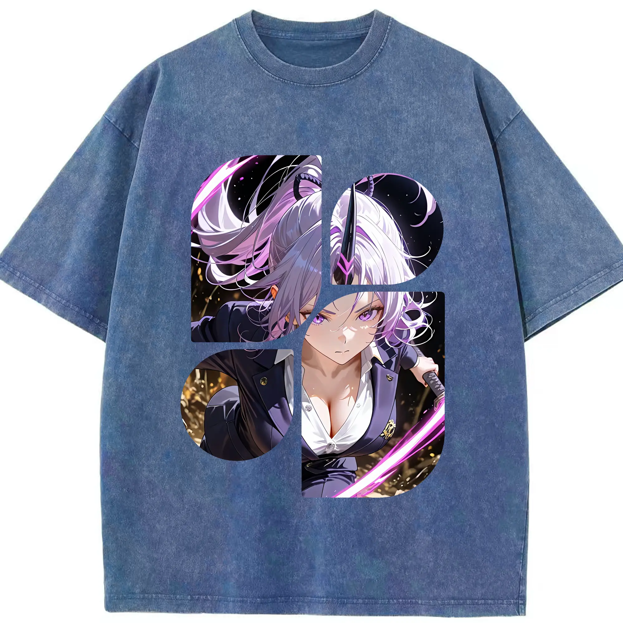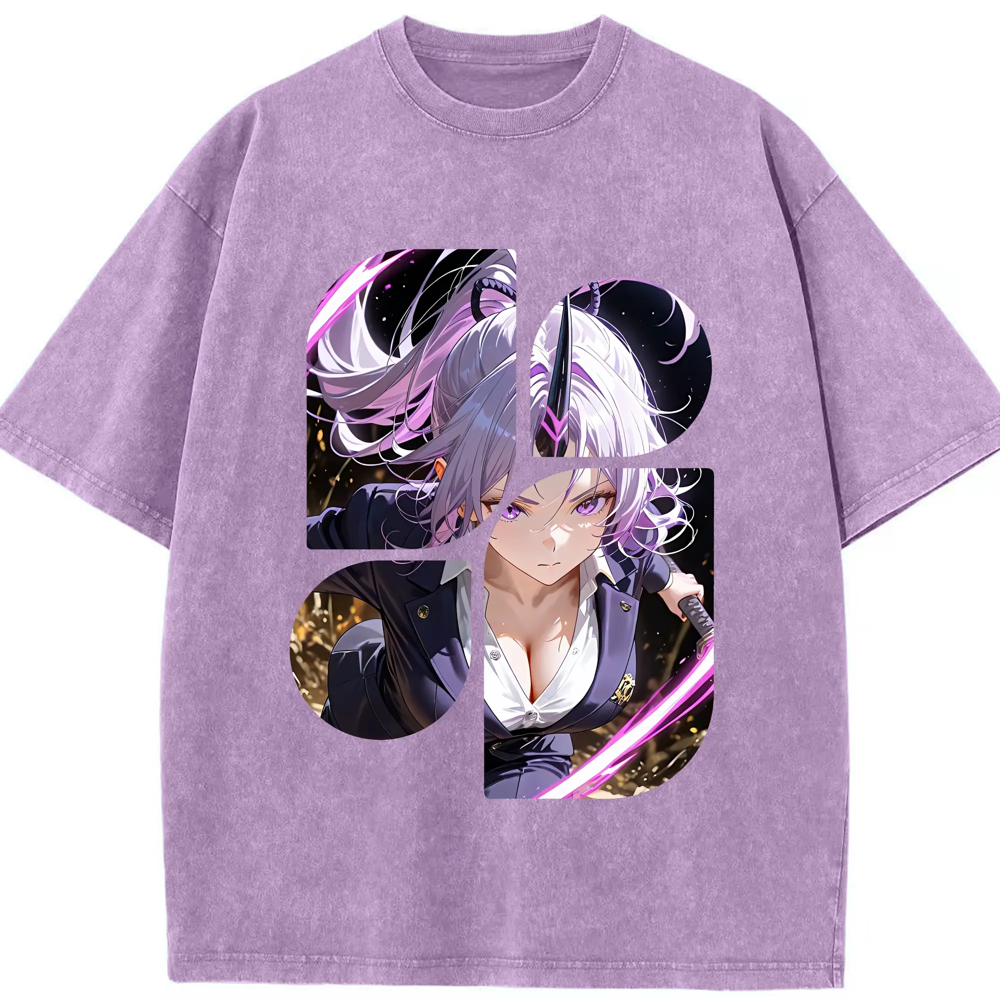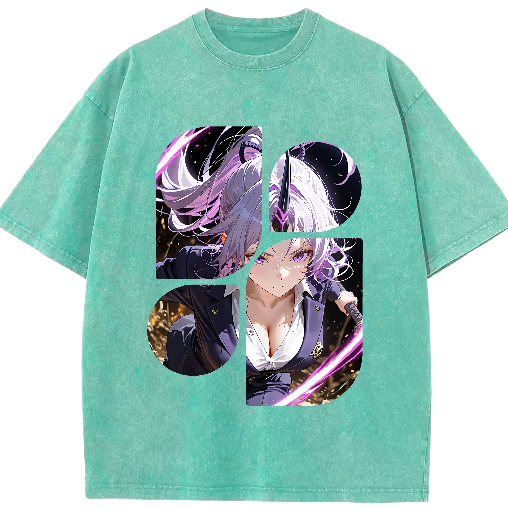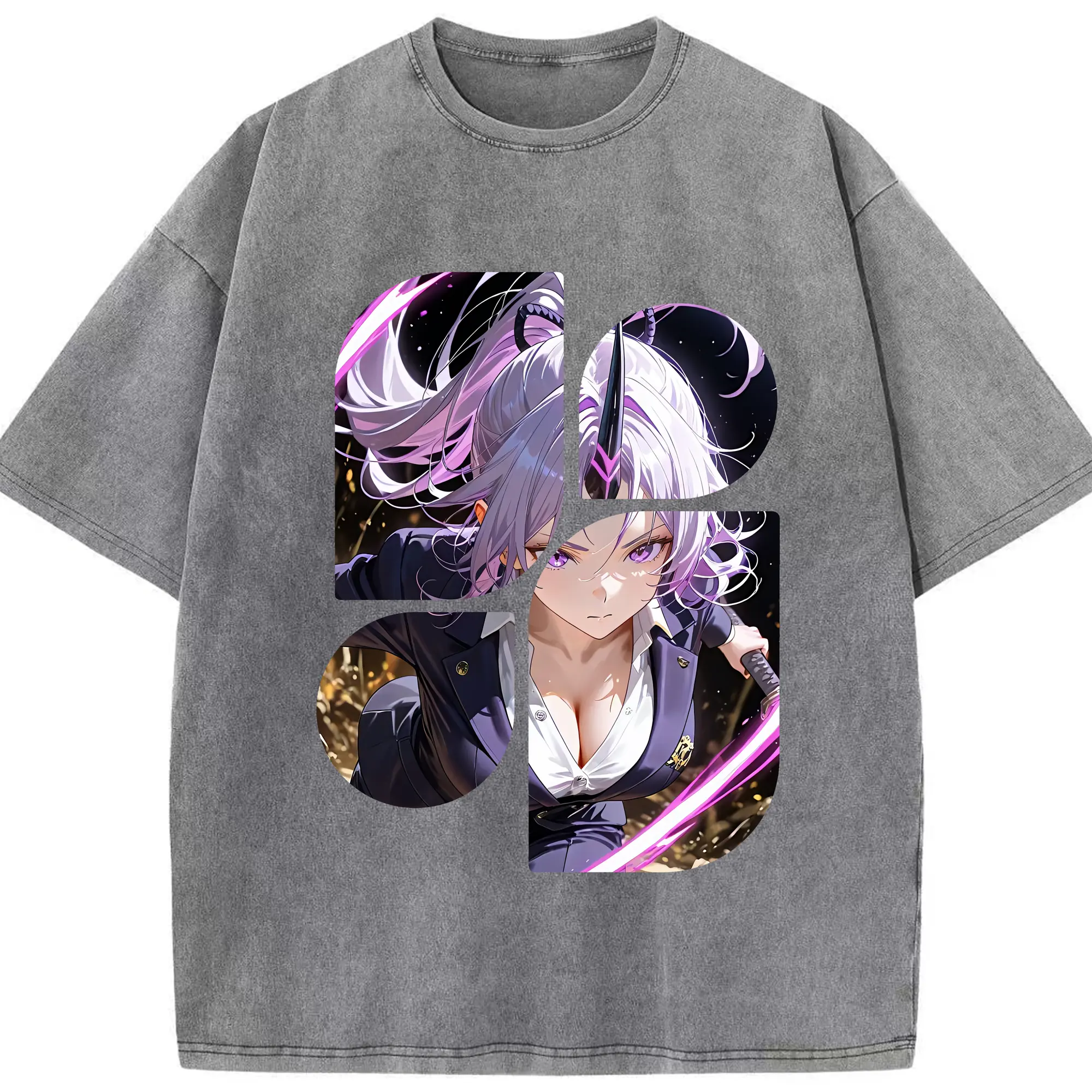 転生したらスライムだった件 グッズ,シオン - 綿100% ヴィンテージ風 半袖Tシャツ ・ 背面プリント ・ 柔らか肌触り ・ 通気性 快適 ・ スポーツ カジュアル 外出用
